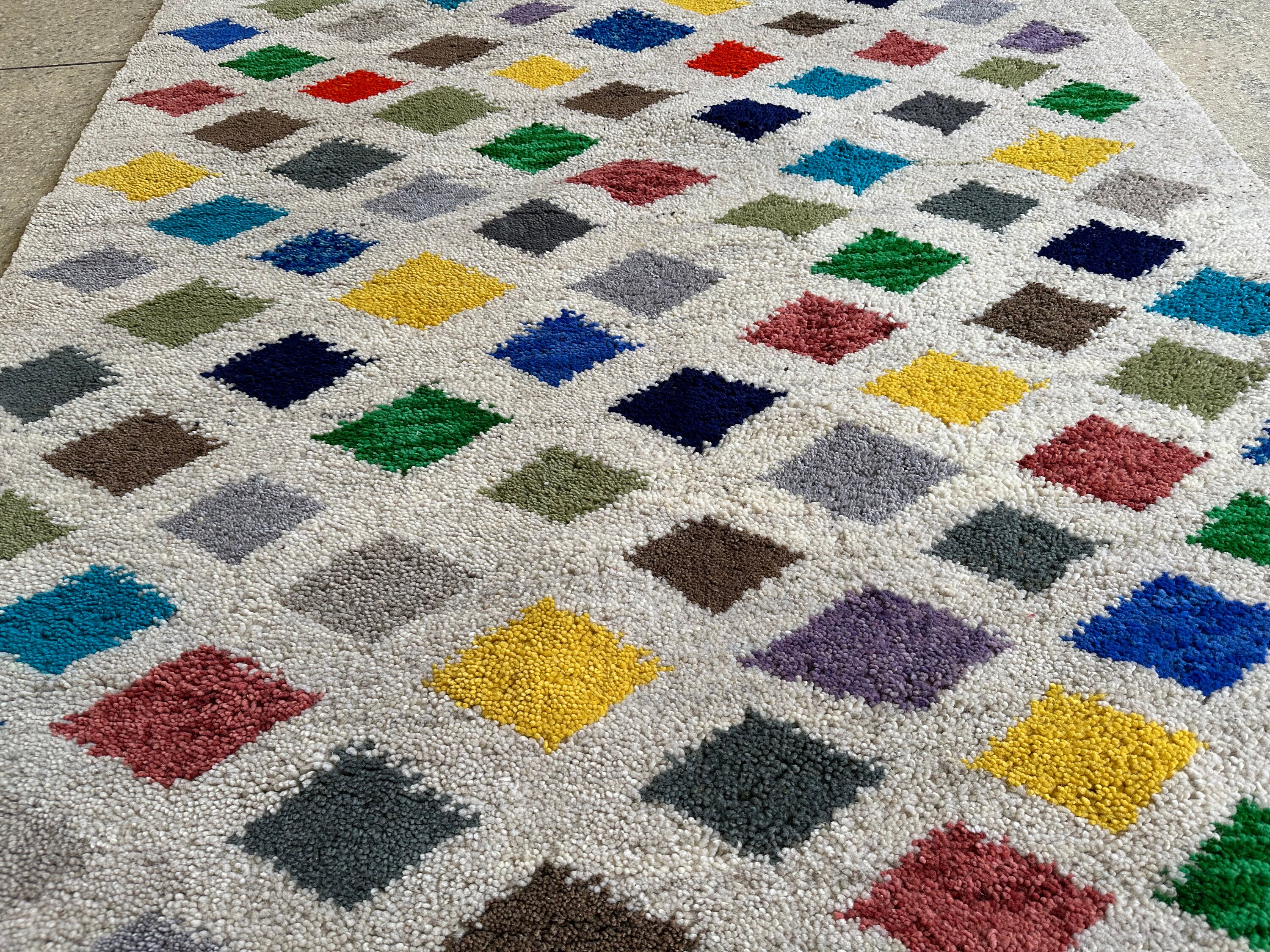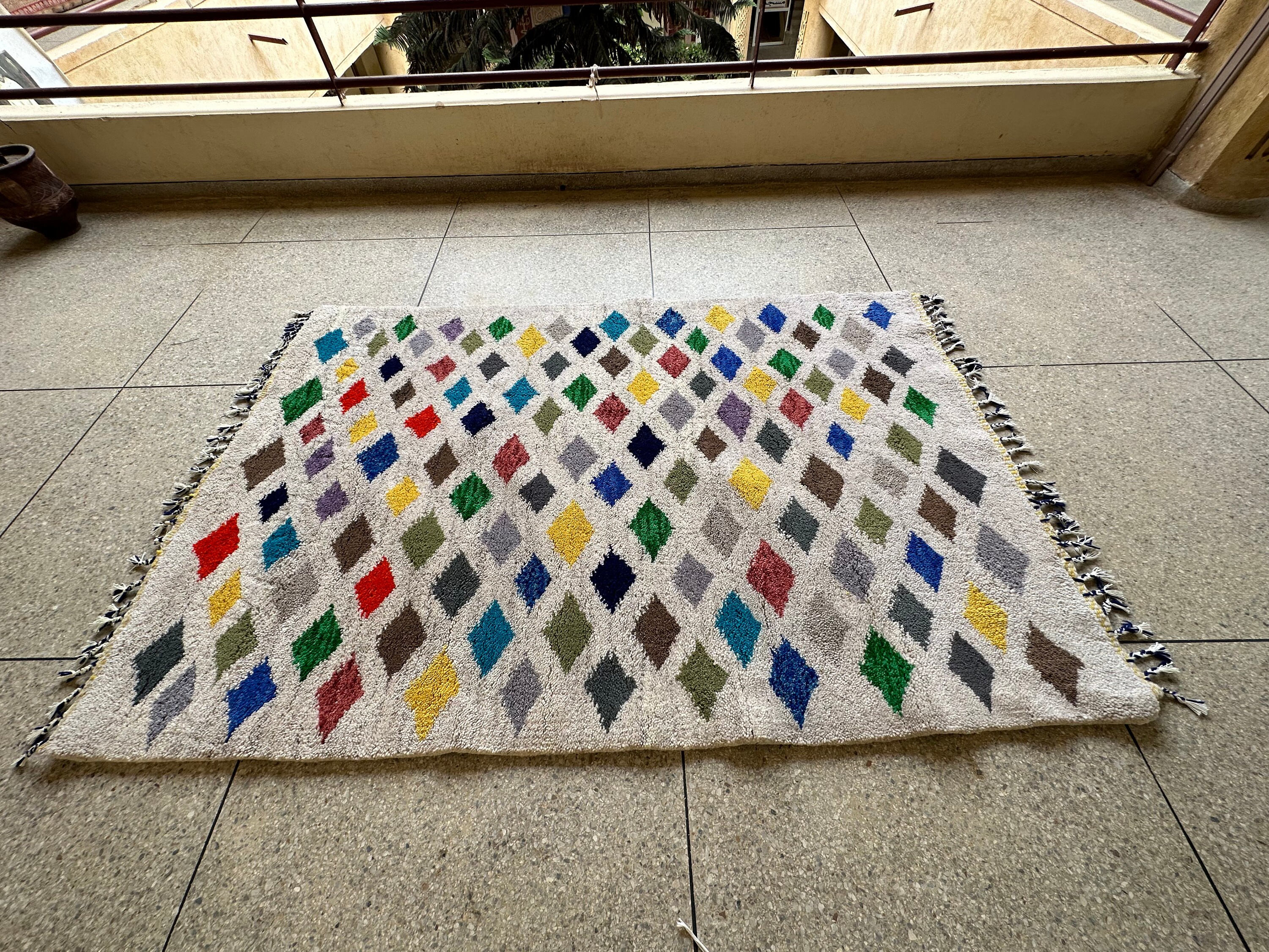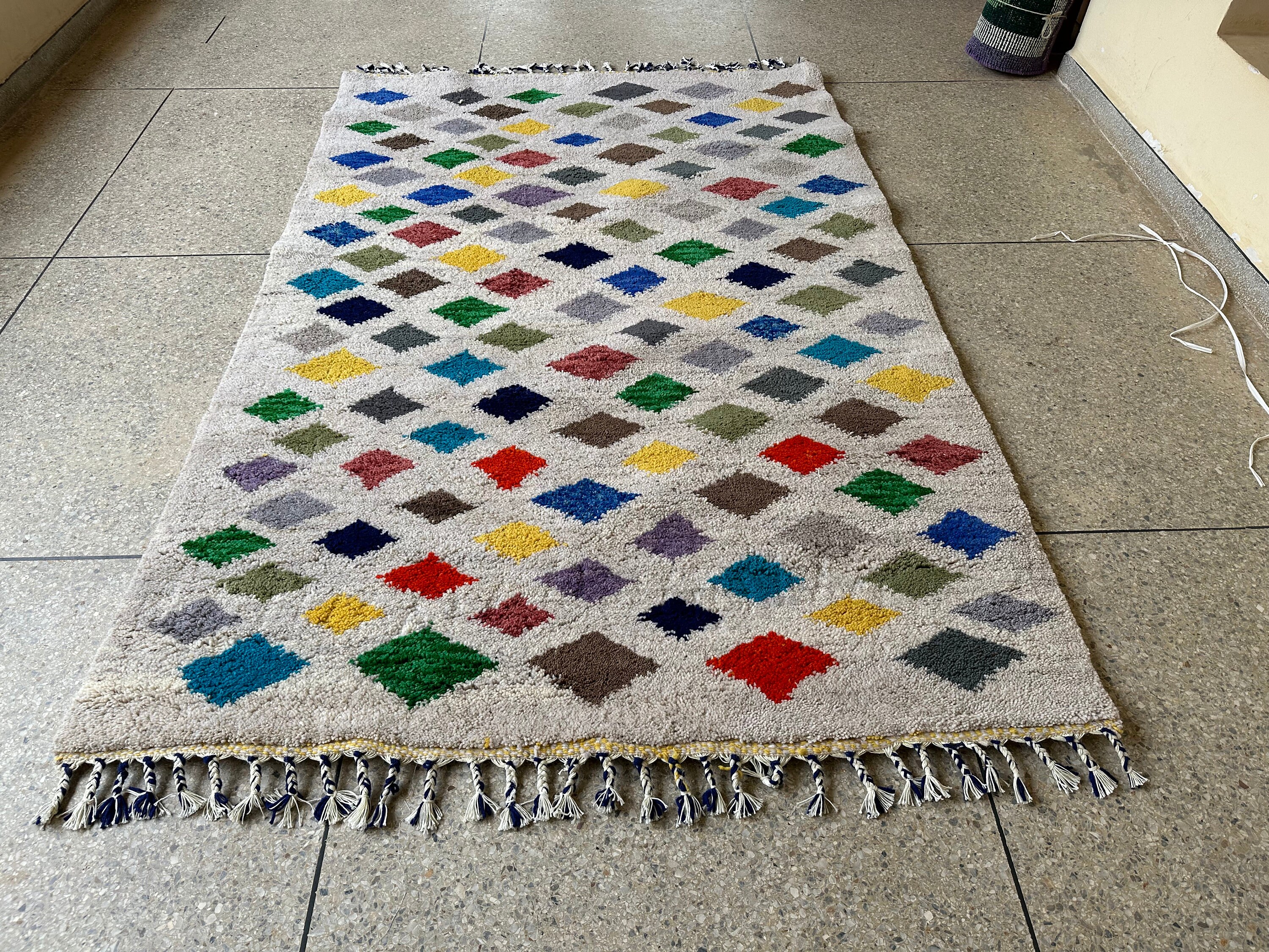 Transform your space with our stunning Geometric Moroccan Rug, featuring a chic gray and multicolor checkered design. This Custom Handmade Wool Rug is meticulously crafted for a soft, luxurious feel underfoot. Ideal for any Boho home decor, our Berber Handwoven Rug adds a touch of culture and sophistication to your living area. Perfect for layering or as a standout piece, it’s both functional and stylish. Elevate your home with this unique statement piece that reflects artisan craftsmanship.