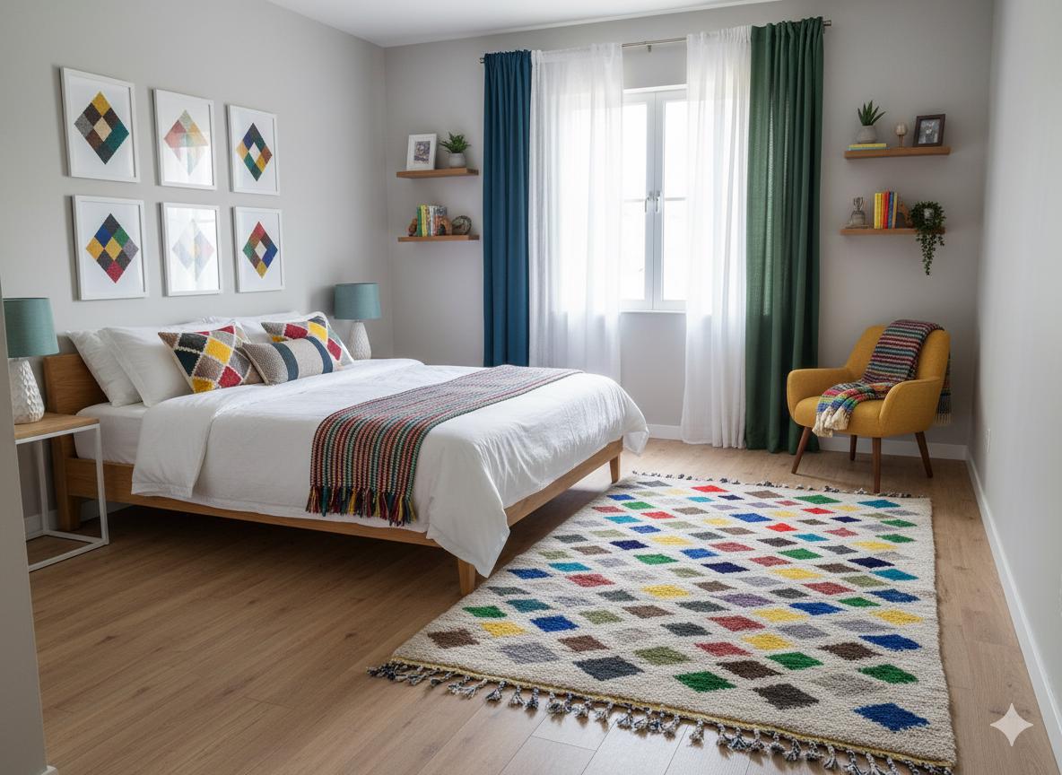 Versatile & Timeless Design: With their minimalist, geometric diamond patterns and natural colors, Beni Ourain rugs blend seamlessly with Traditional, Bohemian, Minimalist, Modern, and Scandinavian styles.