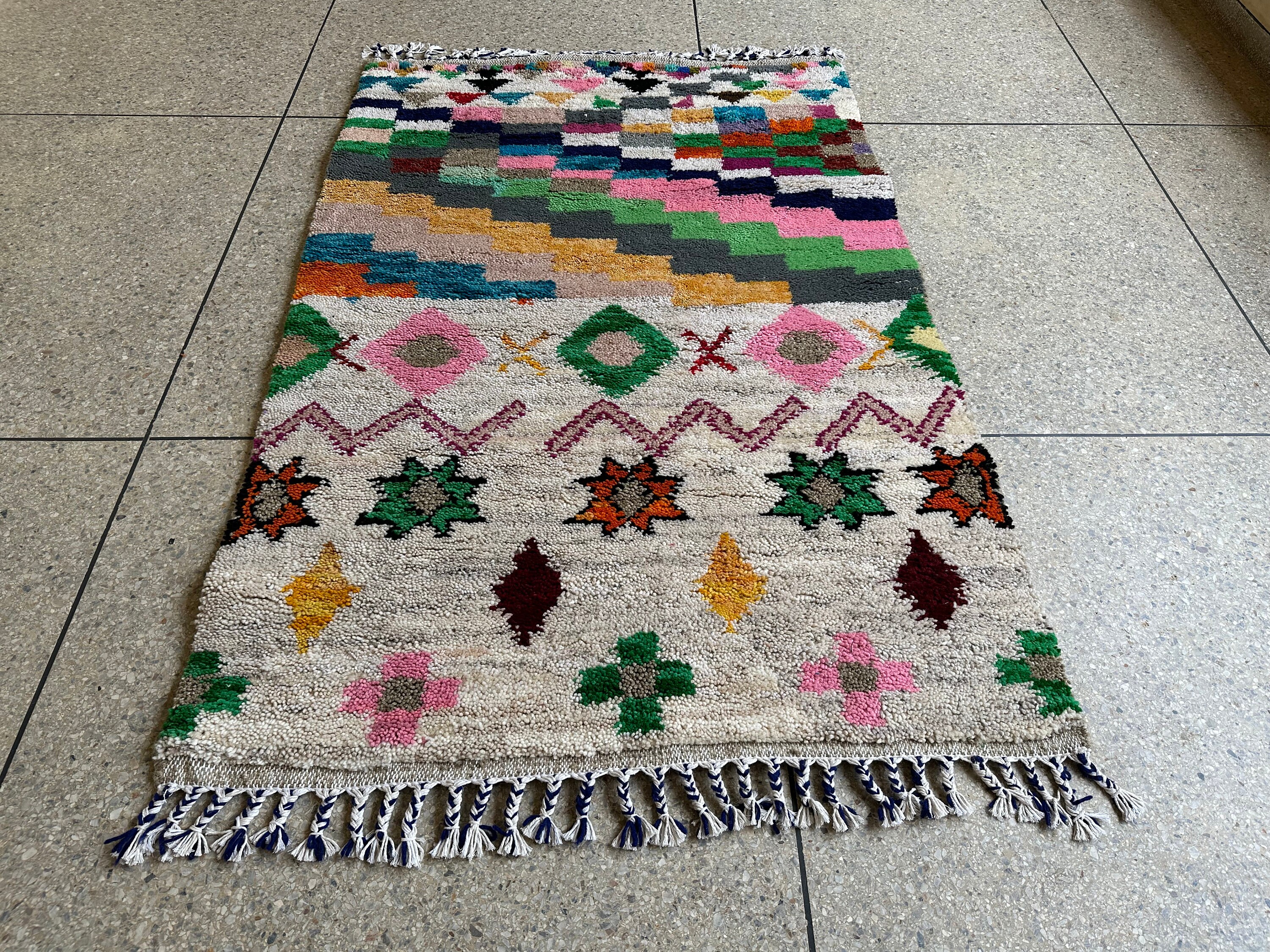 FABULOUS BENIOURAIN CARPET,5x3ft Moroccan Handmade Rug, Azilal Rug, Living Room Rug, Handmade Wool Carpet, Azilal Berber Rug, Handwoven Rug