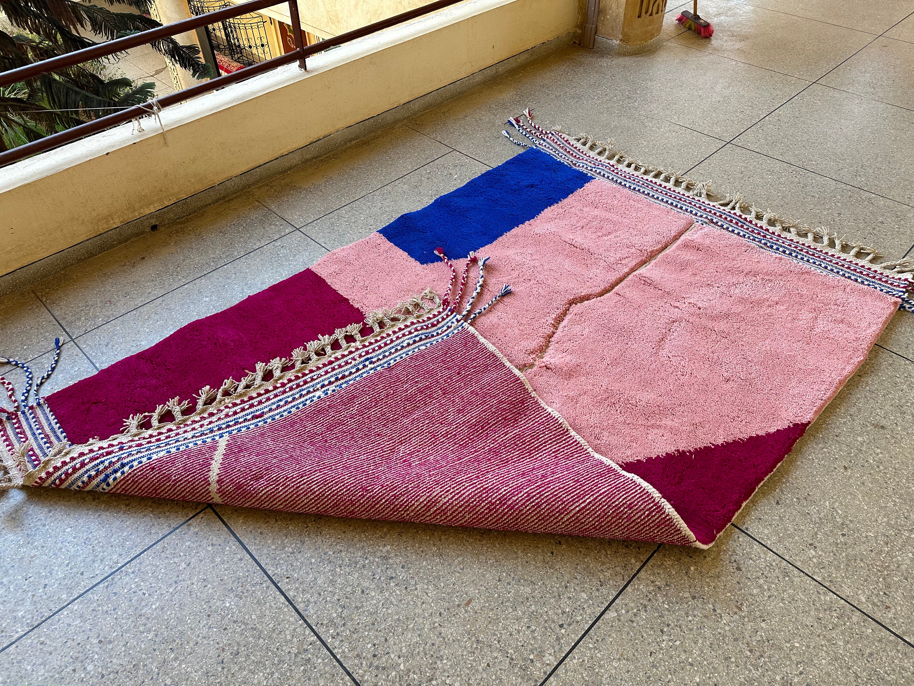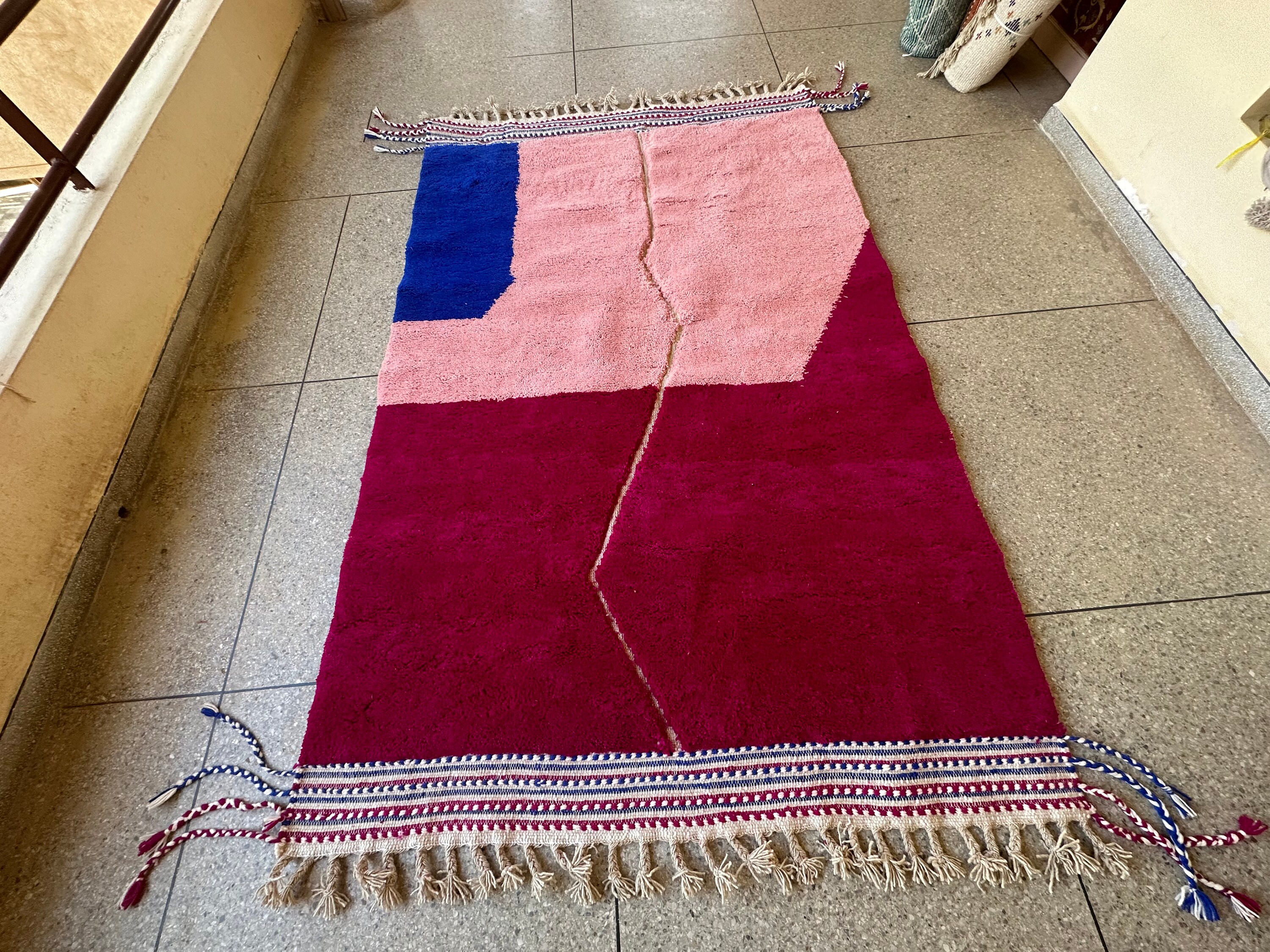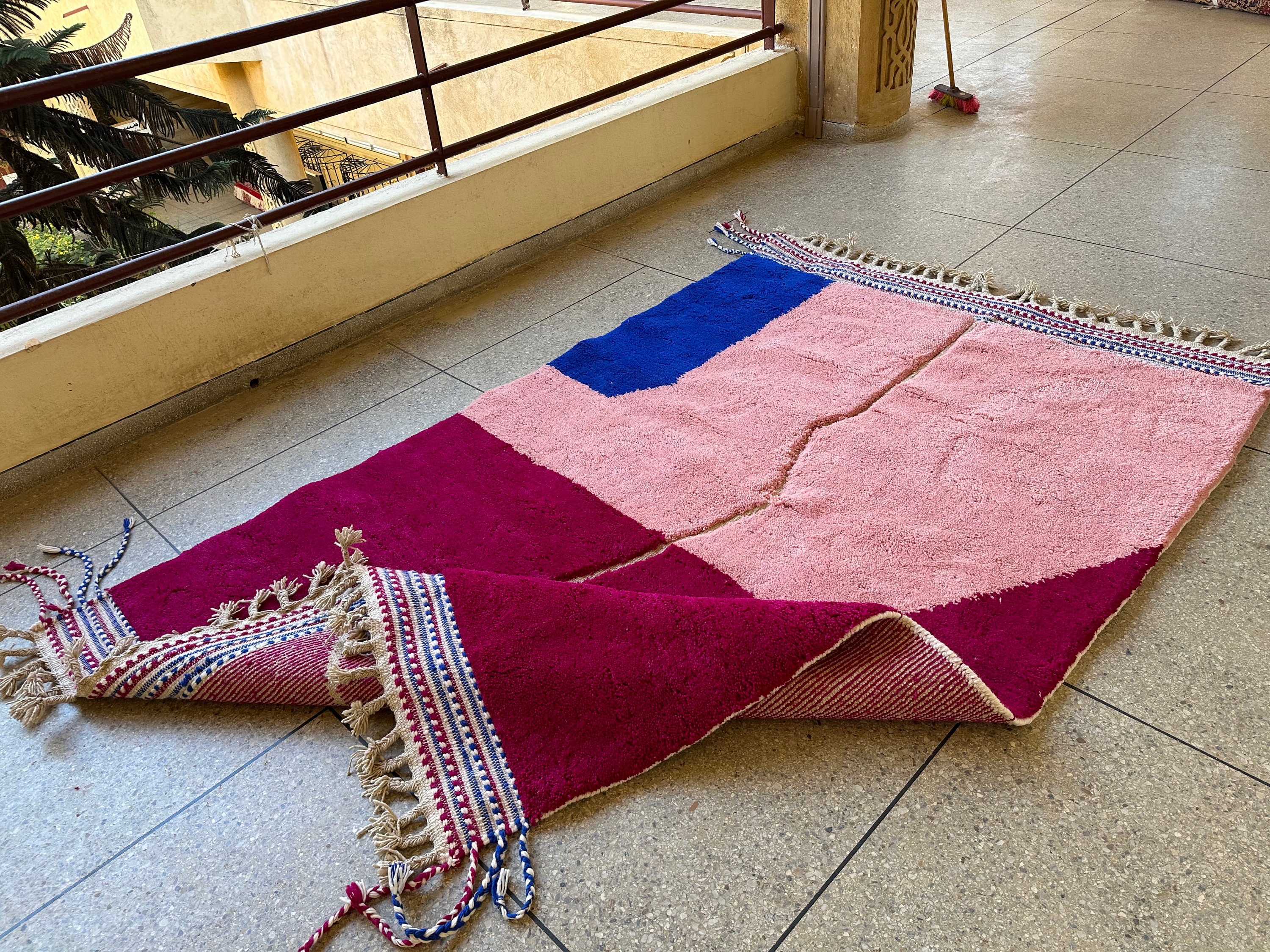 Add a touch of Moroccan charm to your space with our authentic handmade wool rug. This custom Beni Ourain rug features a unique pink design, perfect for adding a pop of color to any room. Large in size, it's ideal for creating a cozy atmosphere. Elevate your decor with this exquisite Berber rug that combines tradition and style effortlessly.