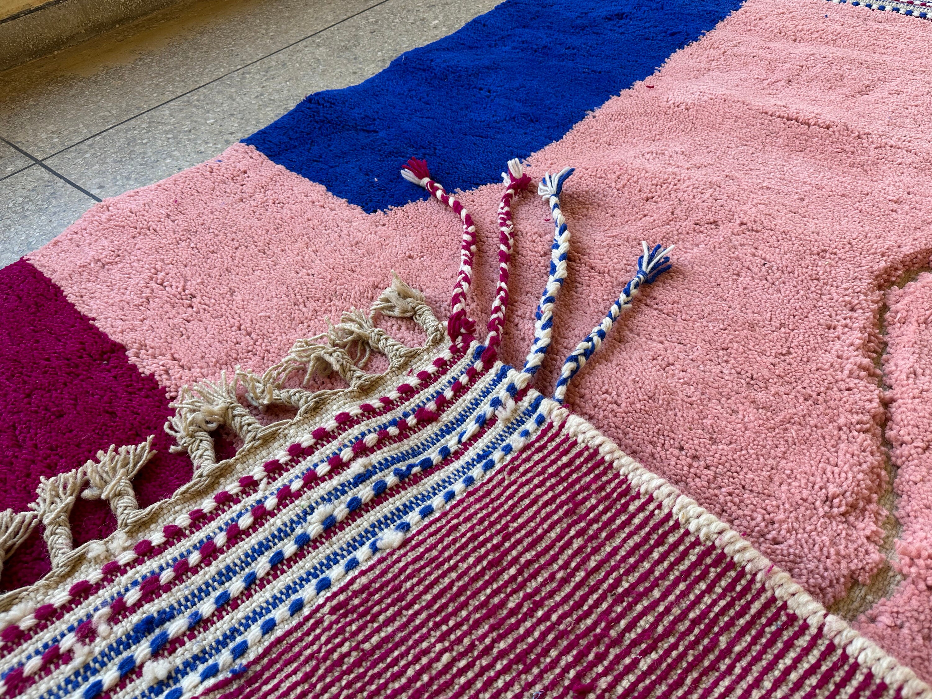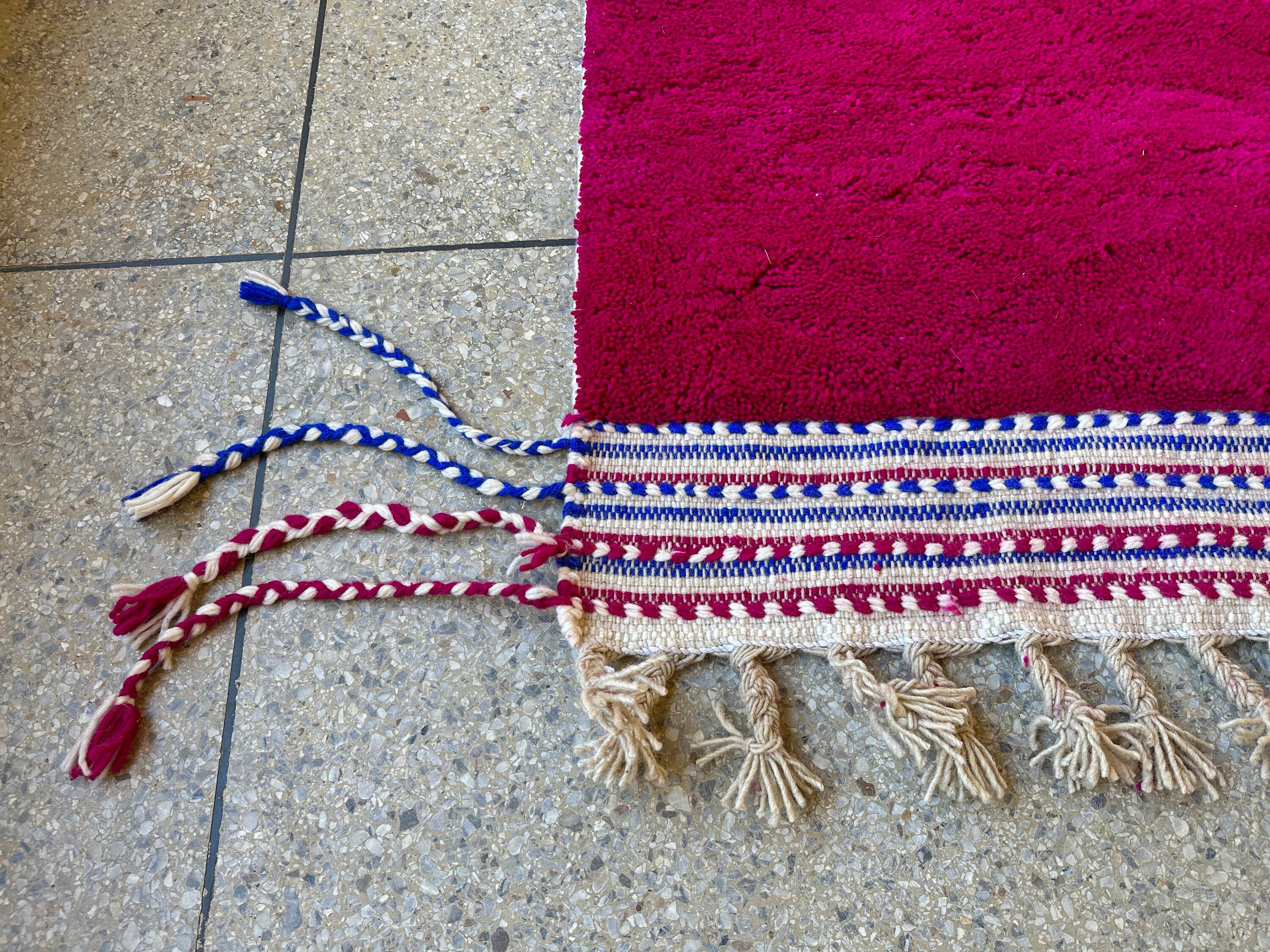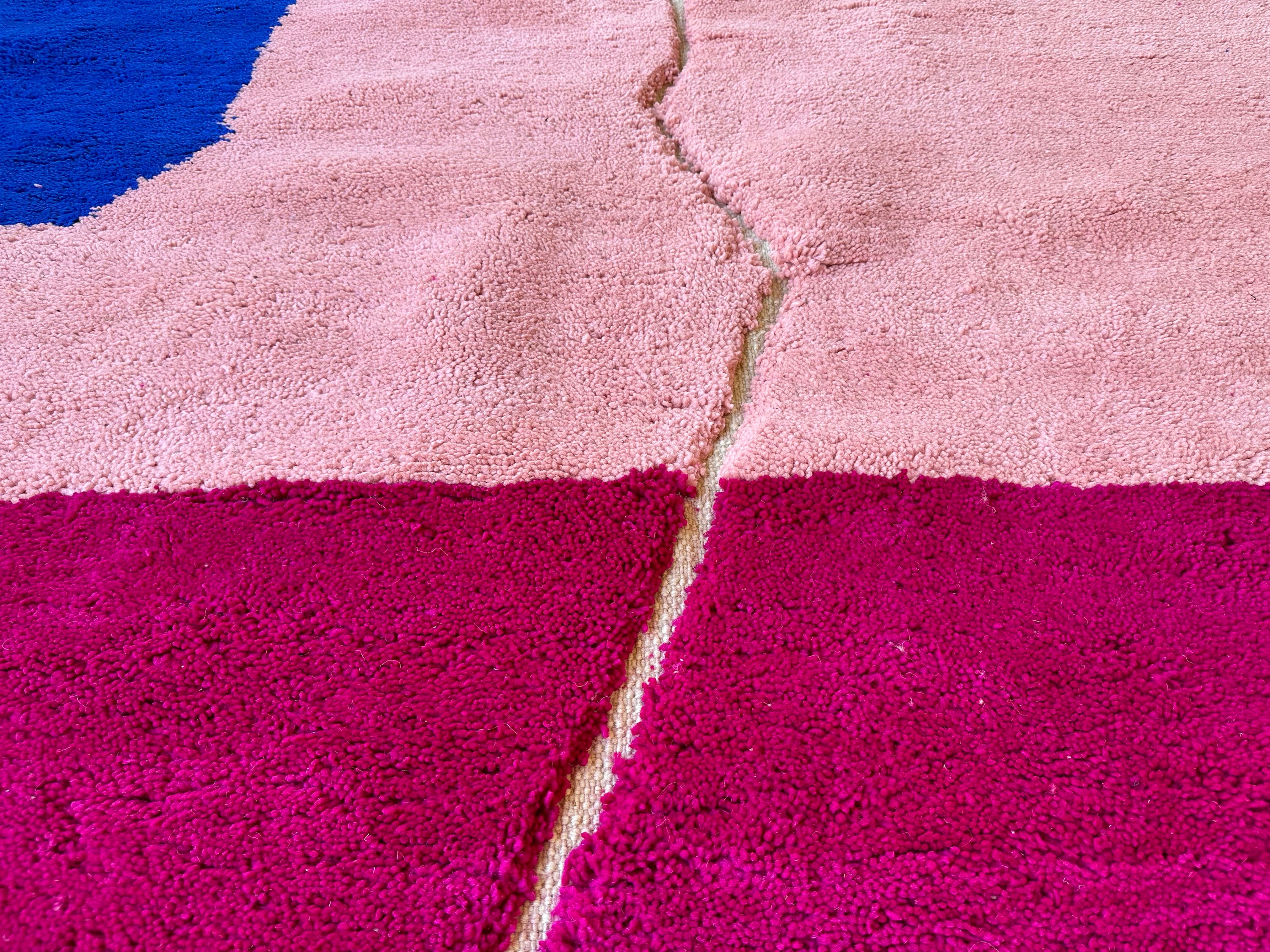 Add a touch of Moroccan charm to your space with our authentic handmade wool rug. This custom Beni Ourain rug features a unique pink design, perfect for adding a pop of color to any room. Large in size, it's ideal for creating a cozy atmosphere. Elevate your decor with this exquisite Berber rug that combines tradition and style effortlessly.