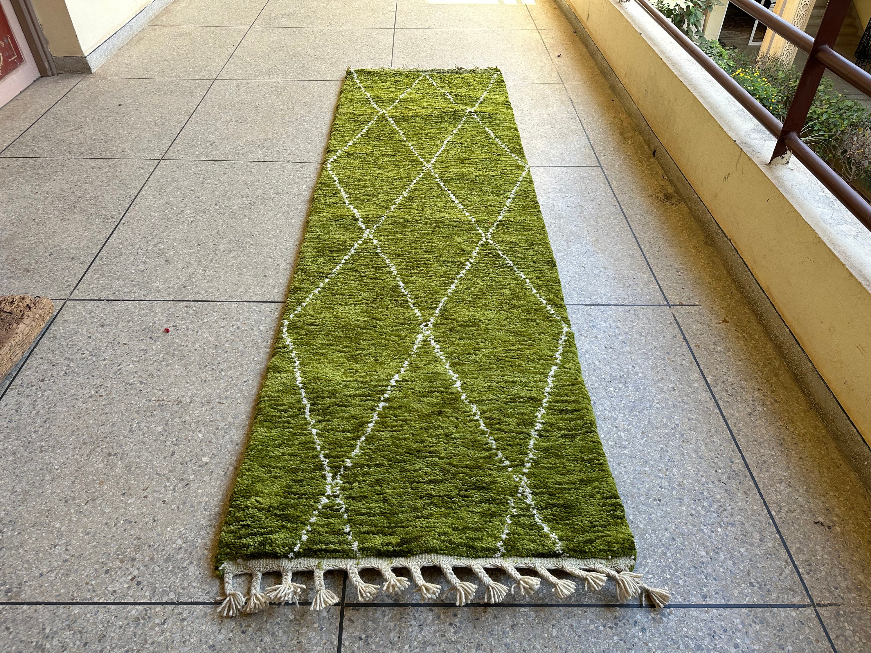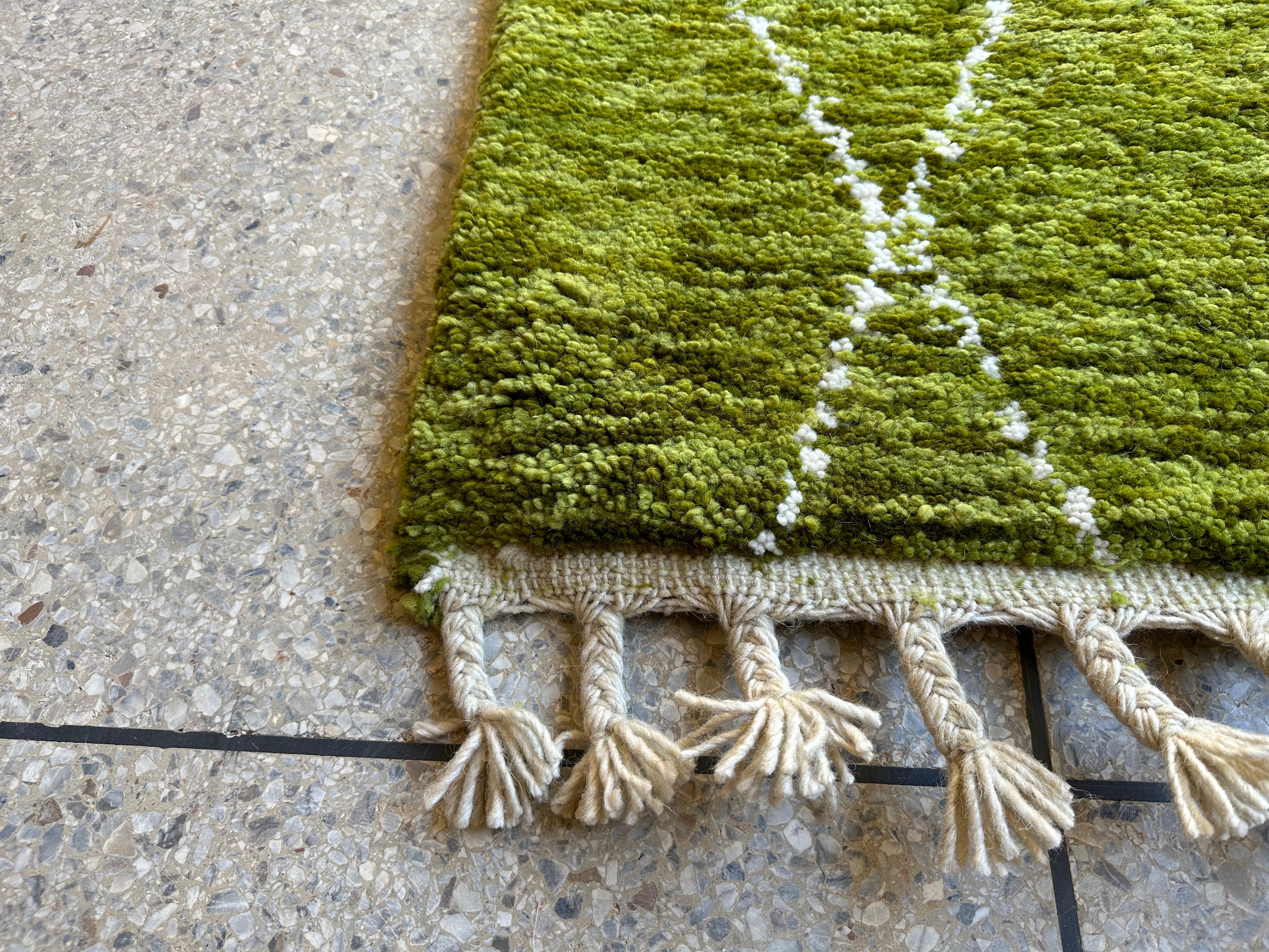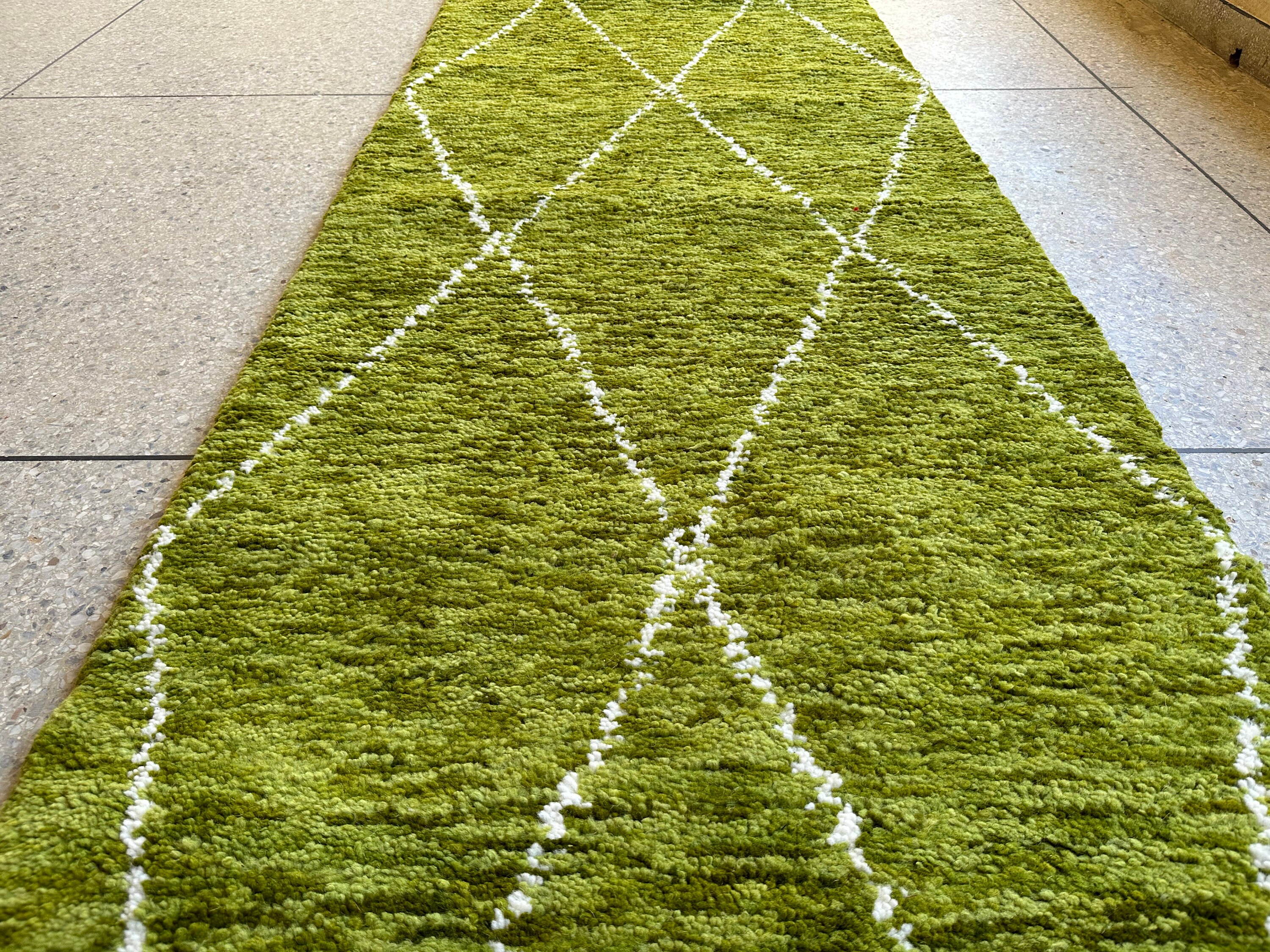 .AMAZING BENI OURAIN Rug, Moroccan Rug, Handwoven Runner, Green and White Rug, Unique Custom Rug, Wool Rug, Berber Rug, Abstract Rug