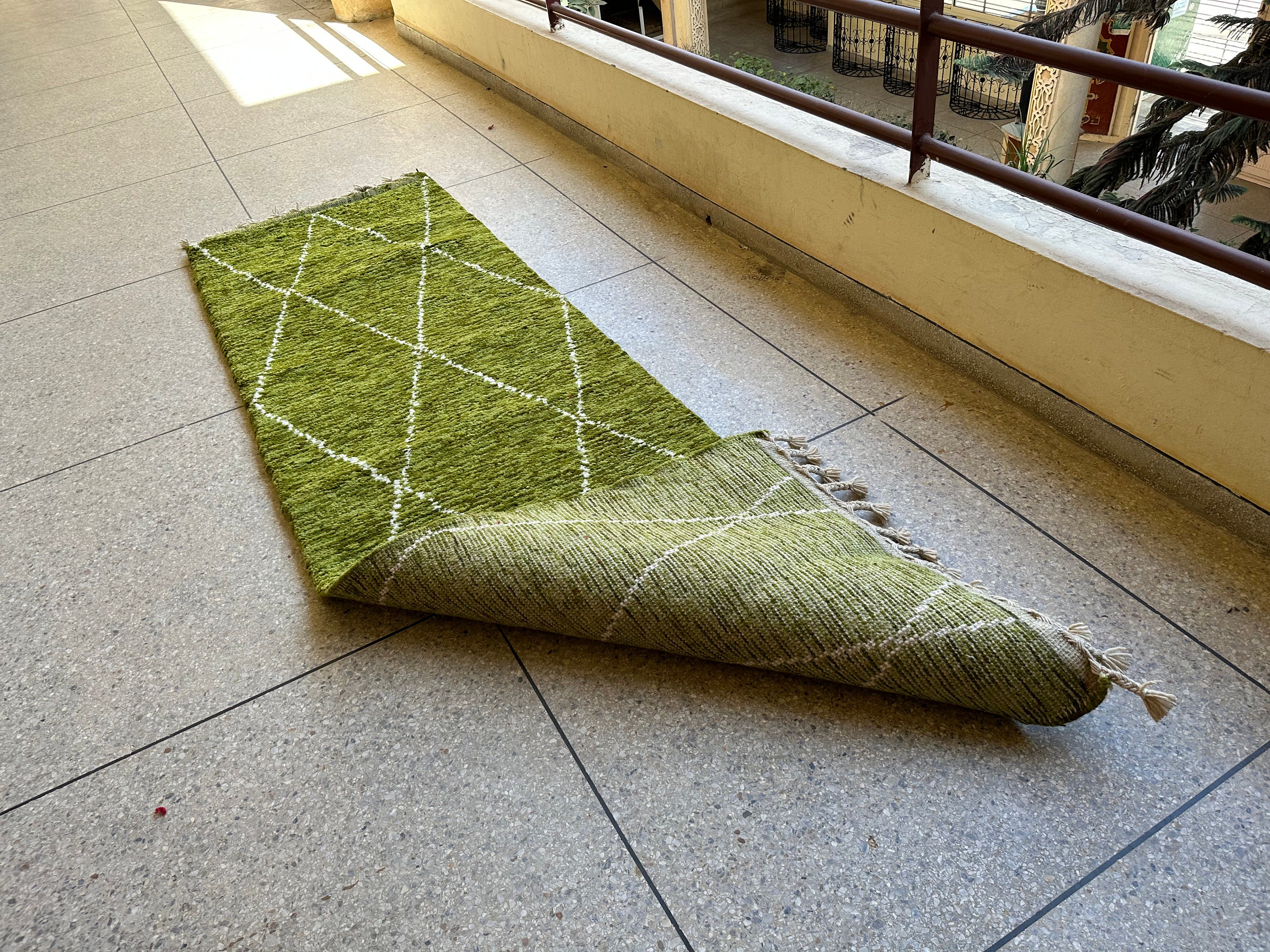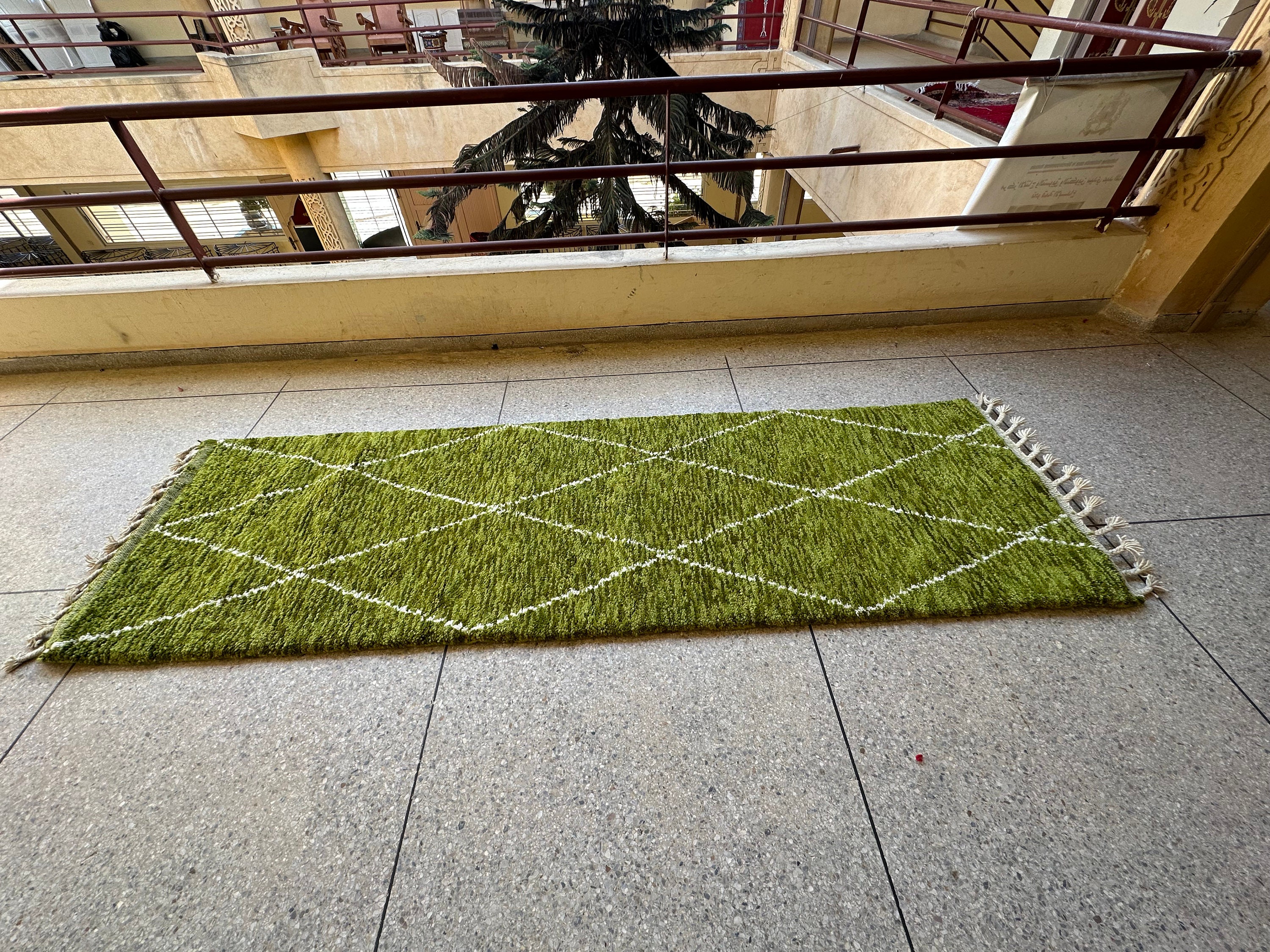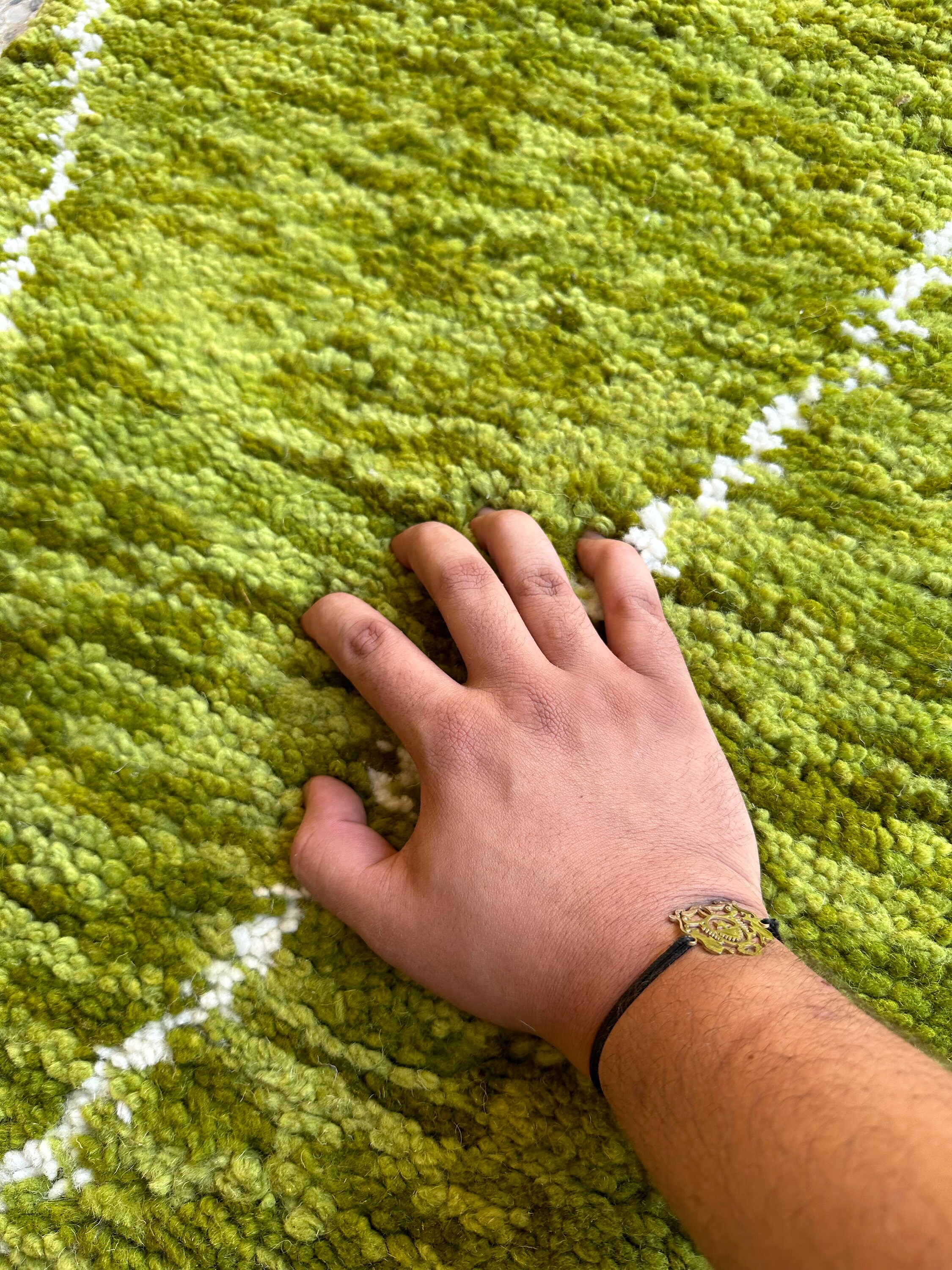 .AMAZING BENI OURAIN Rug, Moroccan Rug, Handwoven Runner, Green and White Rug, Unique Custom Rug, Wool Rug, Berber Rug, Abstract Rug
