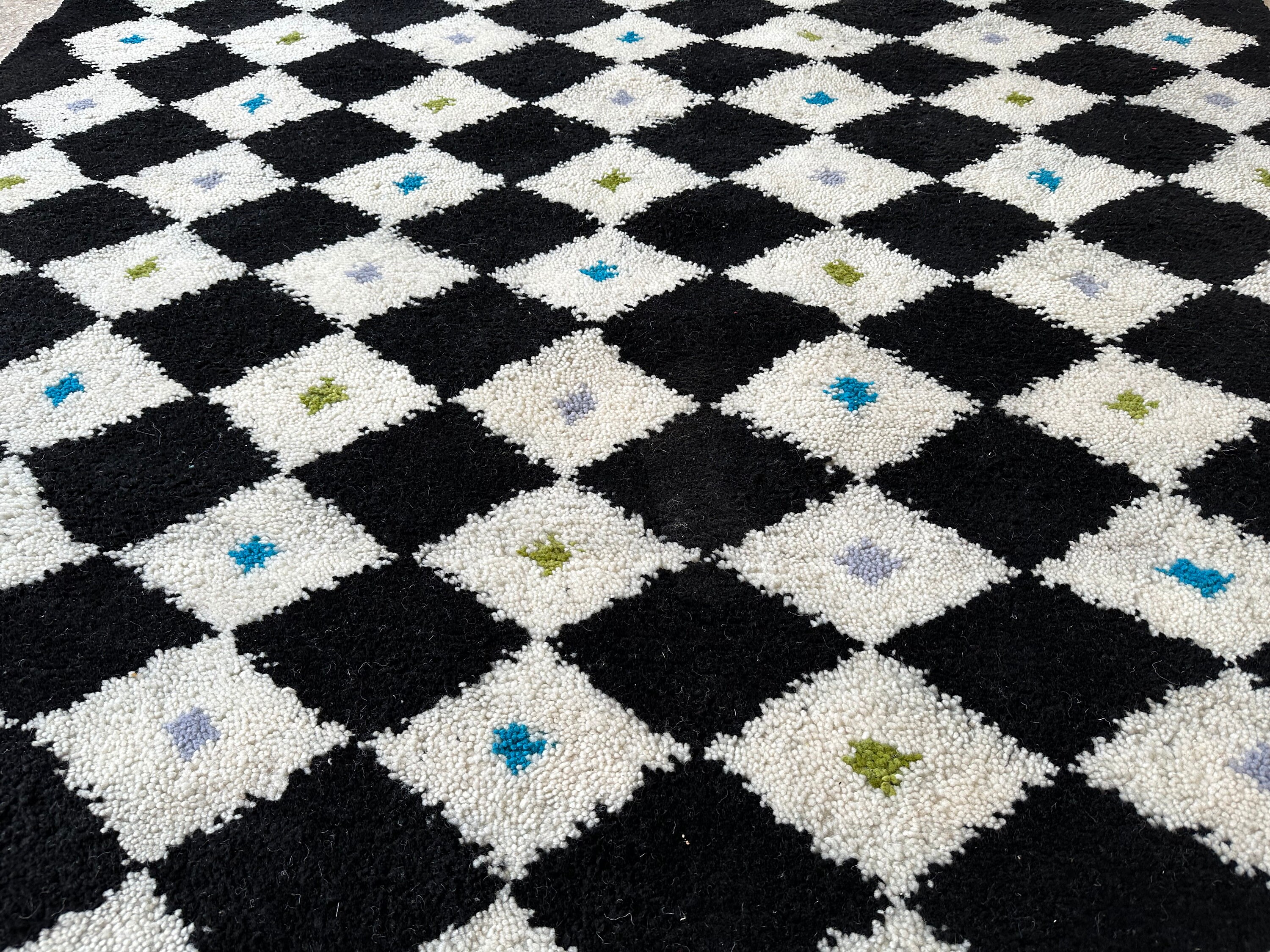 Transform your space with our Custom Moroccan Wool Rug featuring a stunning Beni Ourain black and white checkered design. Handwoven by skilled artisans, this Berber carpet embodies tradition and quality, bringing warmth and texture to any room. Perfect as a square shag rug for living rooms, bedrooms, or entryways, it adds a unique touch to your decor. Experience luxury underfoot with this versatile piece—ideal for modern or bohemian styles. Elevate your home with this exquisite, handmade treasure!