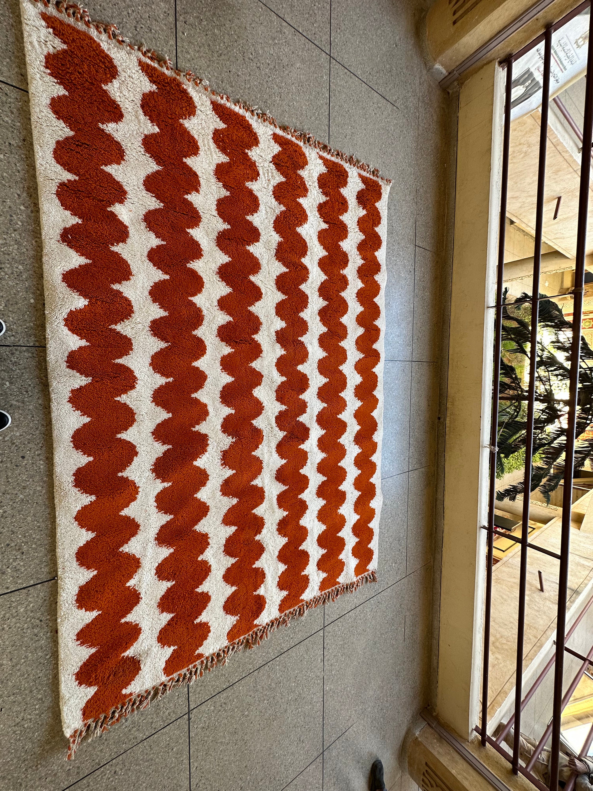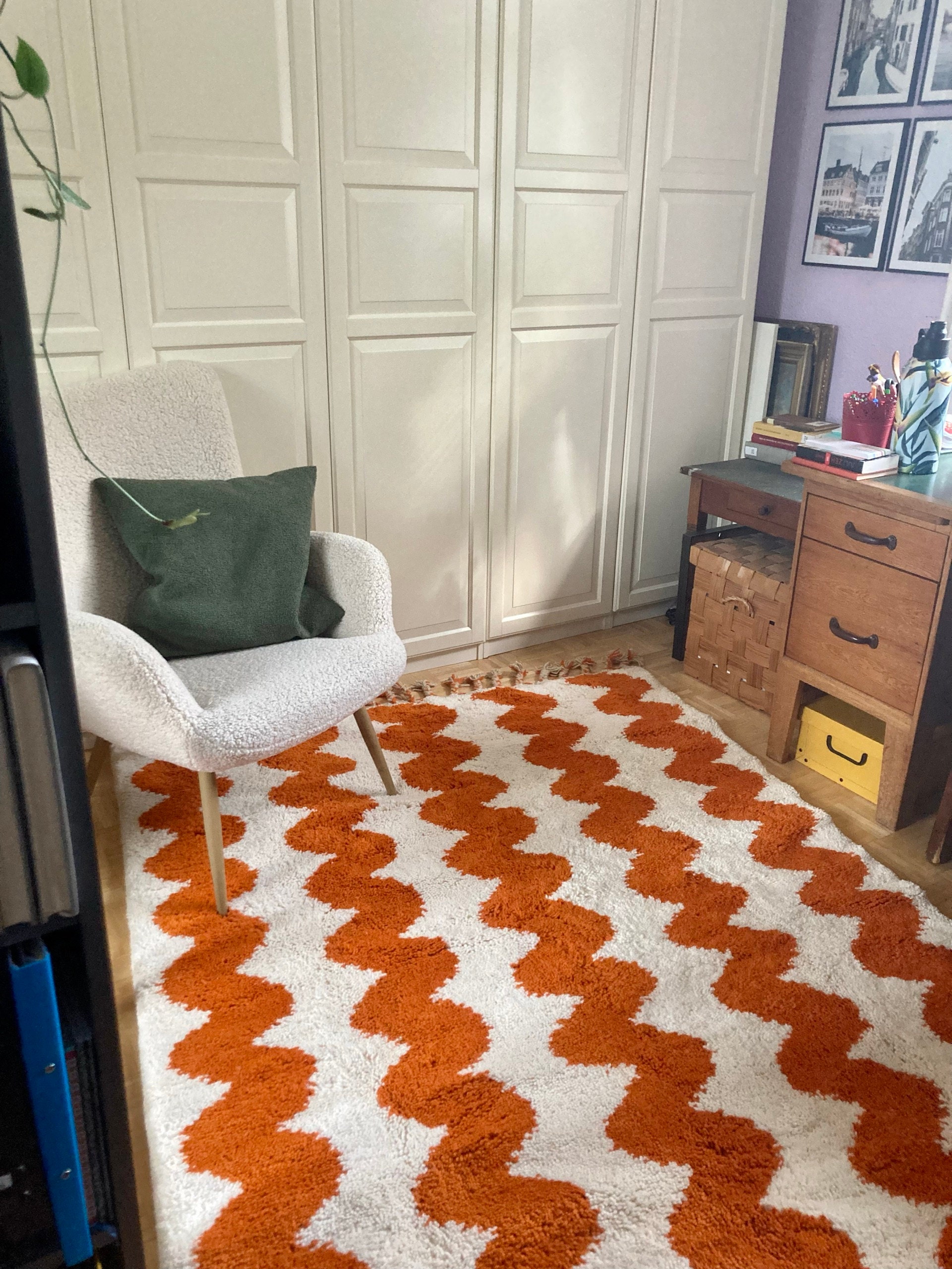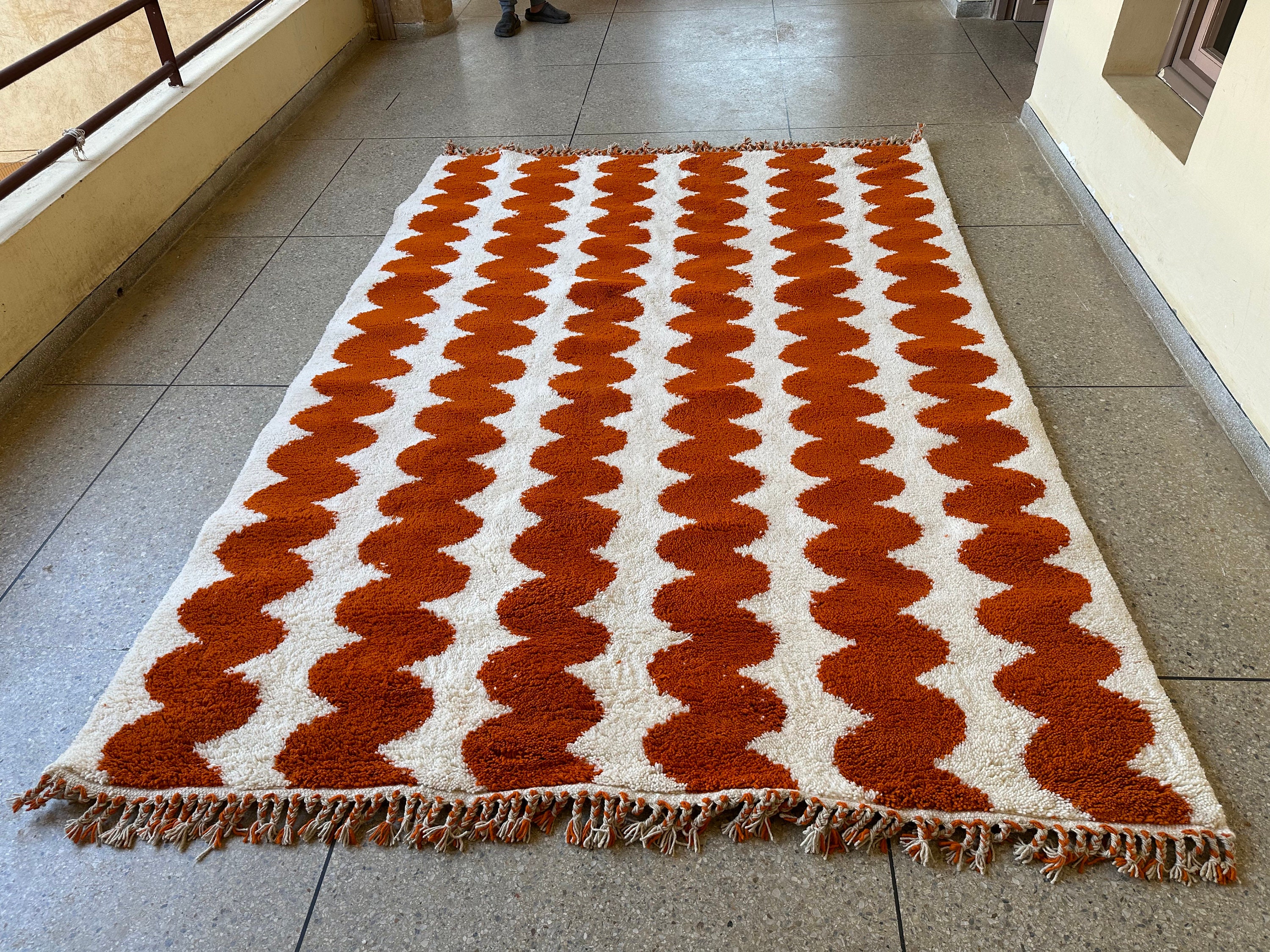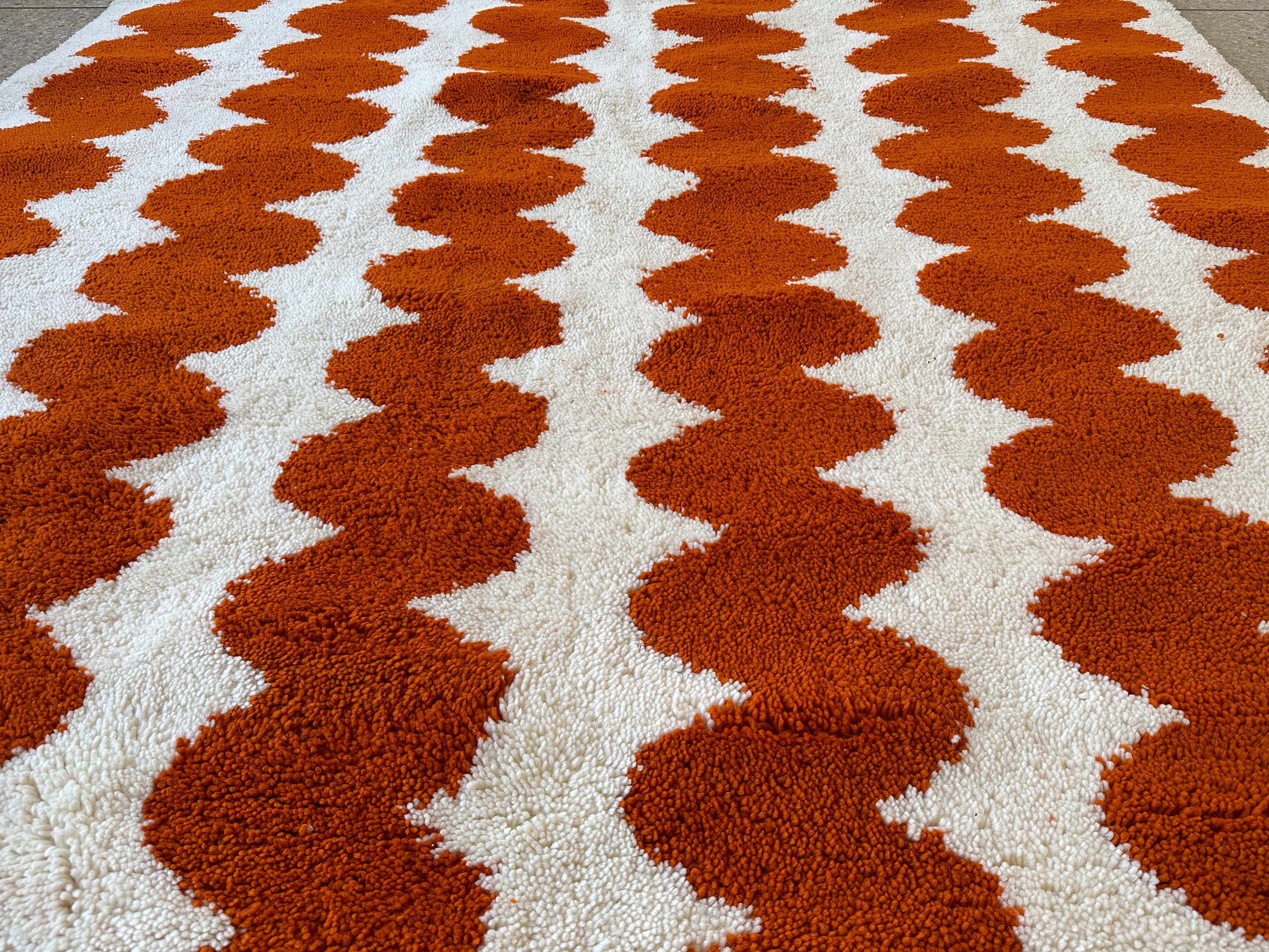 Elevate your space with an Authentic Moroccan Beni Ourain rug! Handcrafted to perfection, this Custom White & Orange Rug adds a touch of elegance. The Large Moroccan Rug is a perfect Housewarming Gift that will be cherished for years to come. Make a statement with this one-of-a-kind piece!