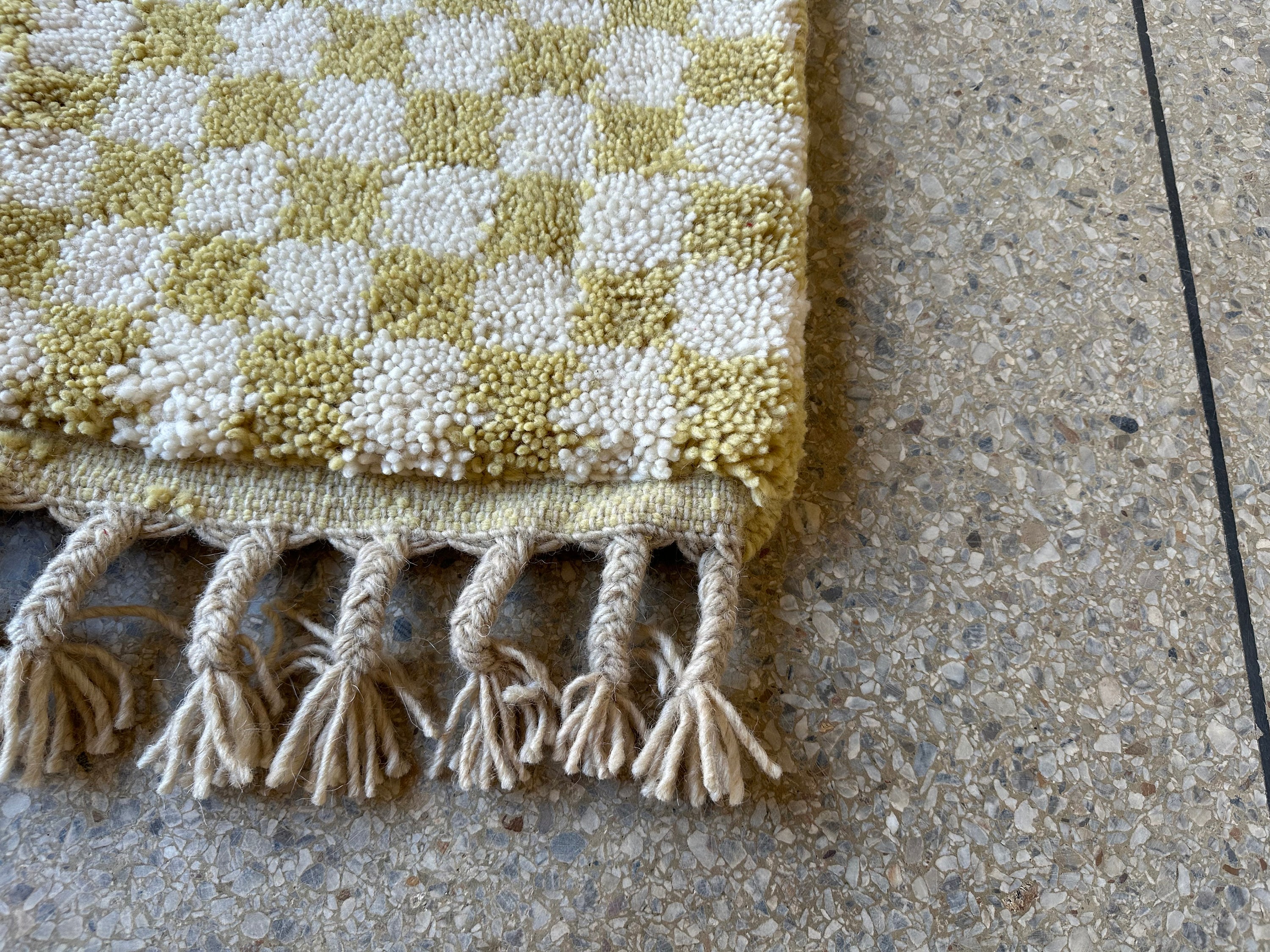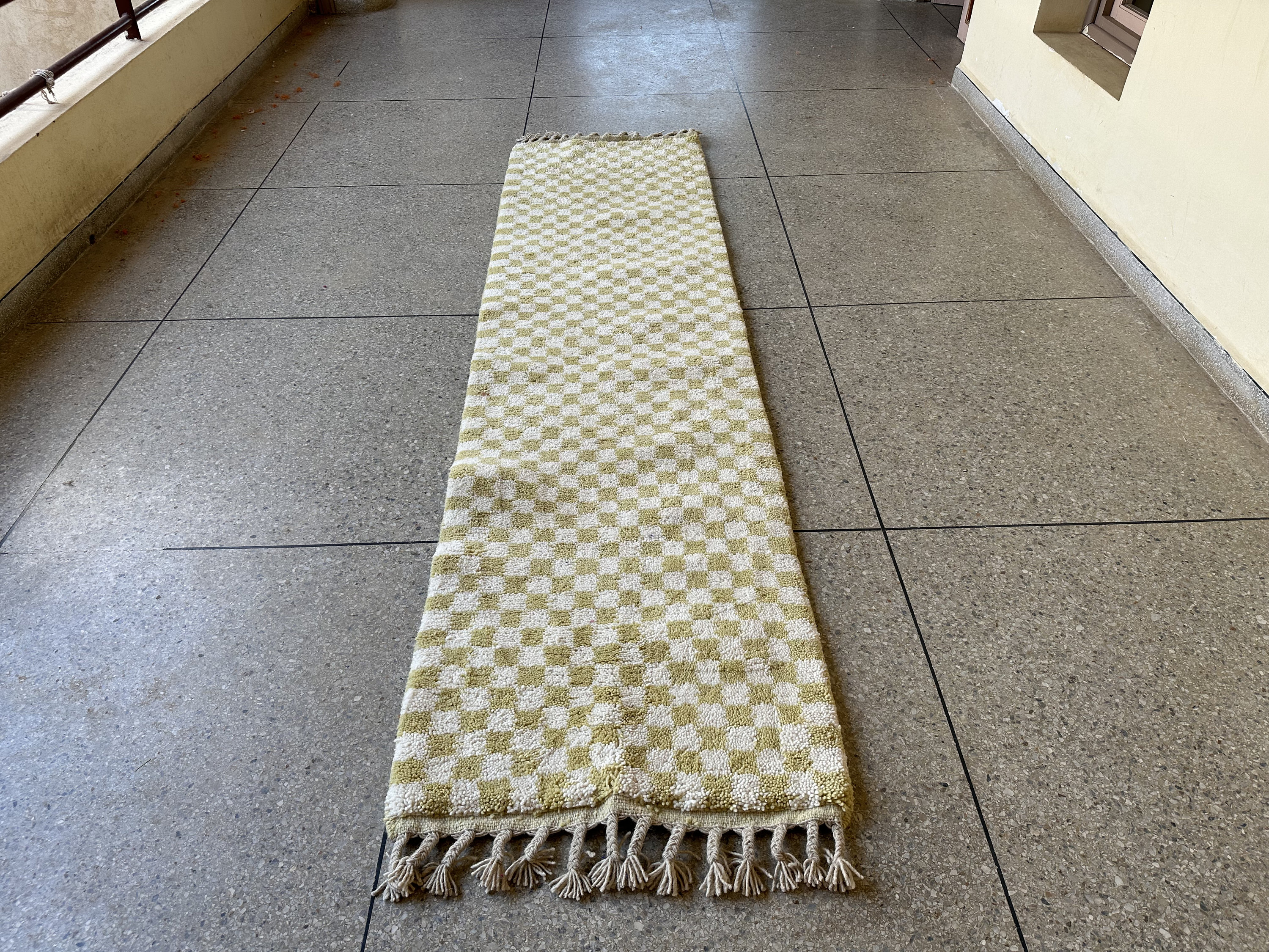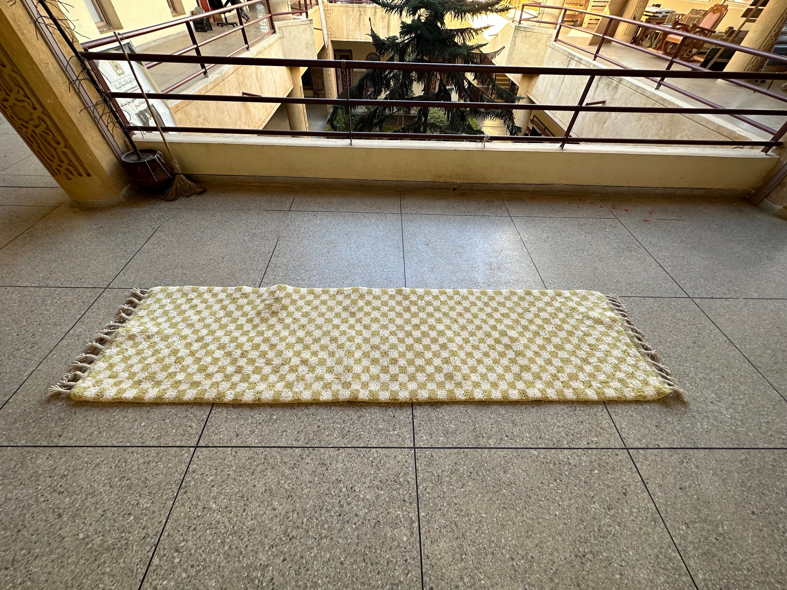 Transform your space with our CHECKERED RUNNER featuring a stunning Yellow and White Beni Ourain design. This Custom Moroccan Runner is perfect for enhancing your hallway or entryway. Crafted with authenticity in mind, our Berber Runner Rug showcases traditional artistry while offering modern functionality. Ideal for adding a pop of color to any floor, it combines style and comfort seamlessly. Elevate your home decor with this unique piece that reflects the rich heritage of Moroccan weaving!