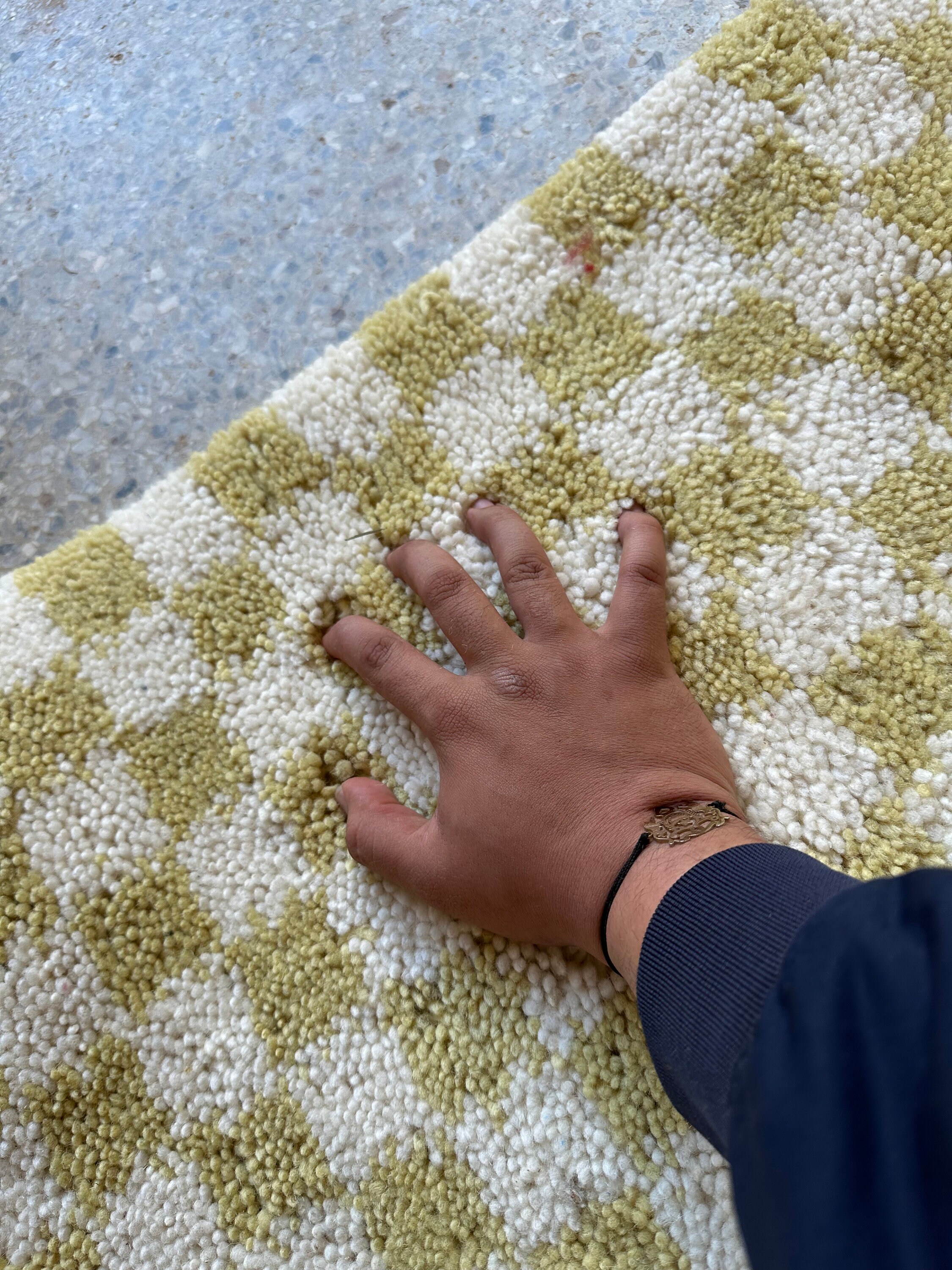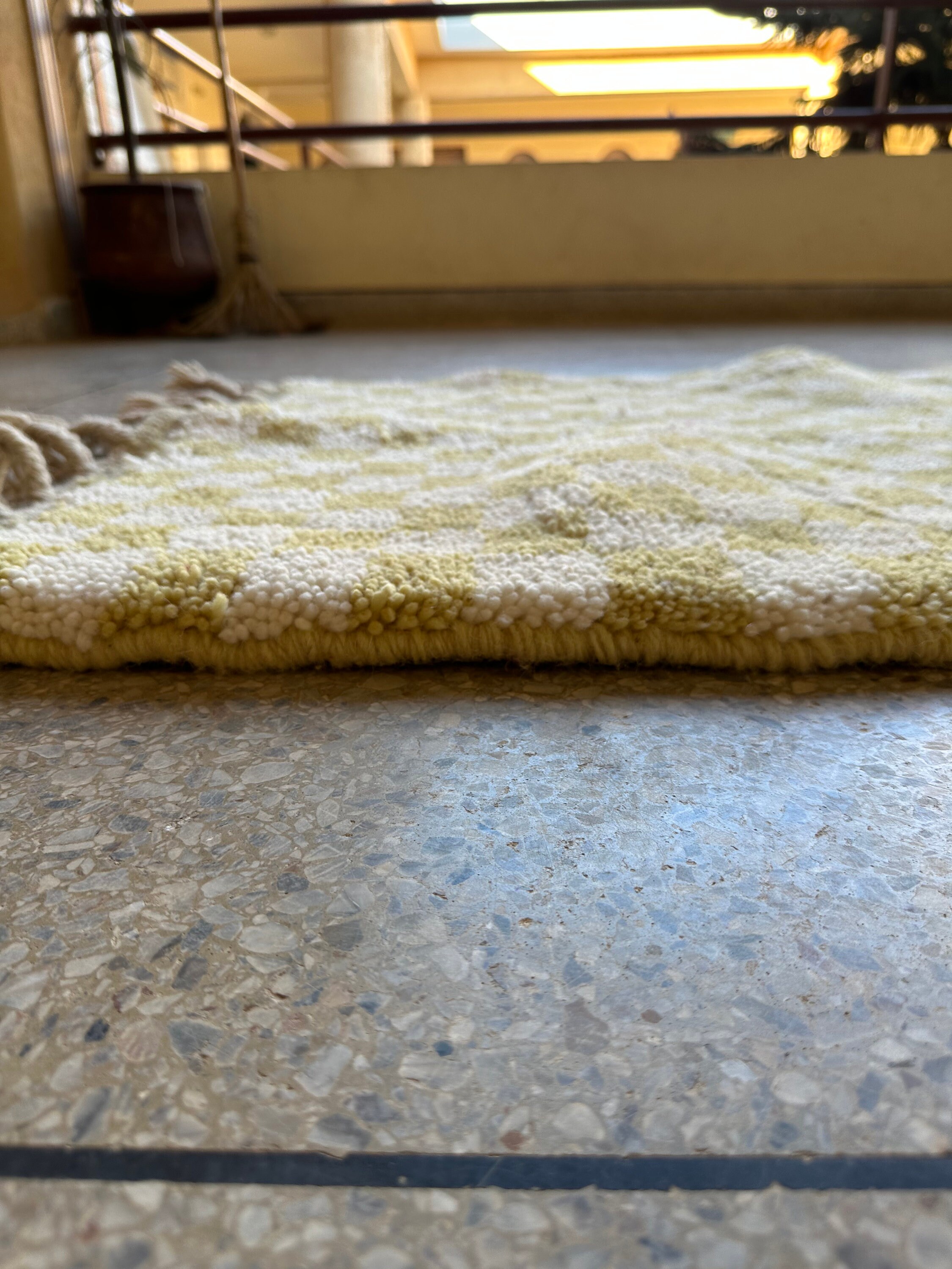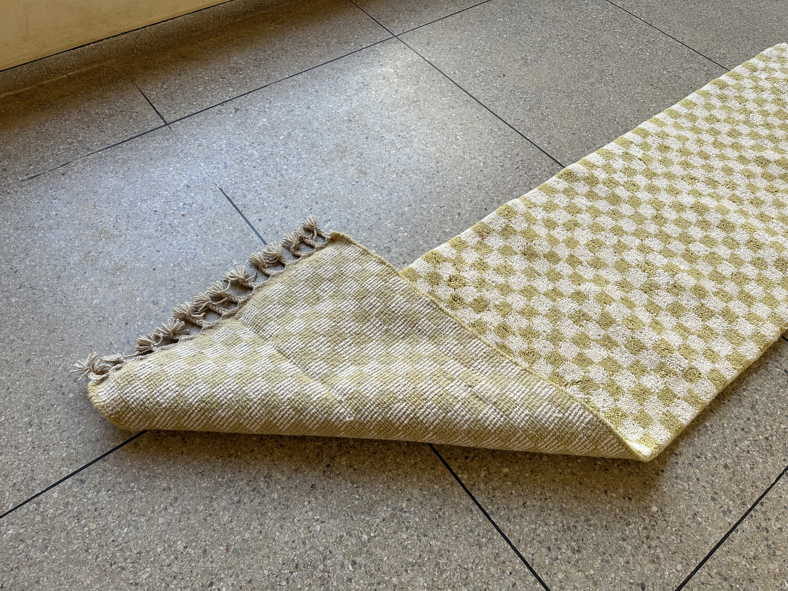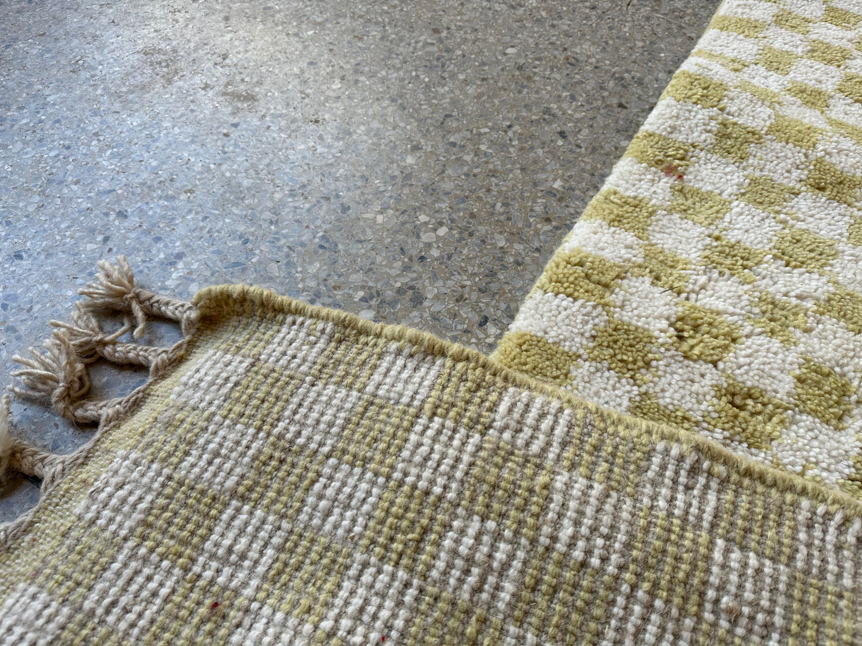Transform your space with our CHECKERED RUNNER featuring a stunning Yellow and White Beni Ourain design. This Custom Moroccan Runner is perfect for enhancing your hallway or entryway. Crafted with authenticity in mind, our Berber Runner Rug showcases traditional artistry while offering modern functionality. Ideal for adding a pop of color to any floor, it combines style and comfort seamlessly. Elevate your home decor with this unique piece that reflects the rich heritage of Moroccan weaving!