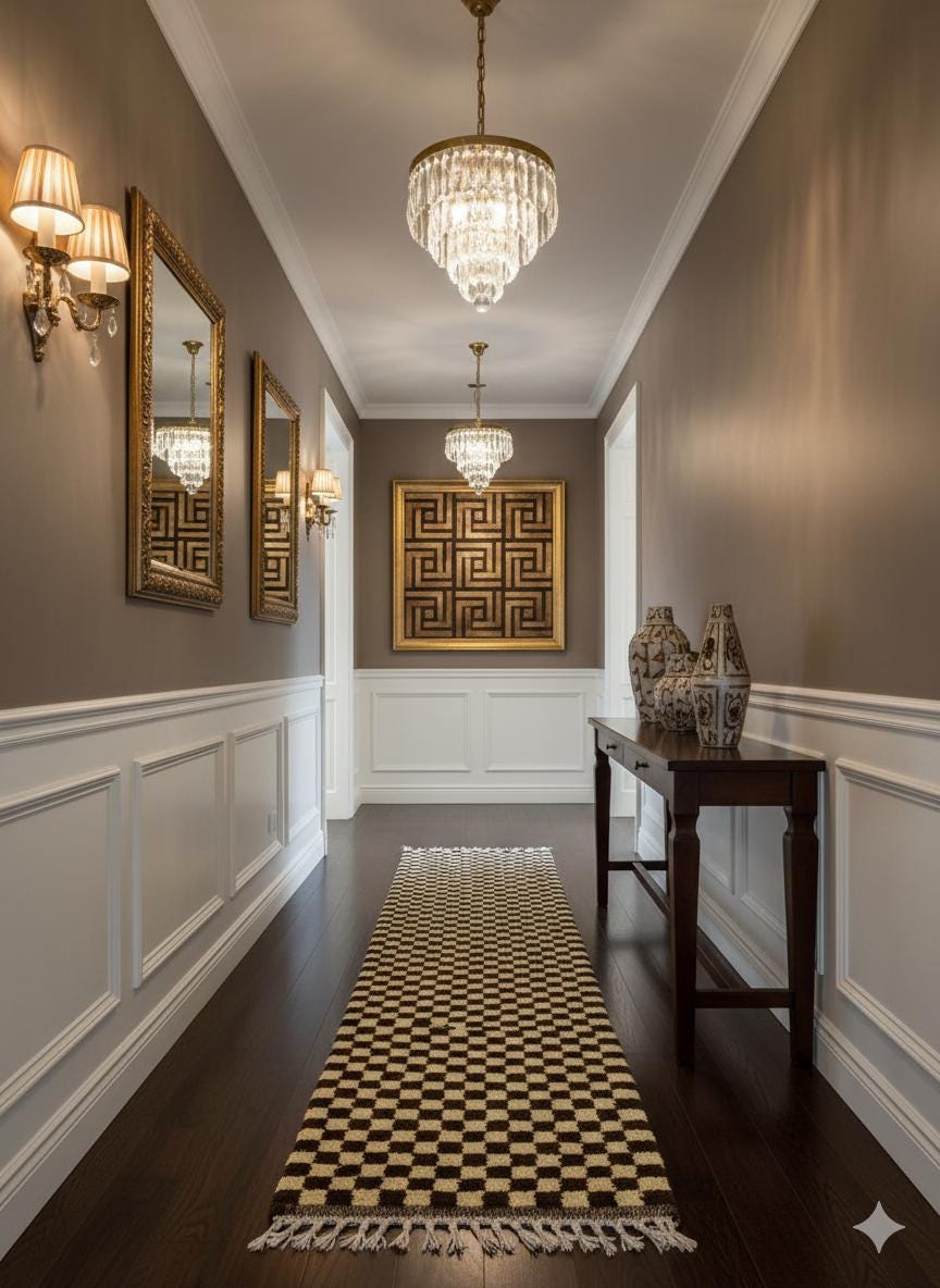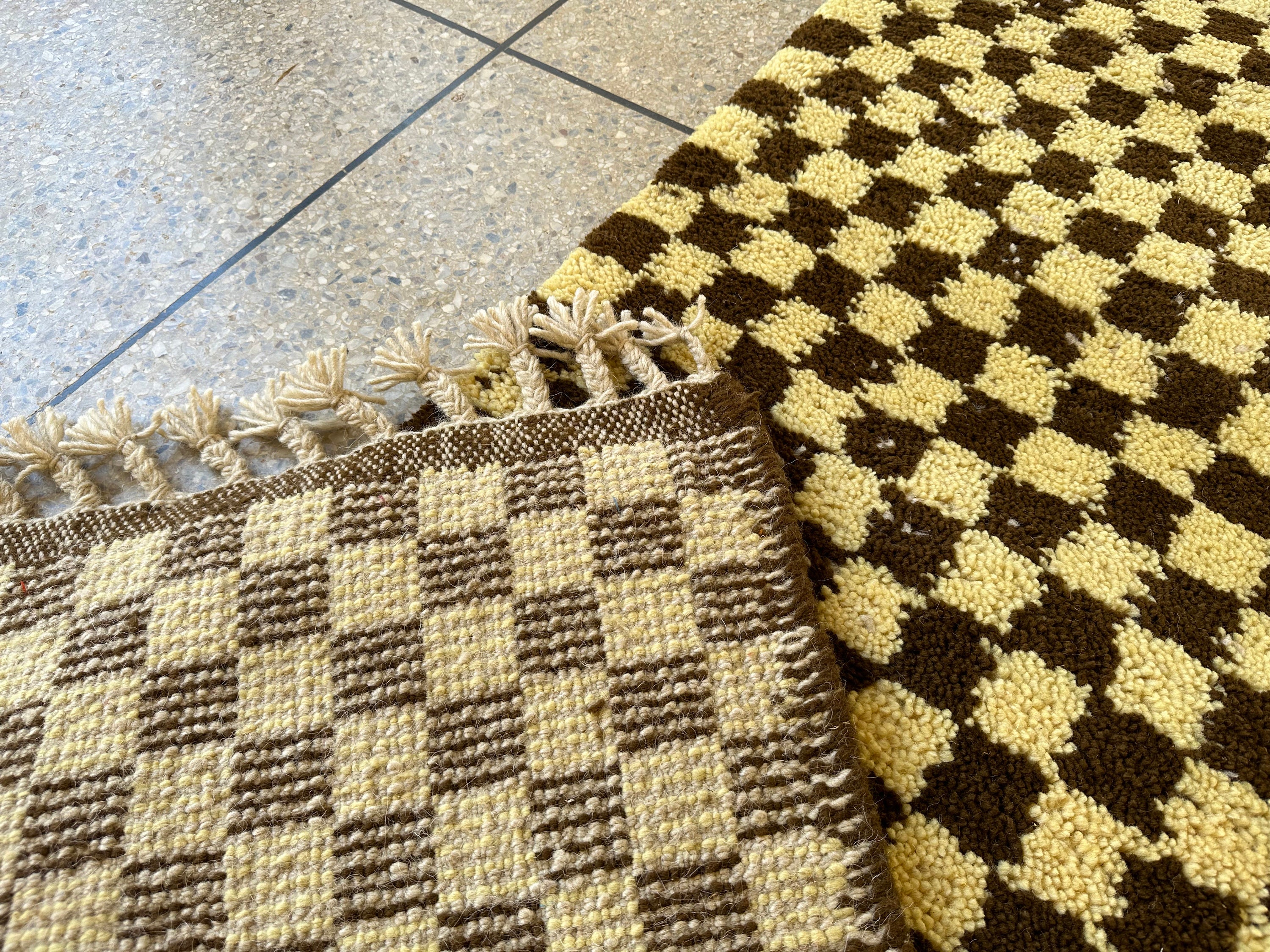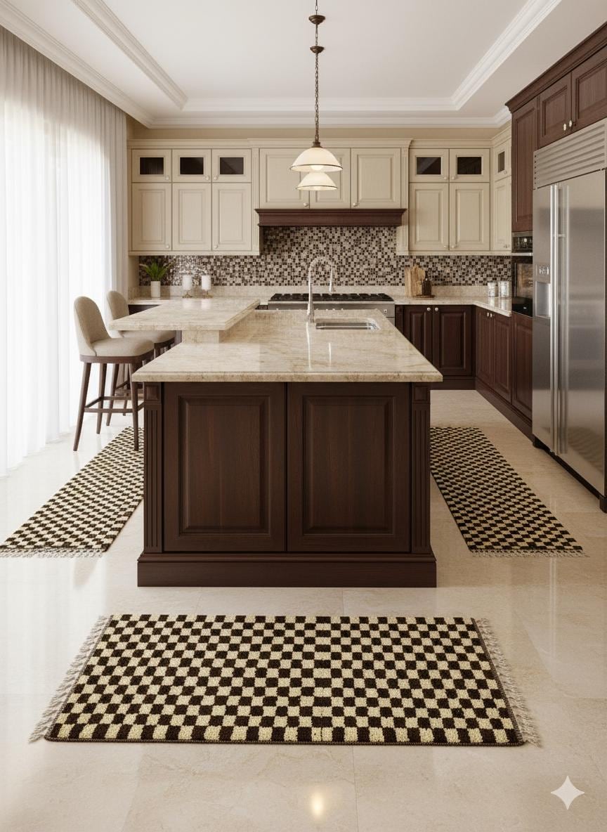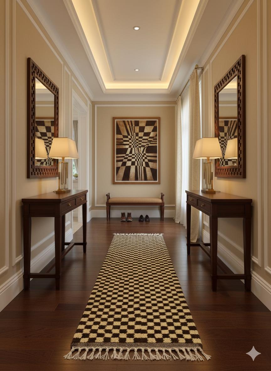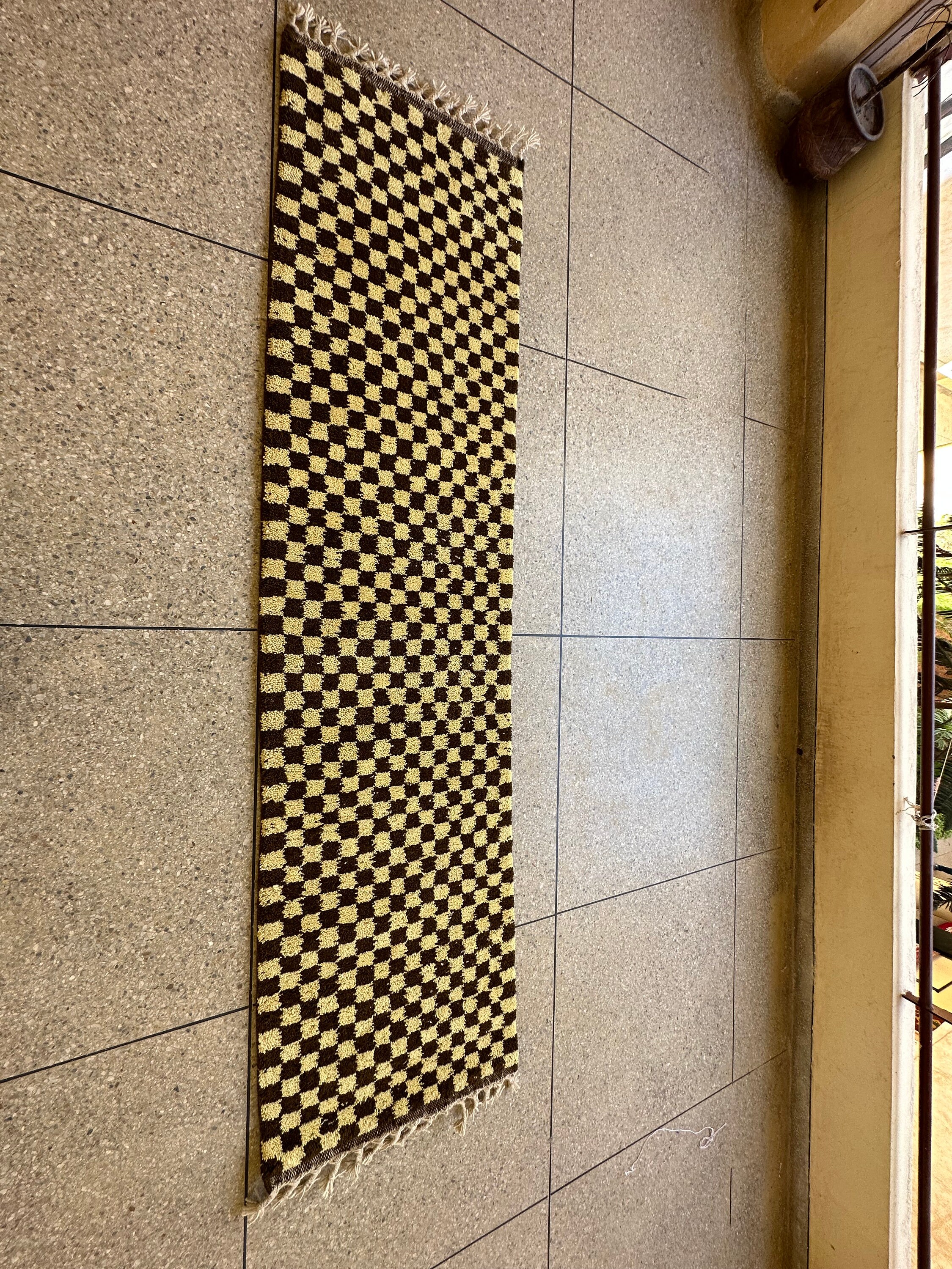Elevate your space with our AUTHENTIC CHECKERED RUNNER, handcrafted from luxurious wool for lasting elegance. This Beni Ourain Moroccan Carpet features a stunning ivory and brown design, perfect for your hallway or entryway. Its intricate hand-knotted construction adds a unique touch to any Berber kitchen or living area. Bring warmth and style to your home with this exquisite wool hallway runner—where tradition meets modern decor! Ideal for enhancing any room's aesthetic while providing comfort underfoot.