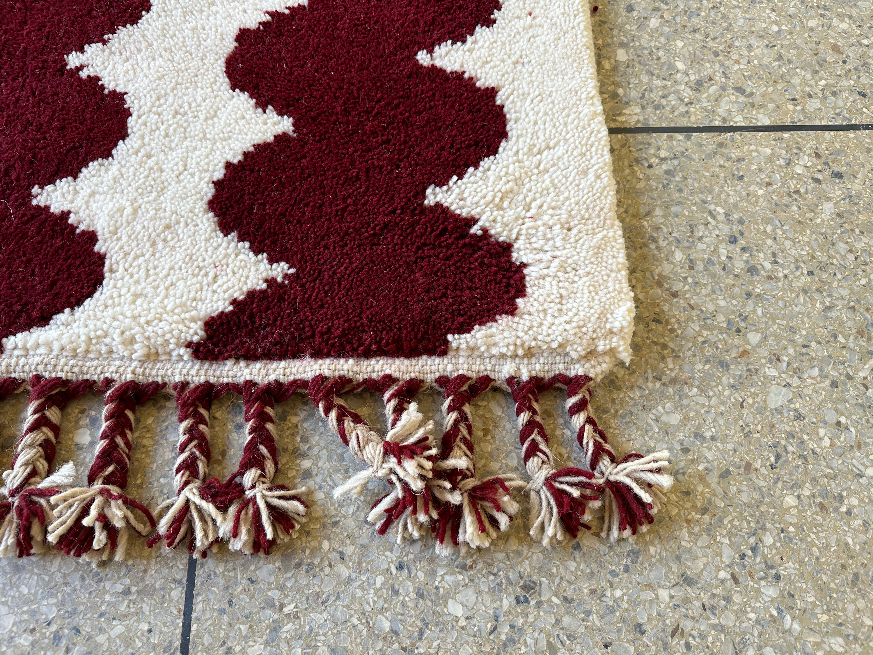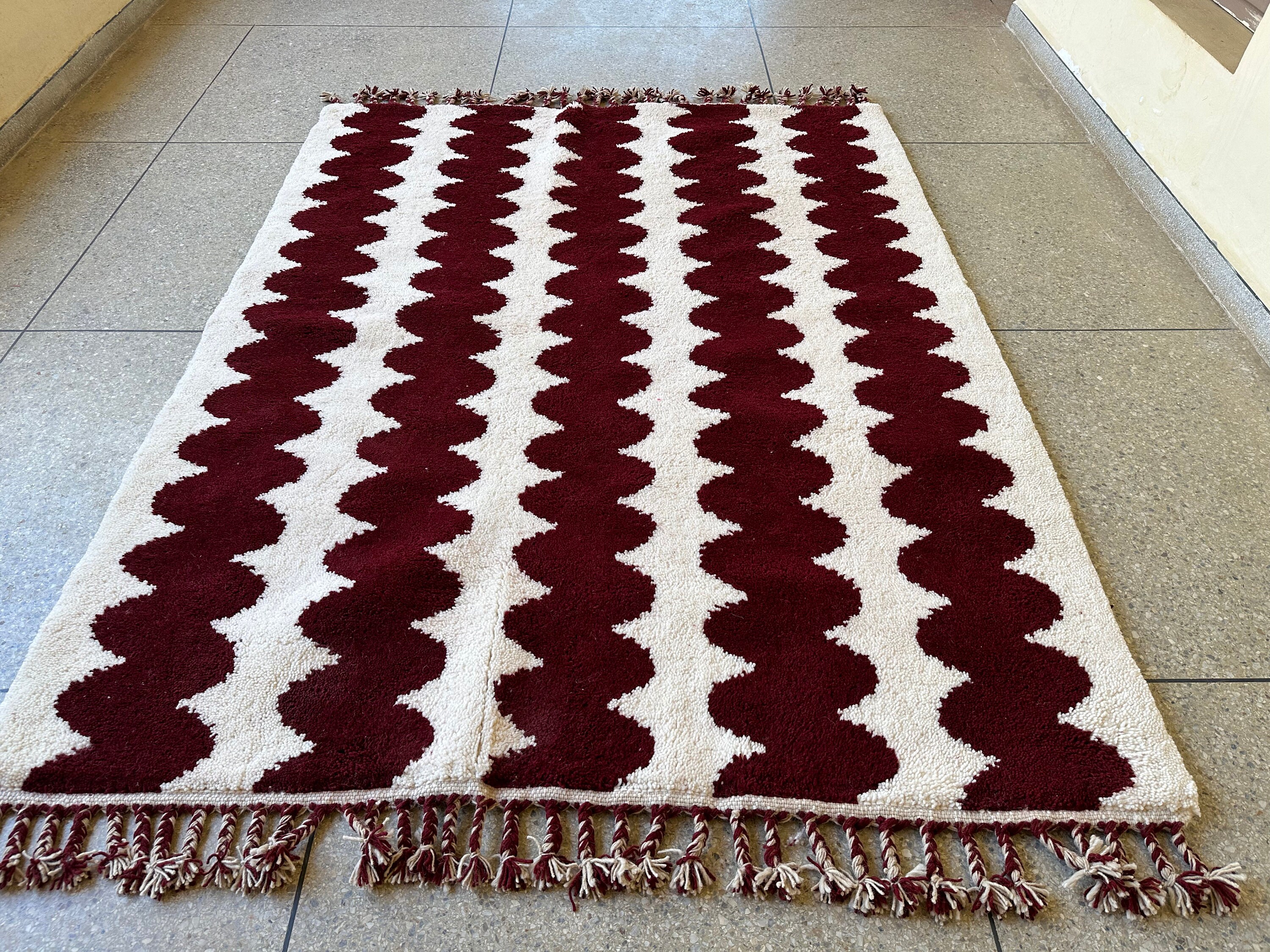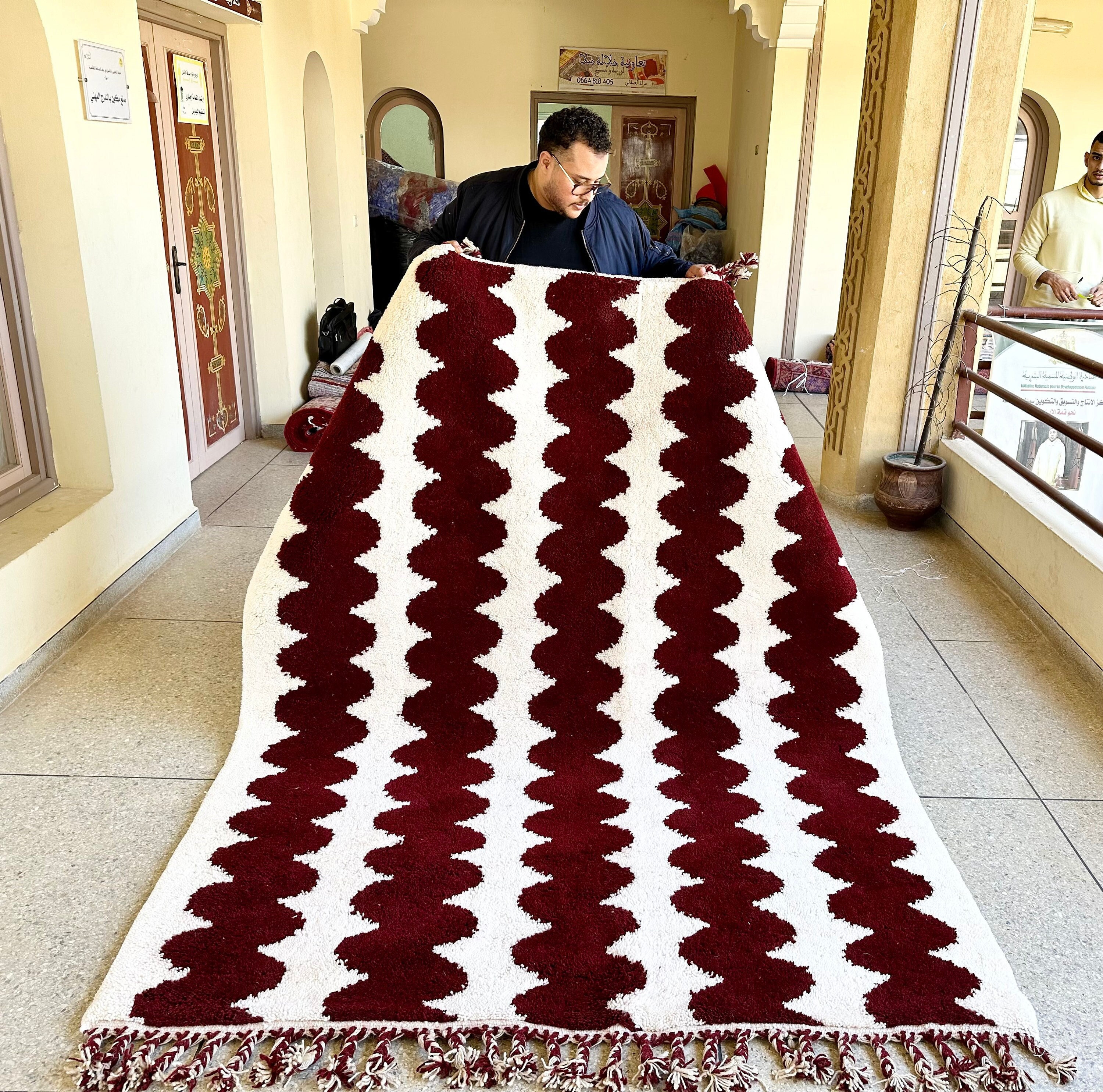 Elevate your space with our stunning MODERN AREA RUG featuring a captivating Red & White Striped Design. Handwoven from natural wool, this Custom Moroccan Rug showcases the artistry of traditional Artisan-Crafted Berber Rugs. Perfect for adding warmth and elegance, it's a stylish choice for any room. Uniquely crafted, this Handwoven Beni Ourain Rug is more than just a carpet - it's a statement piece that ties your decor together. Transform your home with this exquisite blend of modern design and cultural heritage!