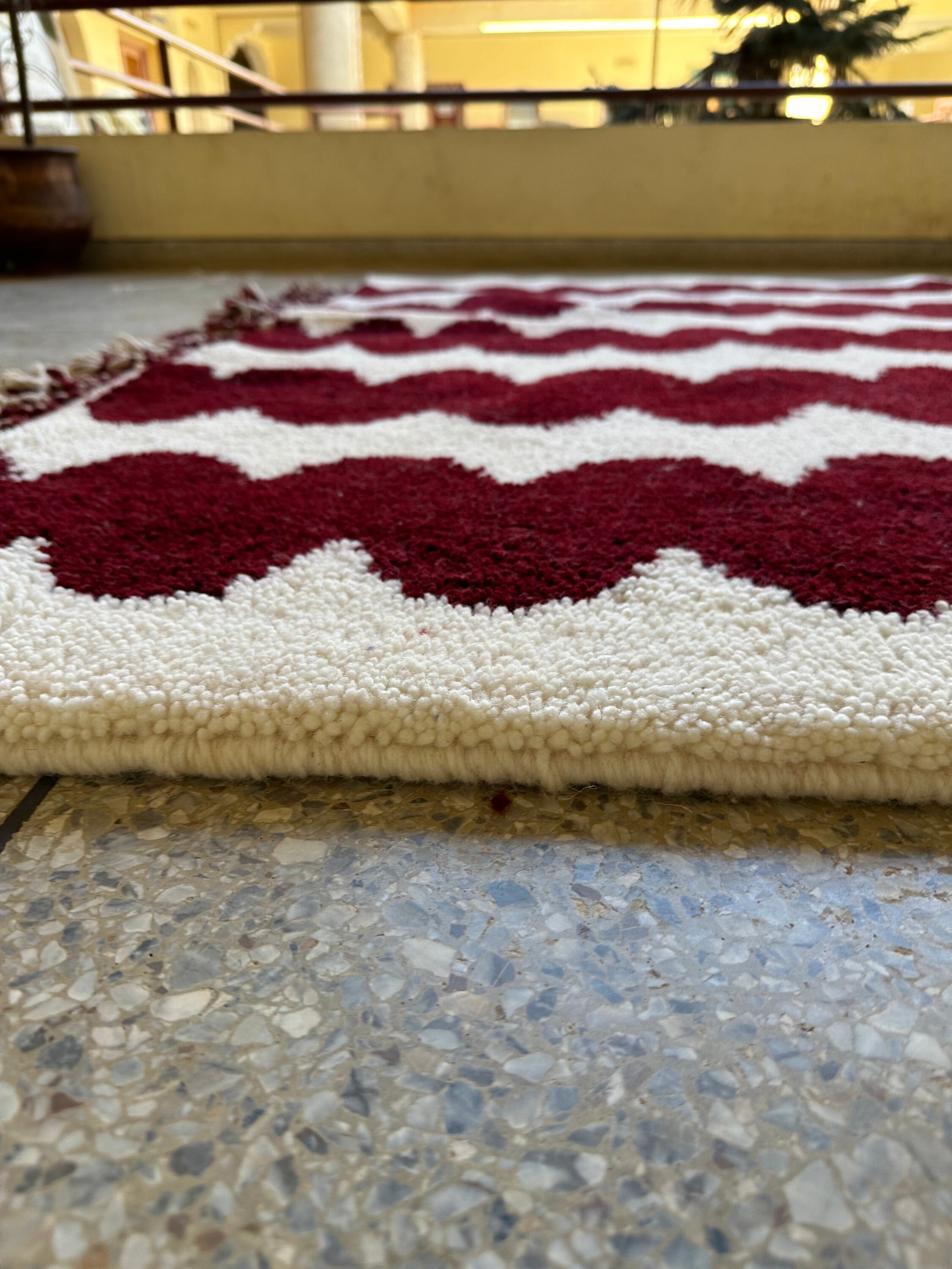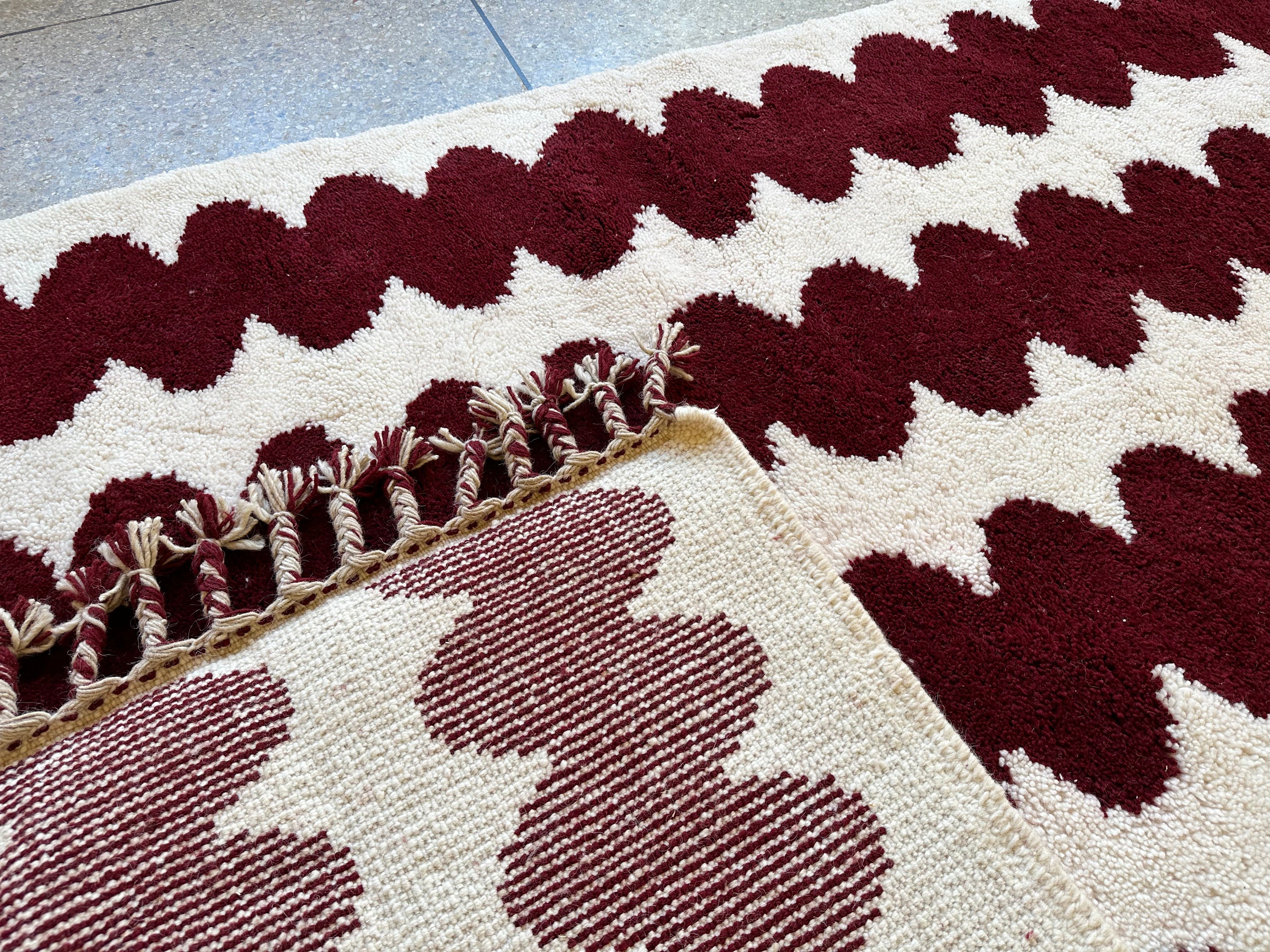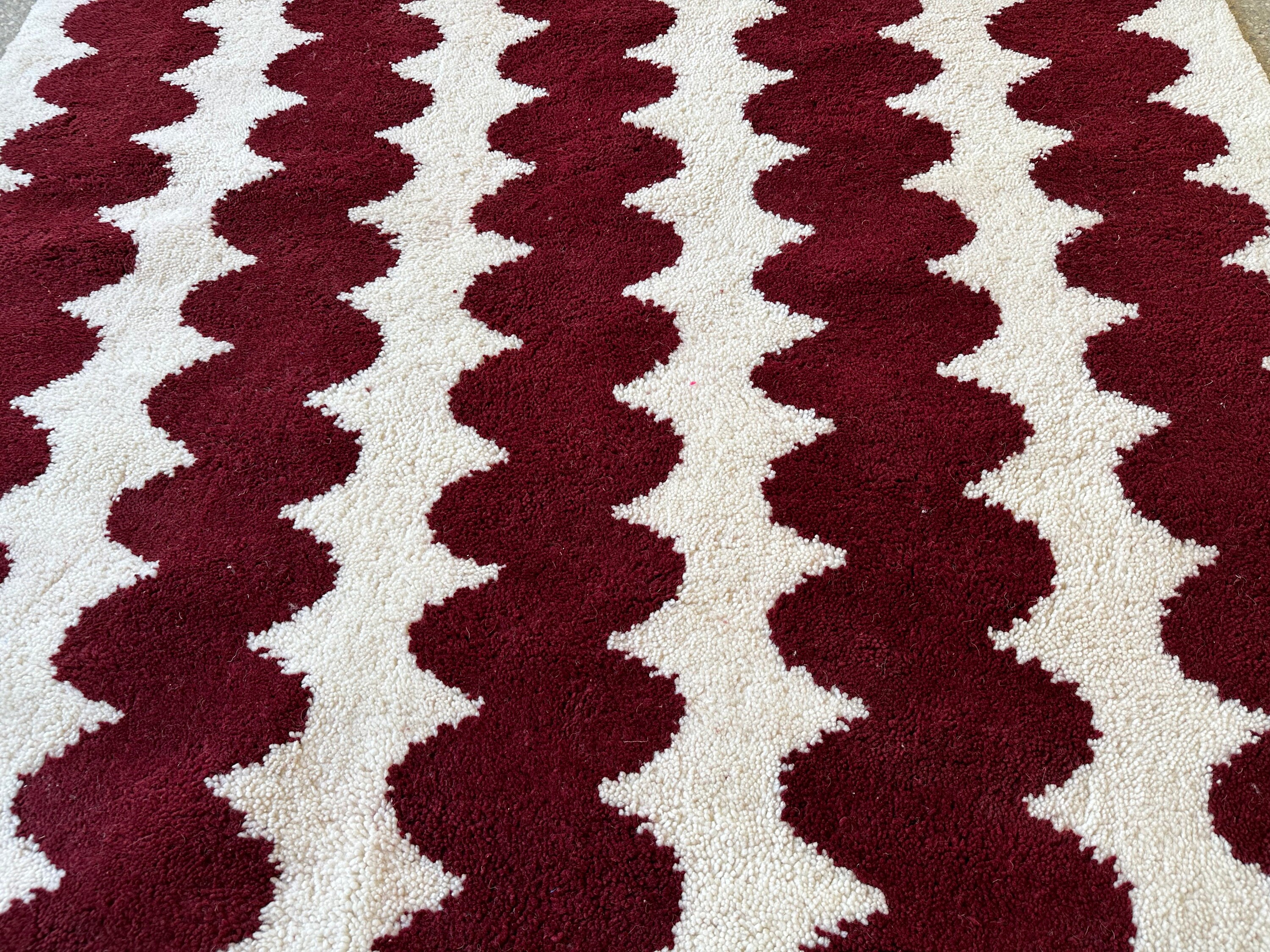Elevate your space with our stunning MODERN AREA RUG featuring a captivating Red & White Striped Design. Handwoven from natural wool, this Custom Moroccan Rug showcases the artistry of traditional Artisan-Crafted Berber Rugs. Perfect for adding warmth and elegance, it's a stylish choice for any room. Uniquely crafted, this Handwoven Beni Ourain Rug is more than just a carpet - it's a statement piece that ties your decor together. Transform your home with this exquisite blend of modern design and cultural heritage!