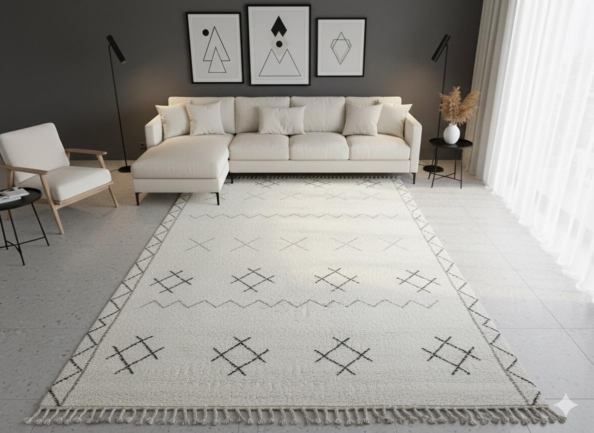 Versatile & Timeless Design: With their minimalist, geometric diamond patterns and natural colors, Beni Ourain rugs blend seamlessly with Traditional, Bohemian, Minimalist, Modern, and Scandinavian styles.