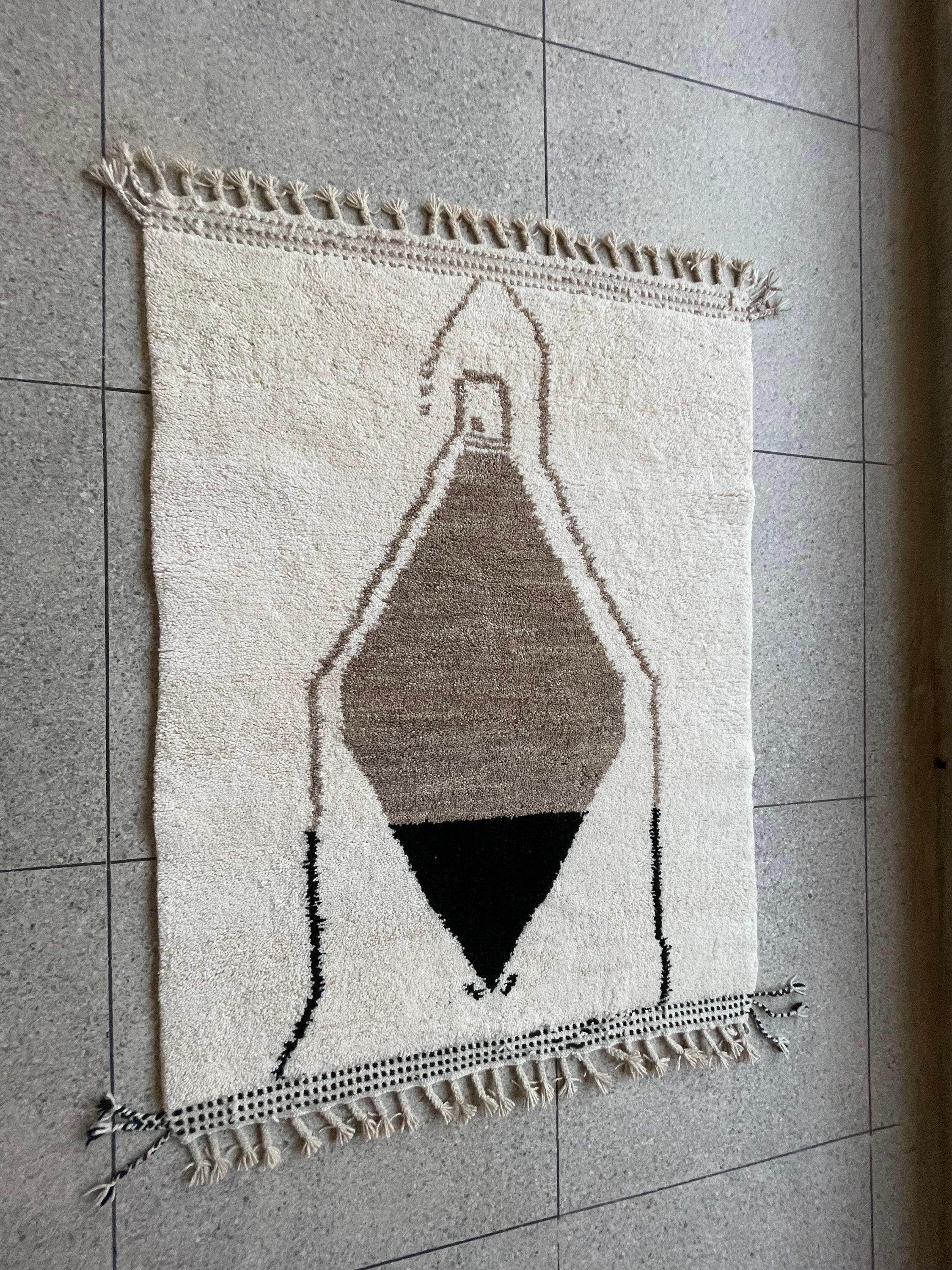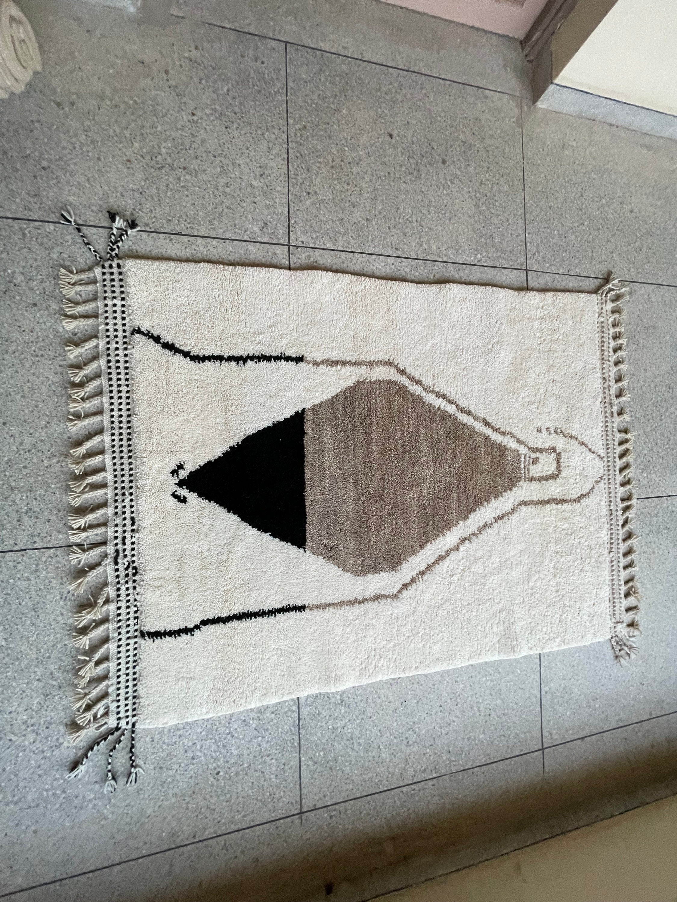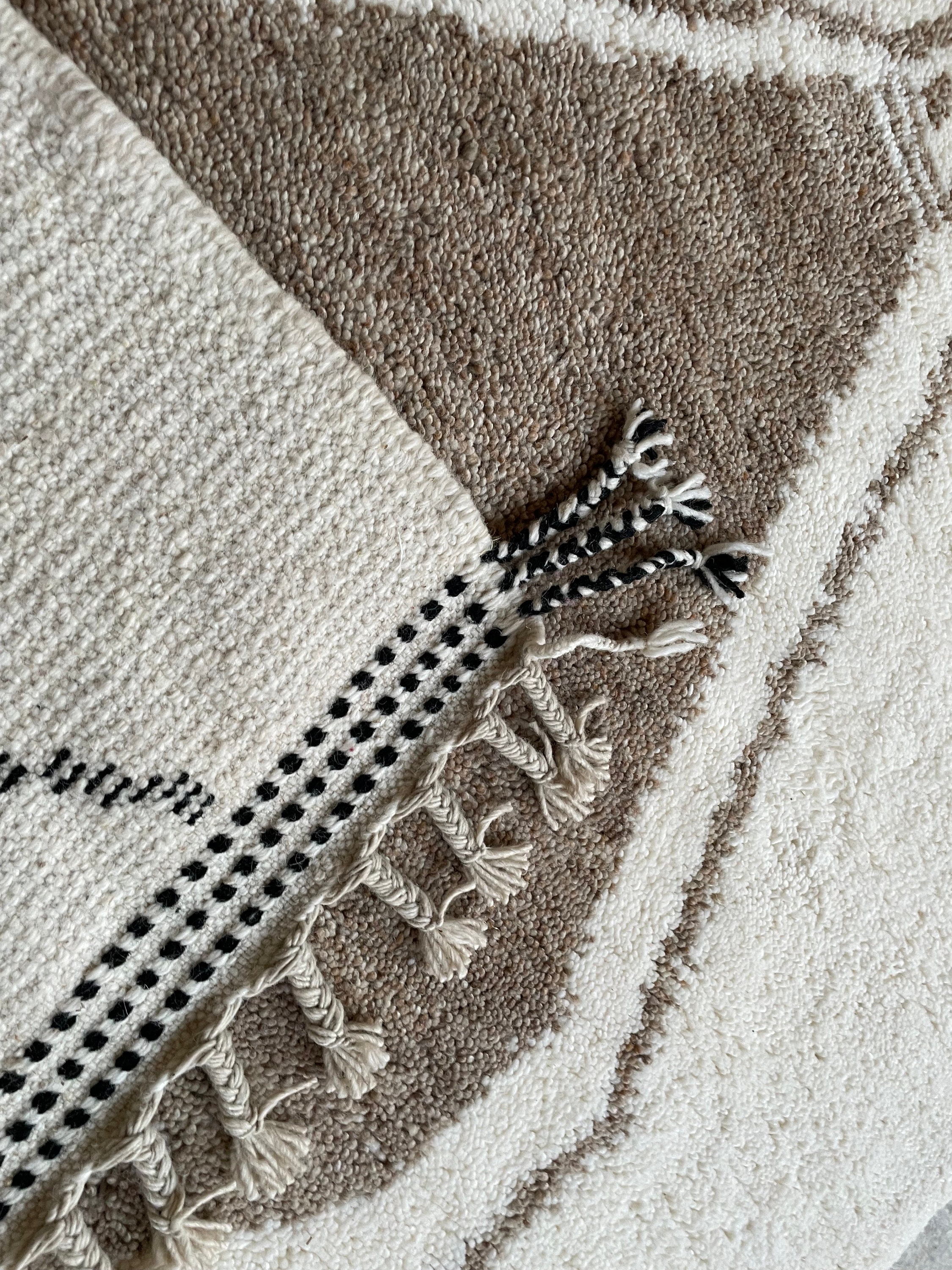 Bring warmth and elegance to your home with this handcrafted Moroccan Beni Ourain rug! Made from 100% natural sheep wool, this white and brown abstract design adds a sophisticated yet cozy touch to any space. Perfect for minimalist and bohemian interiors, its soft texture and timeless appeal make it a must-have statement piece for your living room, bedroom, or office. Elevate your decor with authentic Berber craftsmanship!
