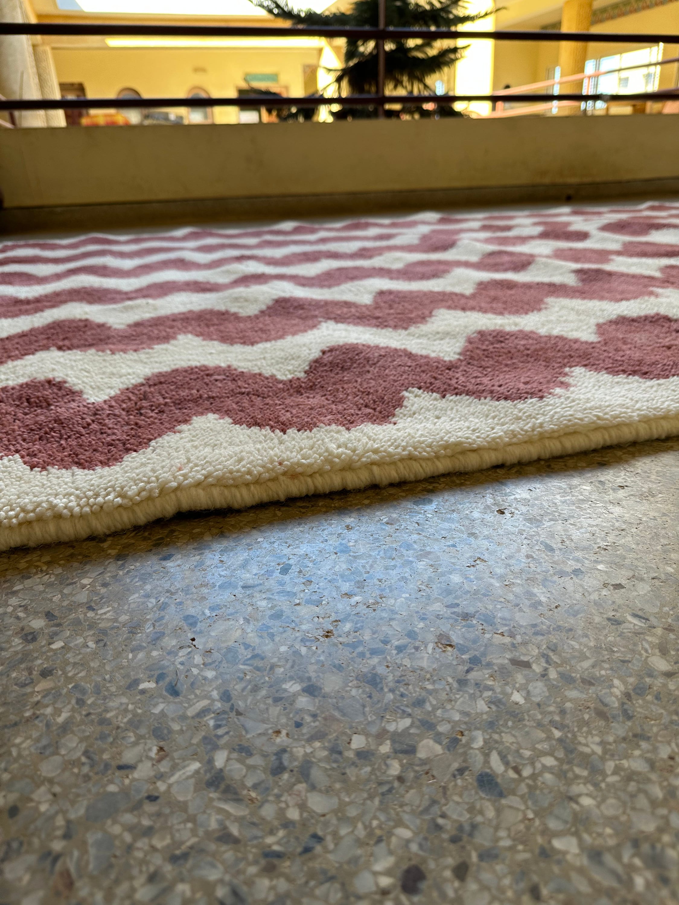 Add a touch of elegance to your space with this HANDMADE STRIPED RUG. Featuring a Personalized Moroccan Design in vibrant Pink & White, this Berber Rug will add a pop of color and style to any room. Crafted with care, this Authentic Beni Ourain Area Rug is the perfect Decorative Floor Covering for your home.
