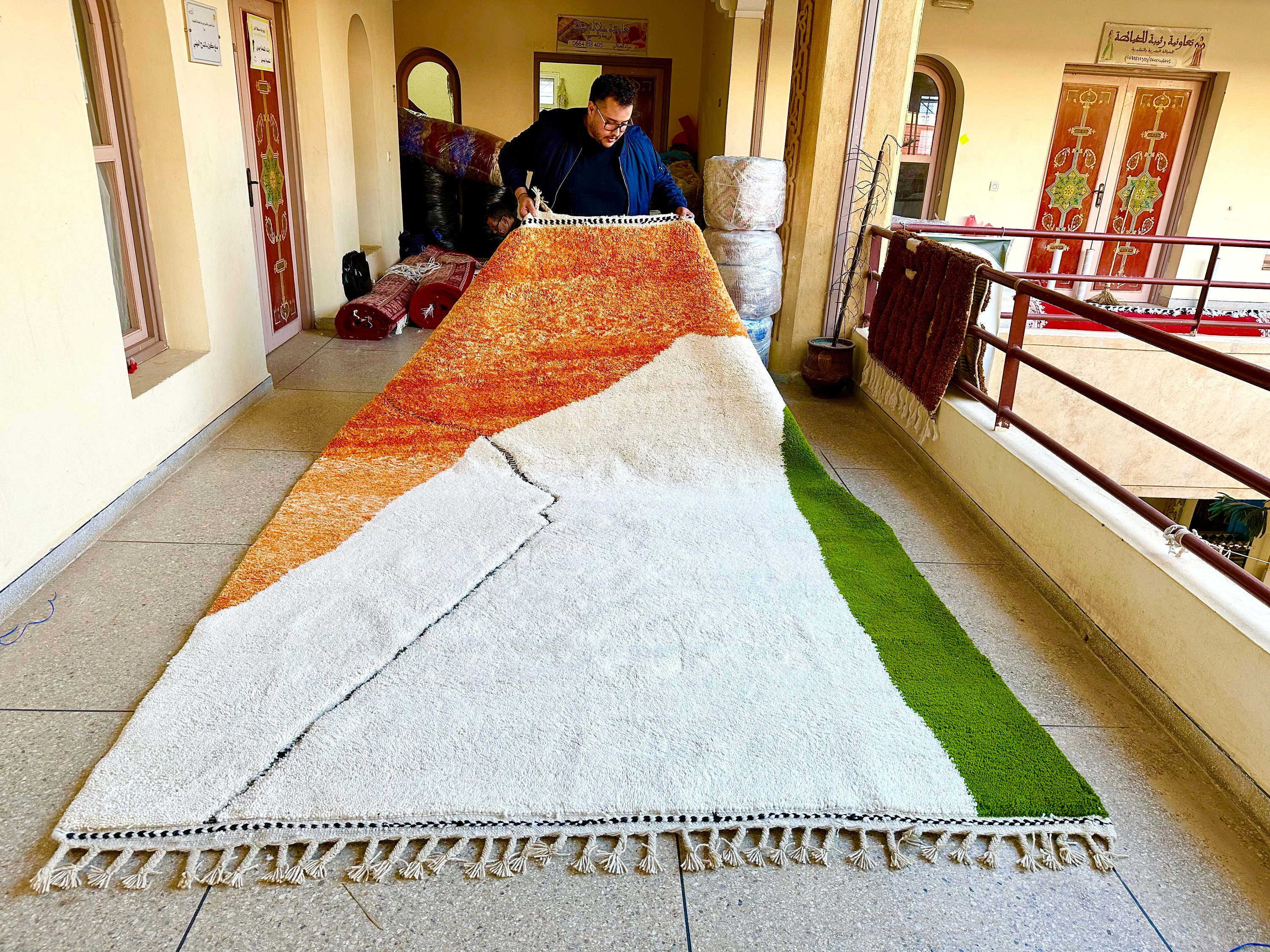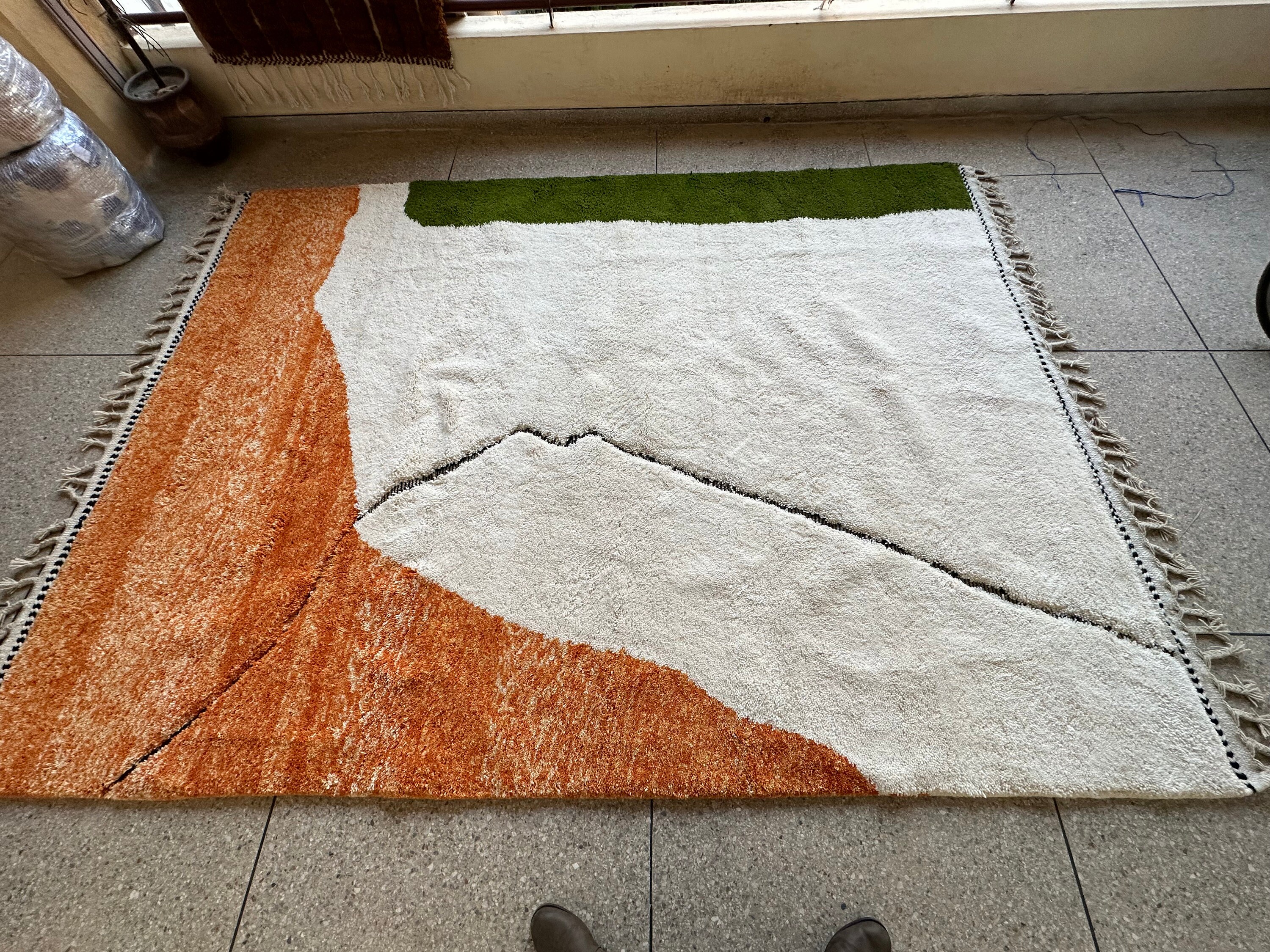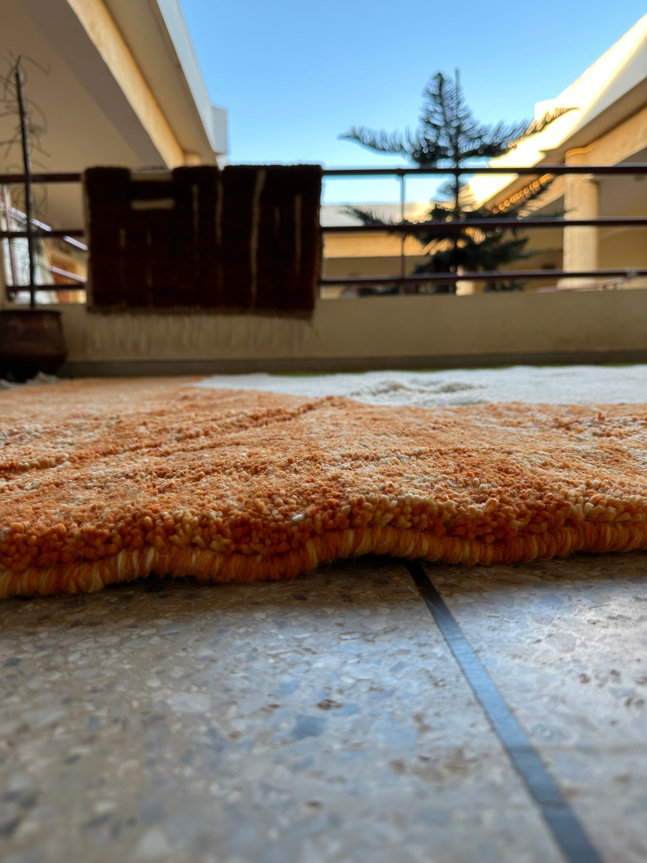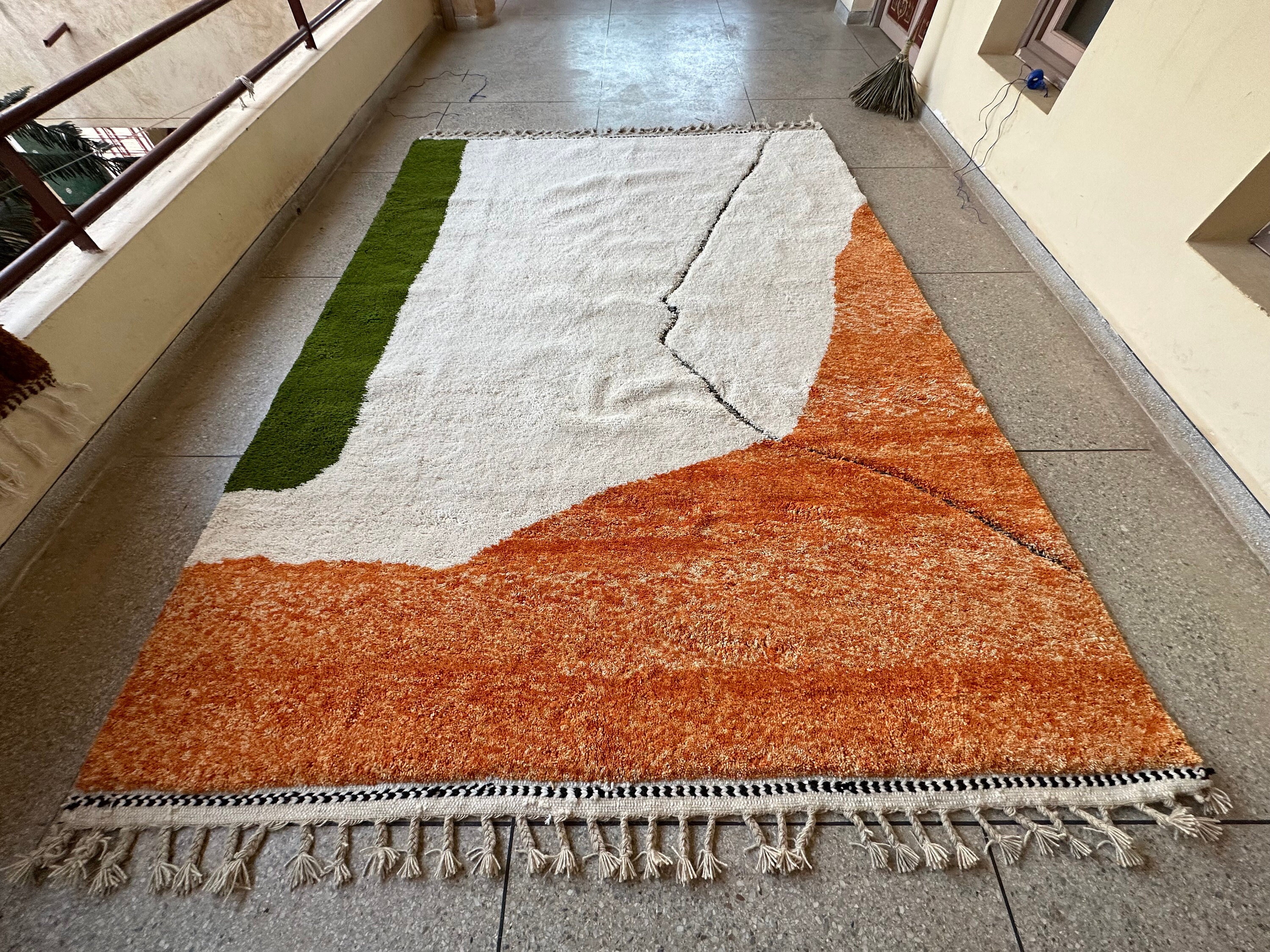 Transform your space with our stunning Moroccan Area Rug! This White & Orange Berber Rug is artisan-crafted, showcasing the traditional artistry of Beni Ourain weavings. Made from high-quality wool, this personalized wool rug features an eye-catching abstract design that adds a vibrant touch to any room. Perfect for living rooms, bedrooms, or as a chic accent piece. Elevate your home decor with this unique area rug that blends comfort and style effortlessly. Shop now and indulge in timeless elegance!