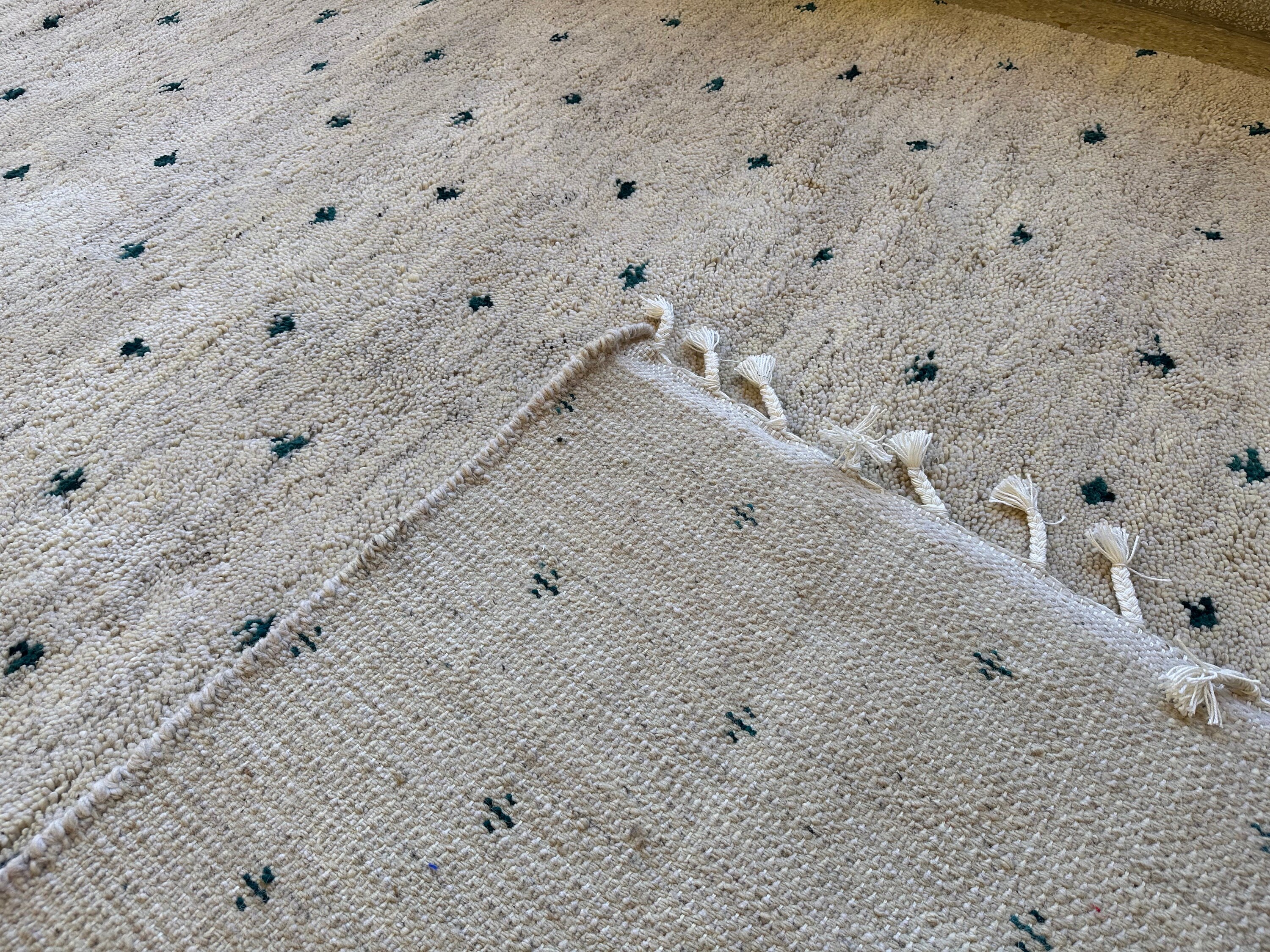 Transform your space with our stunning Dotted Berber Carpet, a handmade Beni Ourain rug that effortlessly combines style and comfort. This soft, shaggy Moroccan rug features a unique green polka dot design, perfect for adding a pop of color to any room. Crafted from high-quality wool, it provides warmth and luxury underfoot. Plus, we offer custom sizes to fit your needs. Elevate your home decor with this beautiful and functional piece! Order yours today and embrace the elegance of Moroccan textiles!