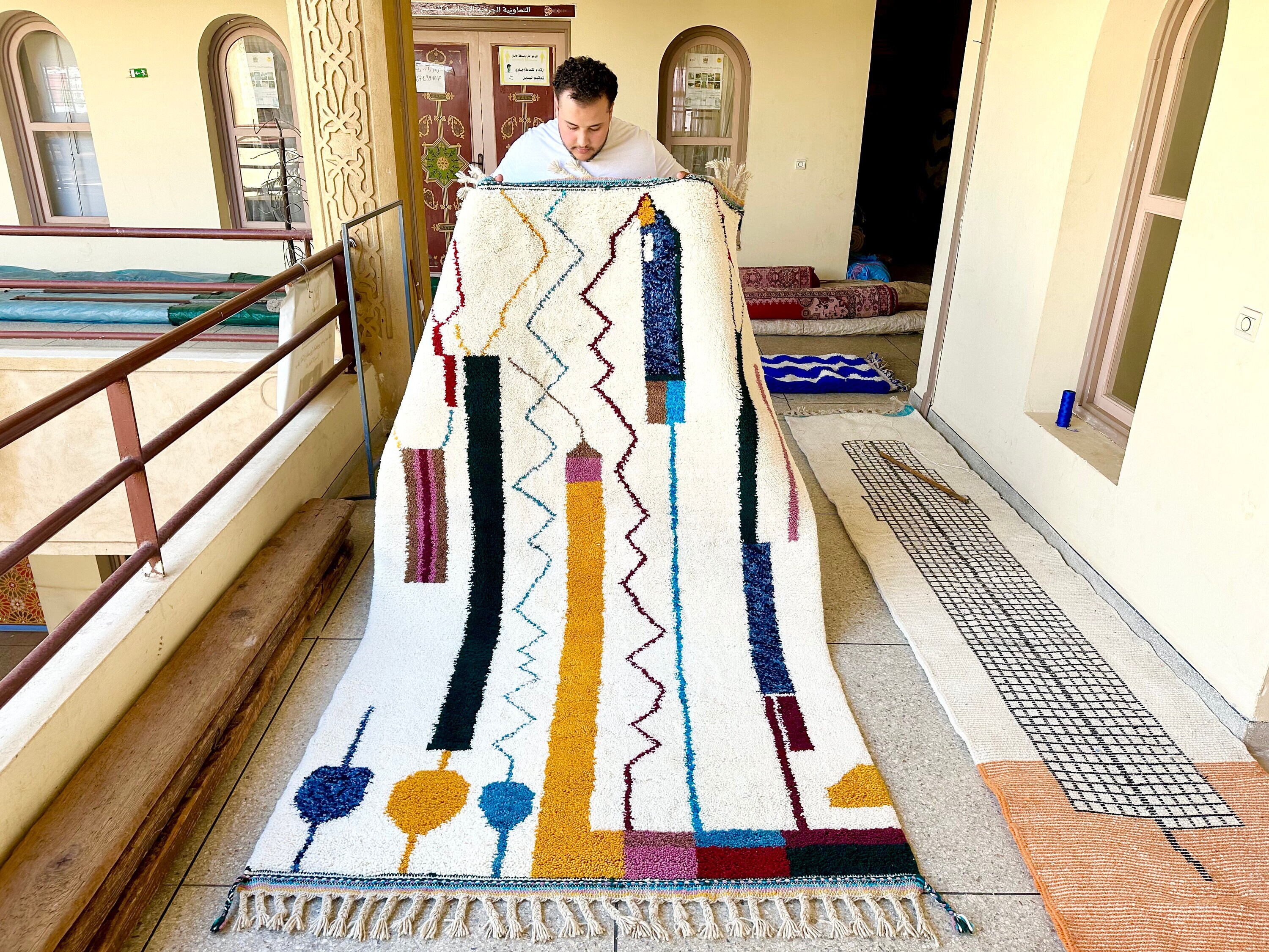 Experience the essence of Moroccan heritage with our 100% authentic Beni Ourain rugs, meticulously handcrafted by Berber artisans from the Atlas Mountains. Made from locally sourced, natural sheep wool, these rugs are both luxurious and eco-friendly, embodying a blend of comfort, elegance, and cultural richness. Their timeless designs and soft, plush texture make them an ideal choice for any home.