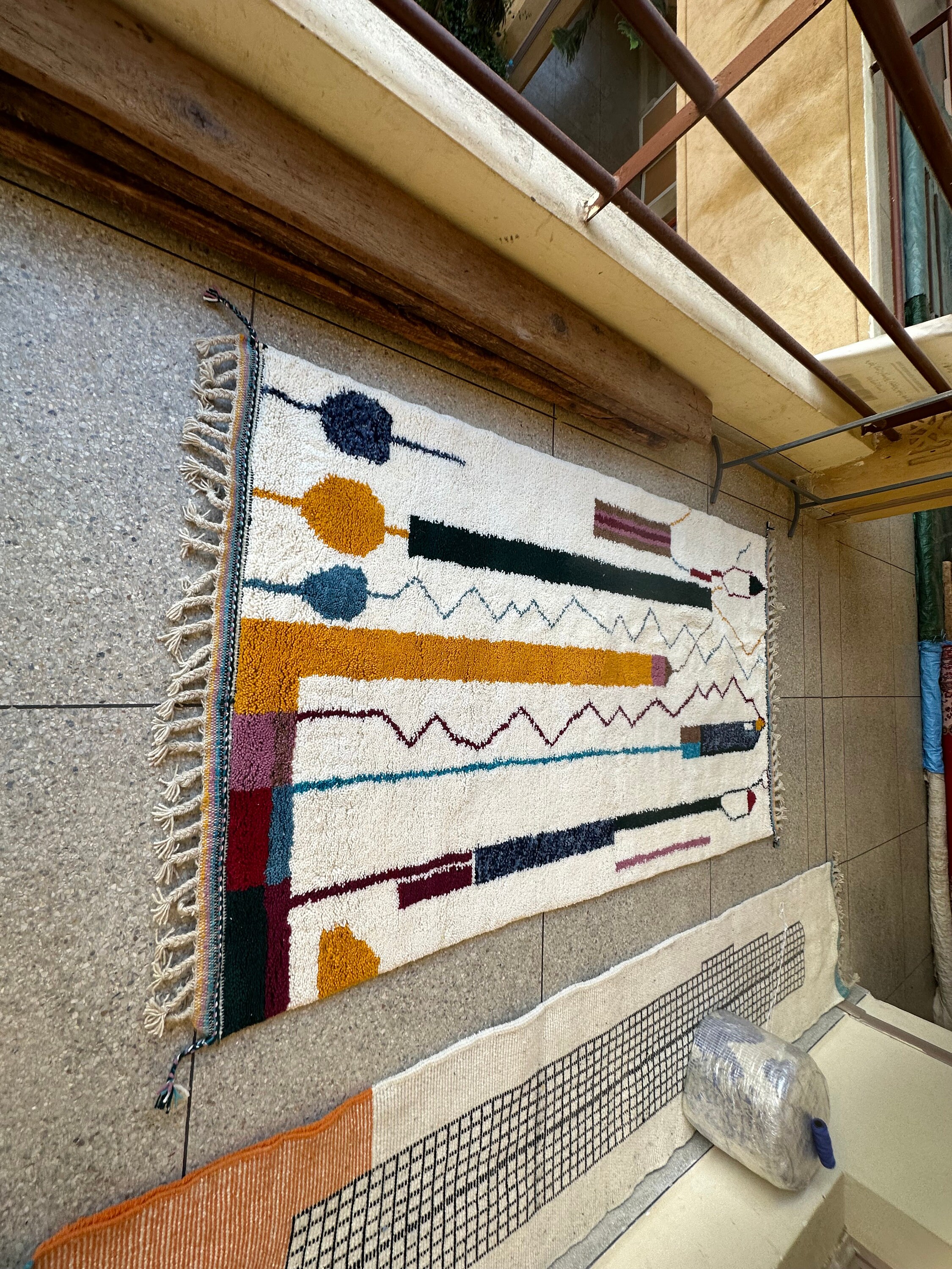 "Transform your home with a piece of Moroccan heritage that exudes both elegance and warmth 🌟. Whether placed under your sofa 🛋️, in your bedroom 🛏️, or even as a wall hanging 🖼️, these rugs invite a sense of history, style, and comfort 🧶✨. Explore our full collection of Beni Ourain, Azilal, and Boucherouite rugs for unique pieces that tell a story 📚💫."