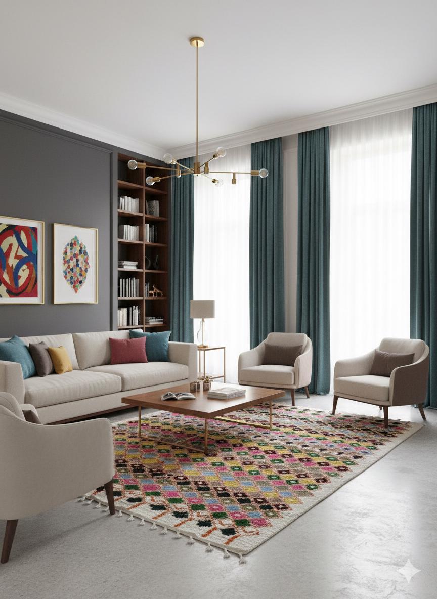 Versatile & Timeless Design: With their minimalist, geometric diamond patterns and natural colors, Beni Ourain rugs blend seamlessly with Traditional, Bohemian, Minimalist, Modern, and Scandinavian styles.