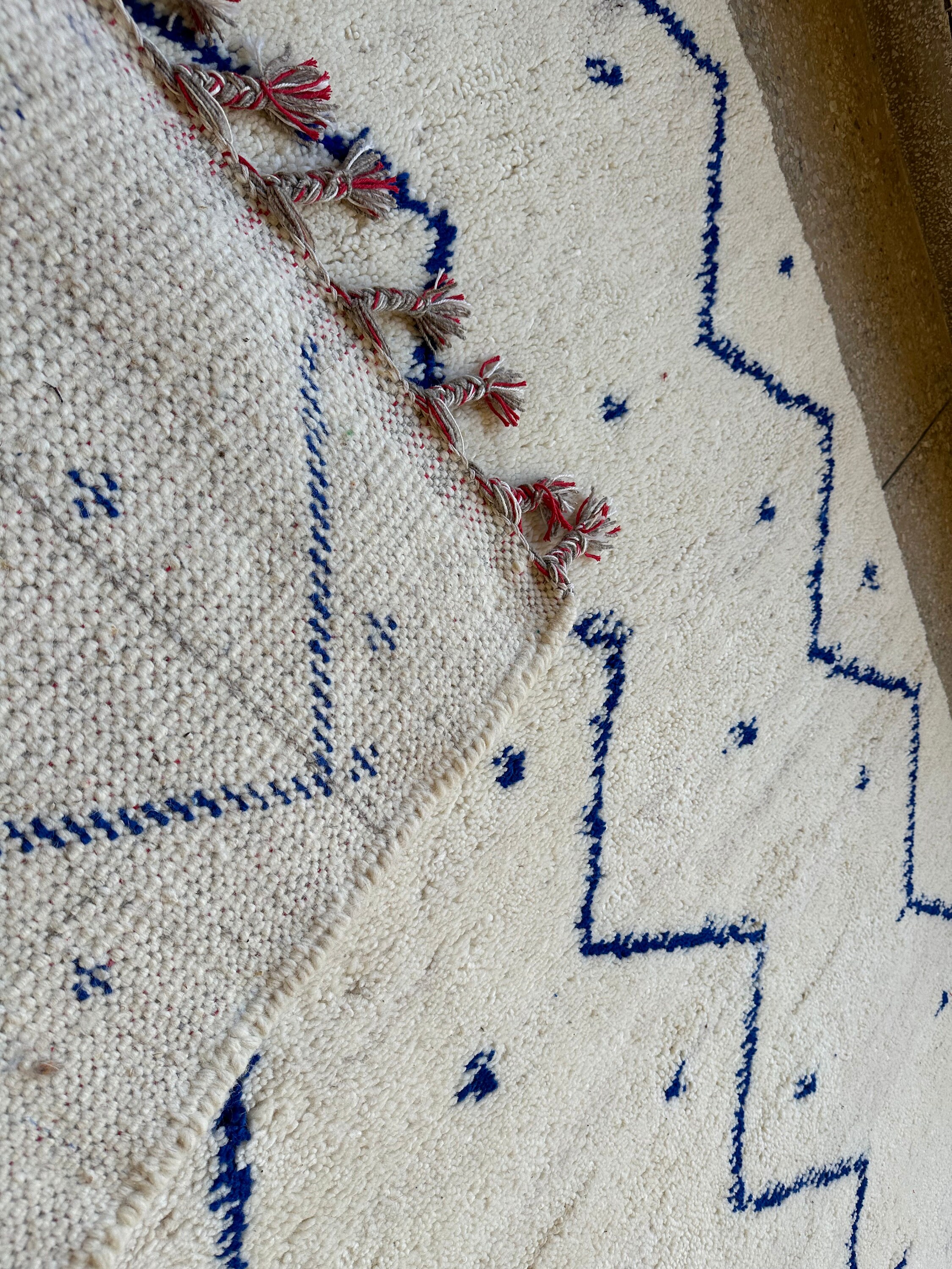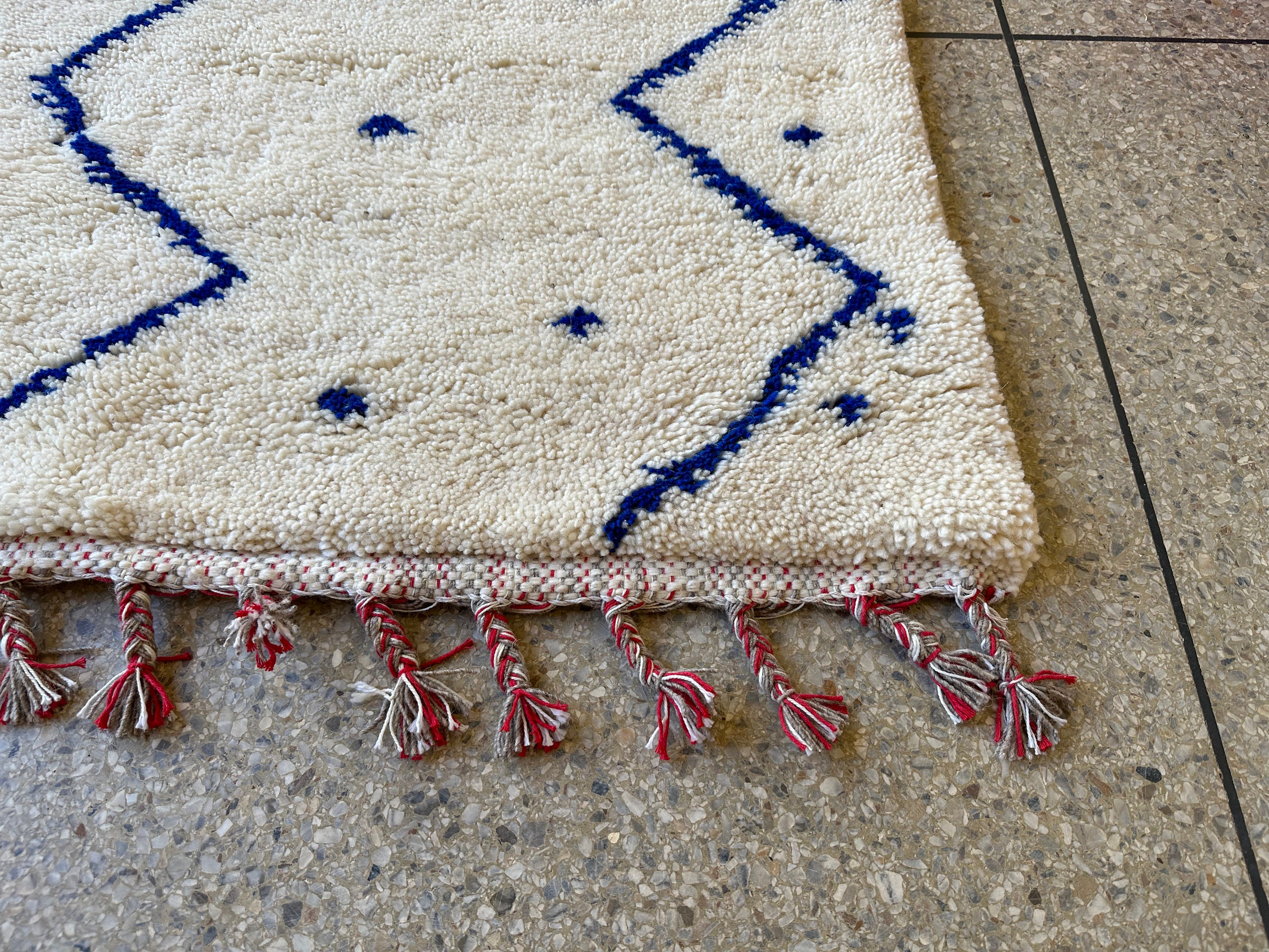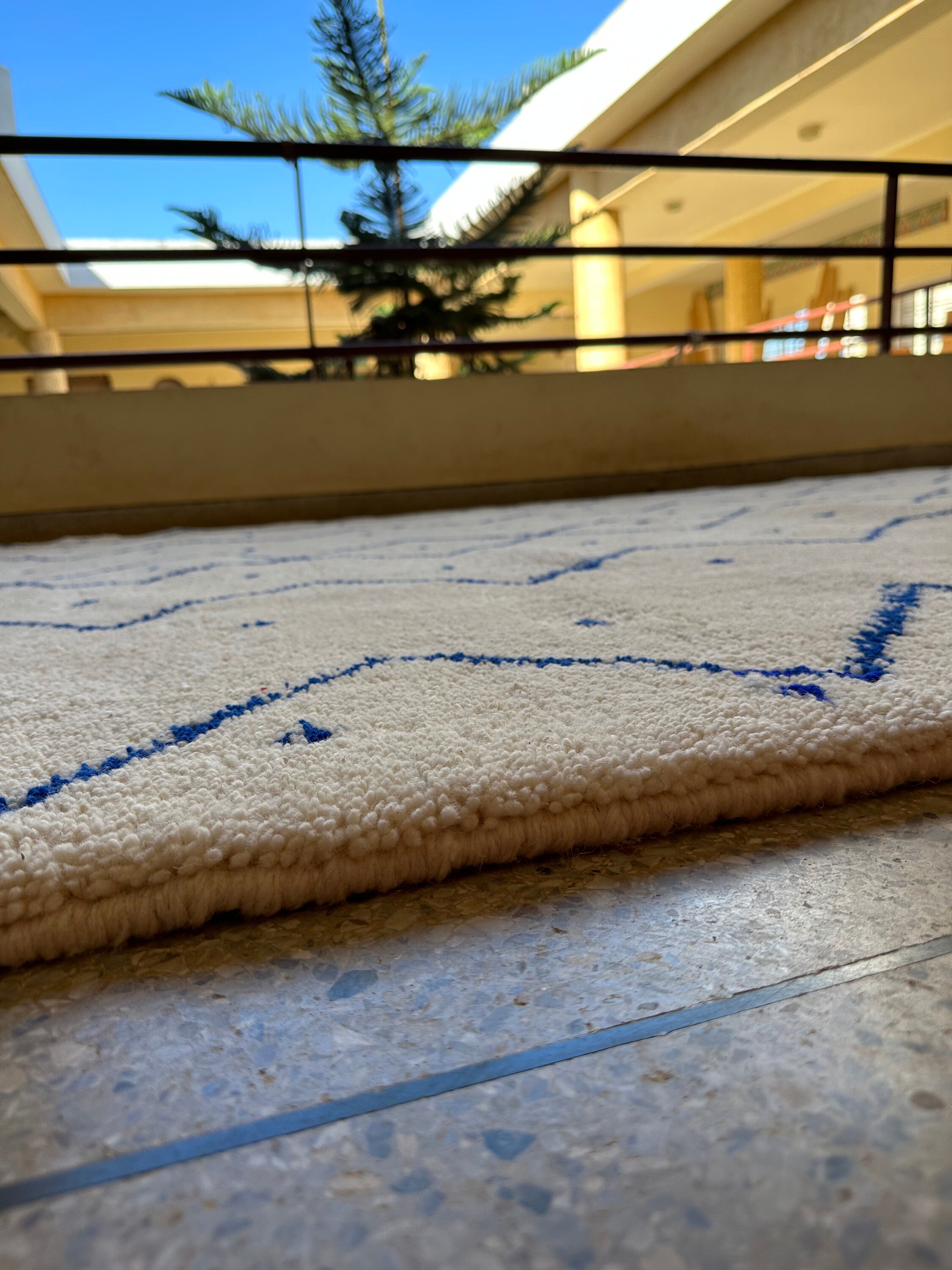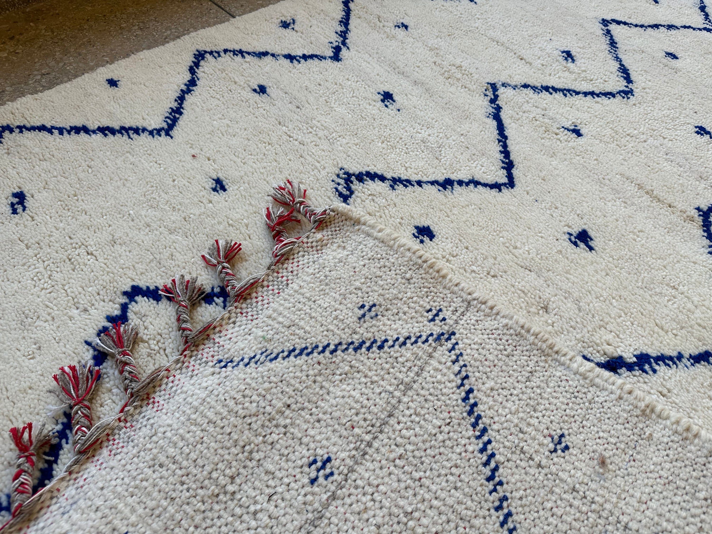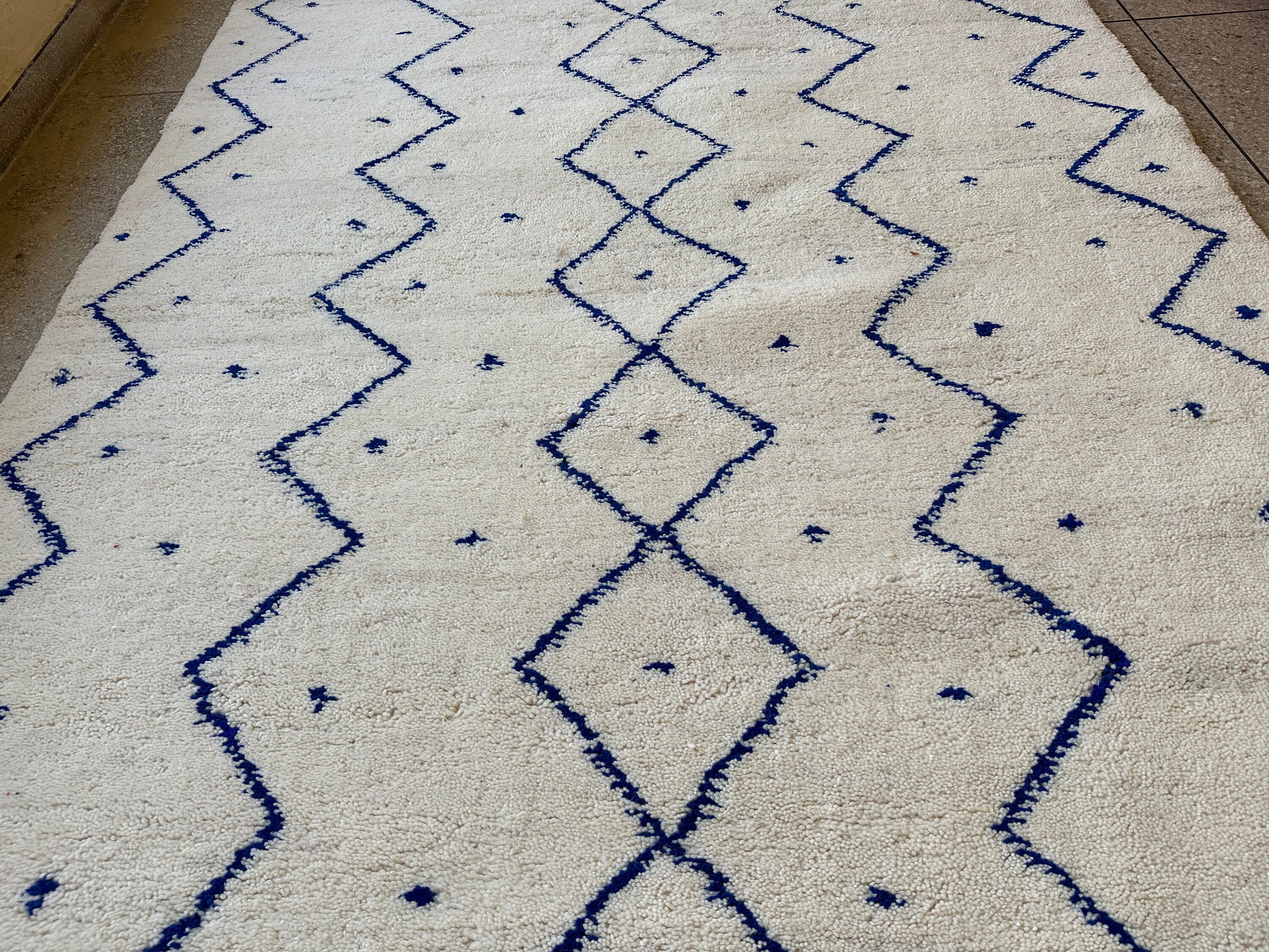 Transform your space with our exquisite BENI OURAIN CARPET, a stunning White and Blue Wool Moroccan Rug that embodies elegance. Perfect for modern minimalist interiors, this custom Beni Rug adds a touch of sophistication to any room. Crafted with care, each Berber Carpet is unique, offering warmth and style to your home. Elevate your decor and indulge in the luxury of this captivating area rug. Ideal for living rooms, bedrooms, or as a statement piece. Embrace the beauty of Moroccan craftsmanship!