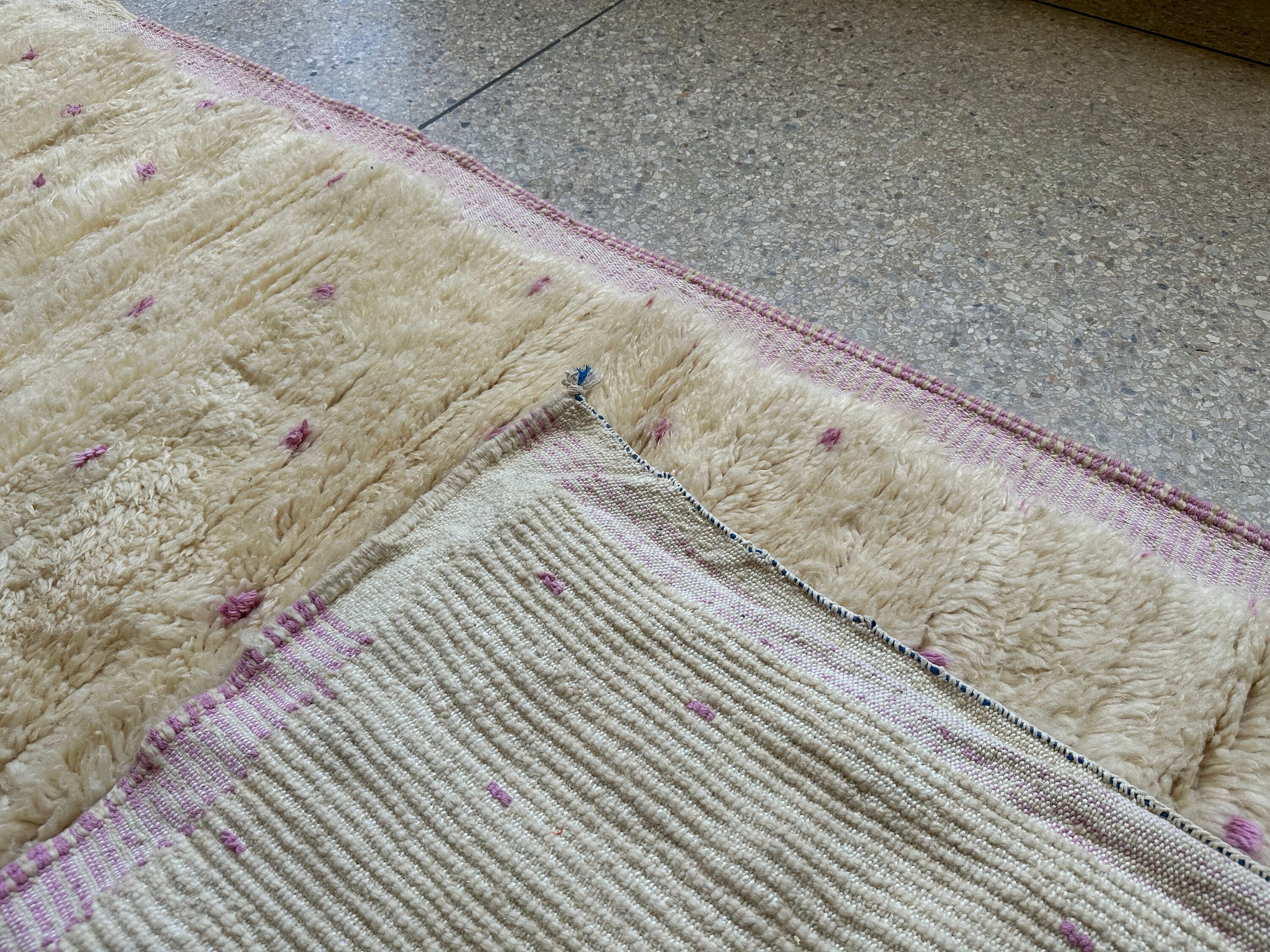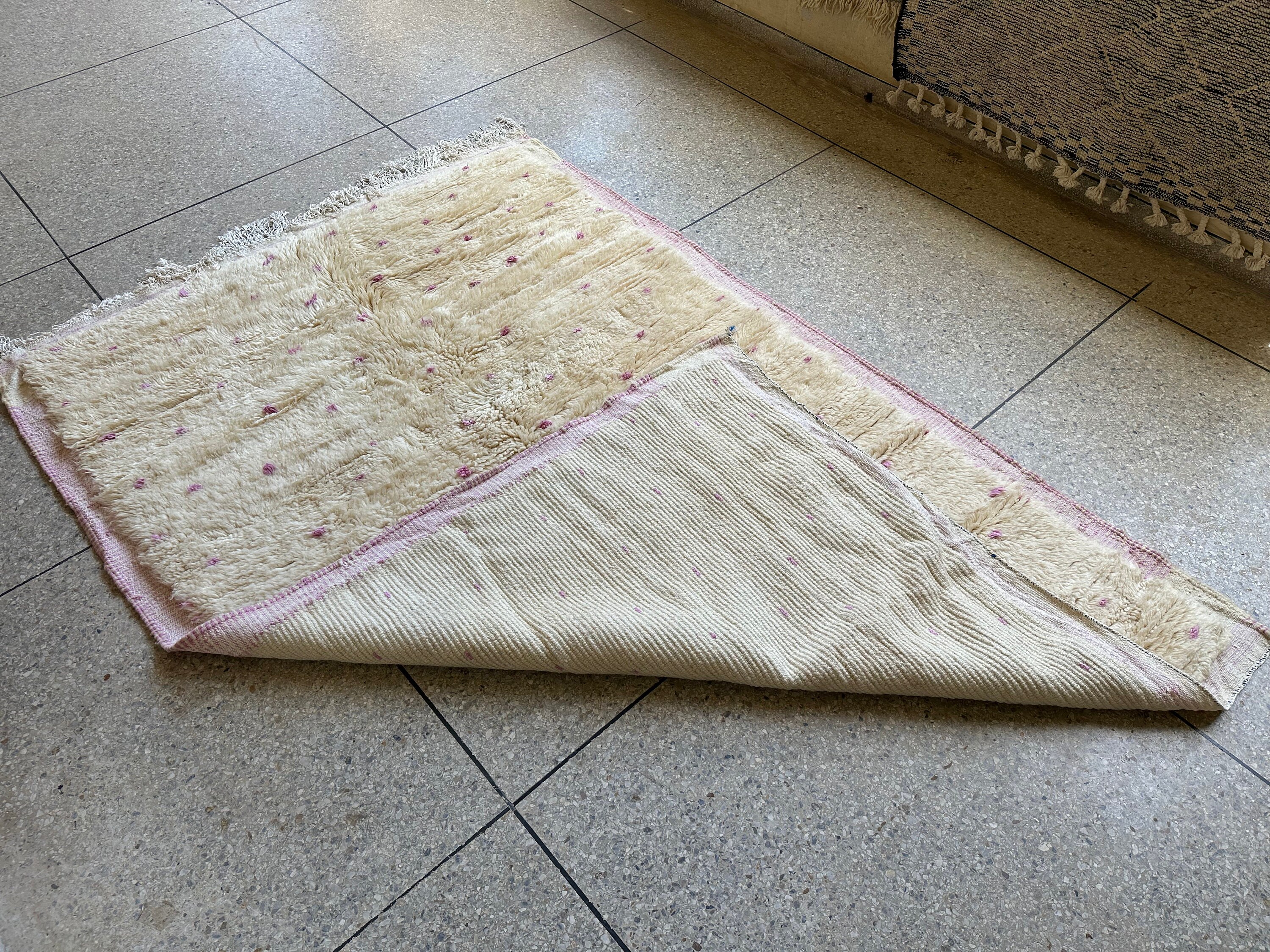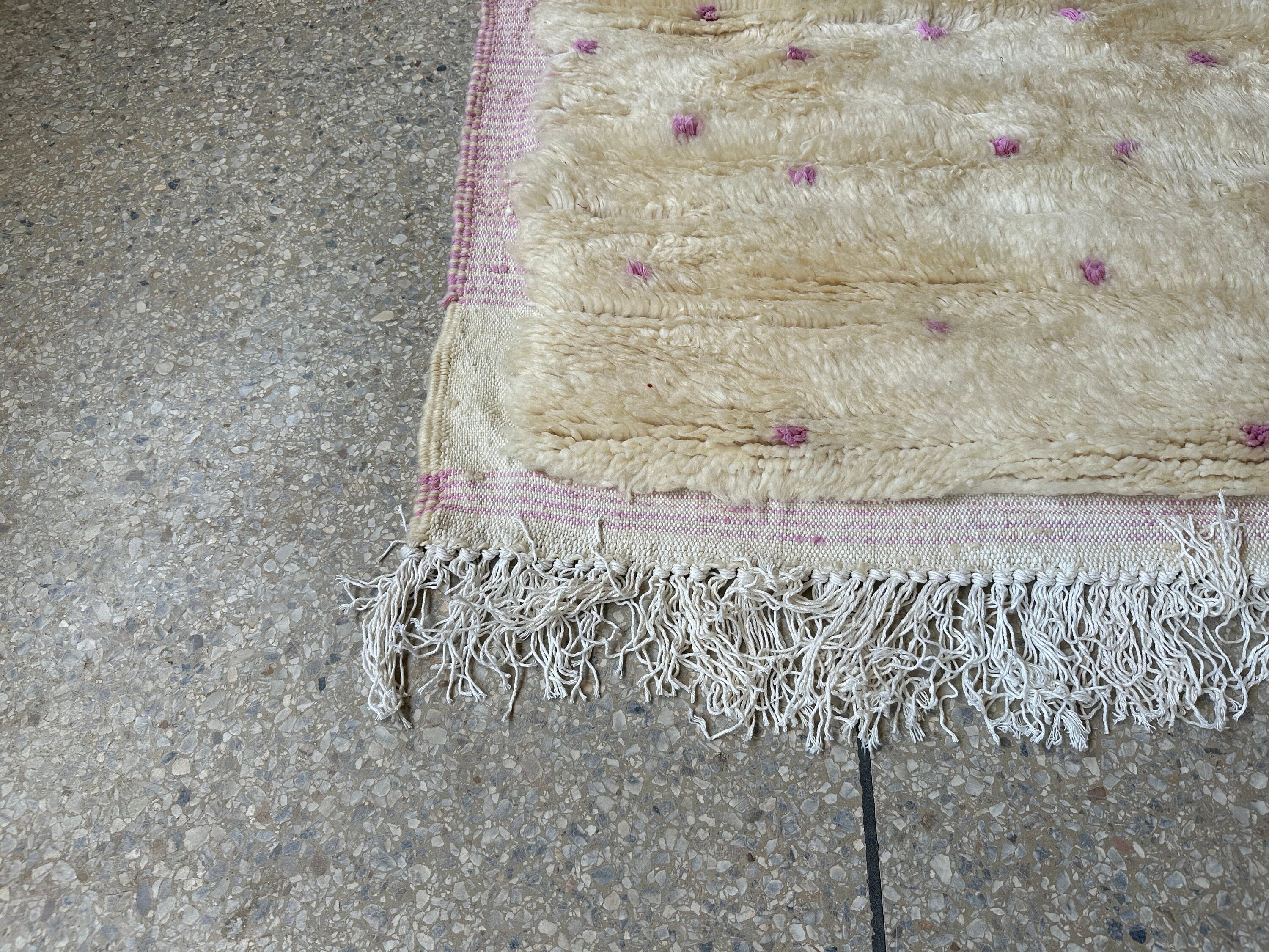 MAGNIFICENT 8X5 MOROCCAN RUG, Made To Order Carpet, Berber Beniourain Rug, White and Pink Rug, Handmade Rug, Dotted Rug, Wool Rug, Area Rug.