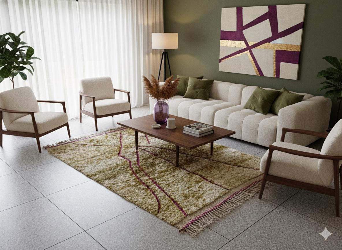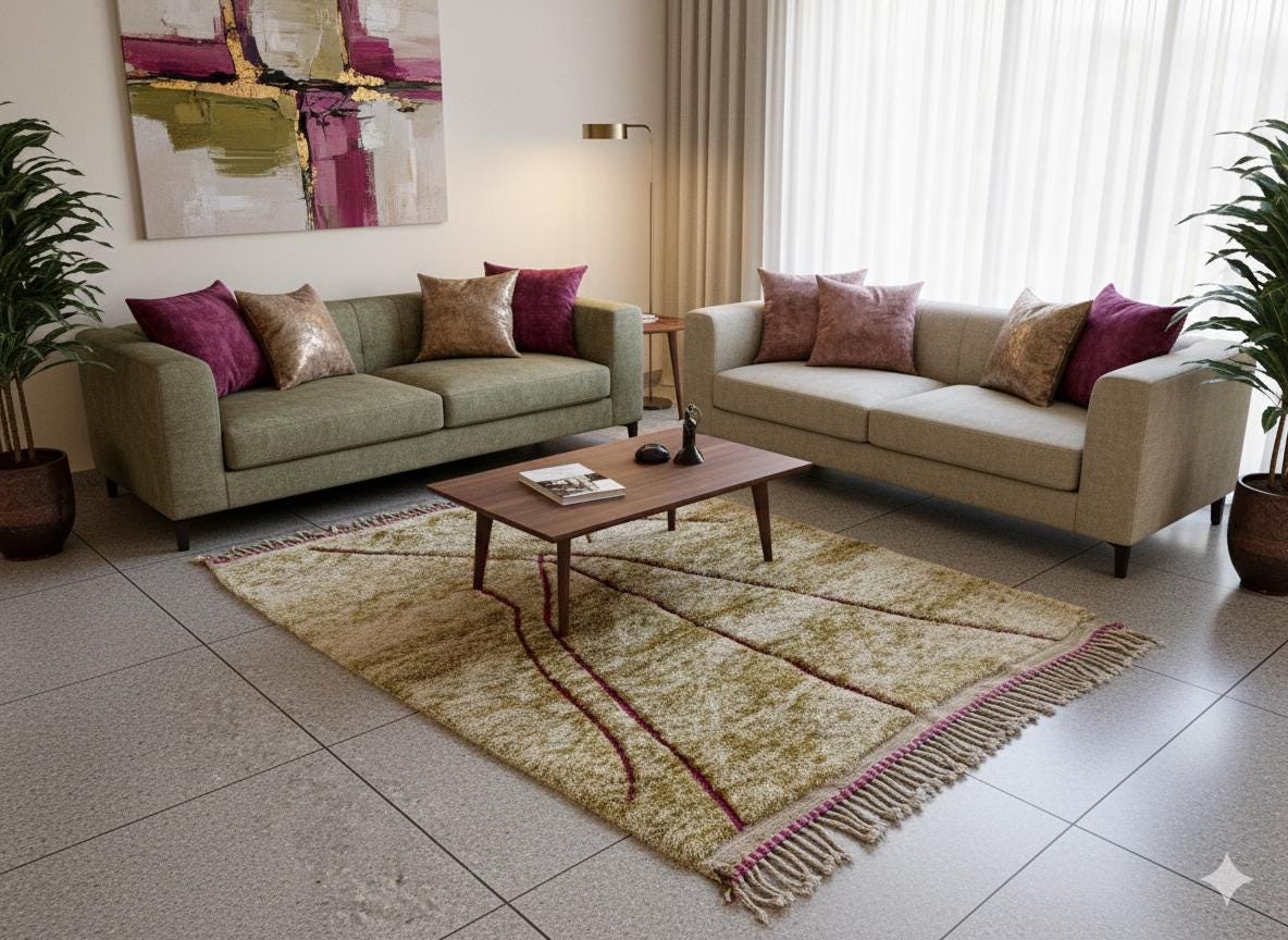 Elevate your space with our Hand Tufted Moroccan Rug, a stunning blend of green and pink hues. This Beni Ourain sheep wool rug brings boho chic style to any modern living room, serving as the perfect area rug to enhance your decor. Crafted with eco-friendly materials, it's not just a rug—it's an investment in sustainable home decor. Add a touch of elegance and warmth to your home with this unique piece. Perfect for those who appreciate quality and artisanal craftsmanship!