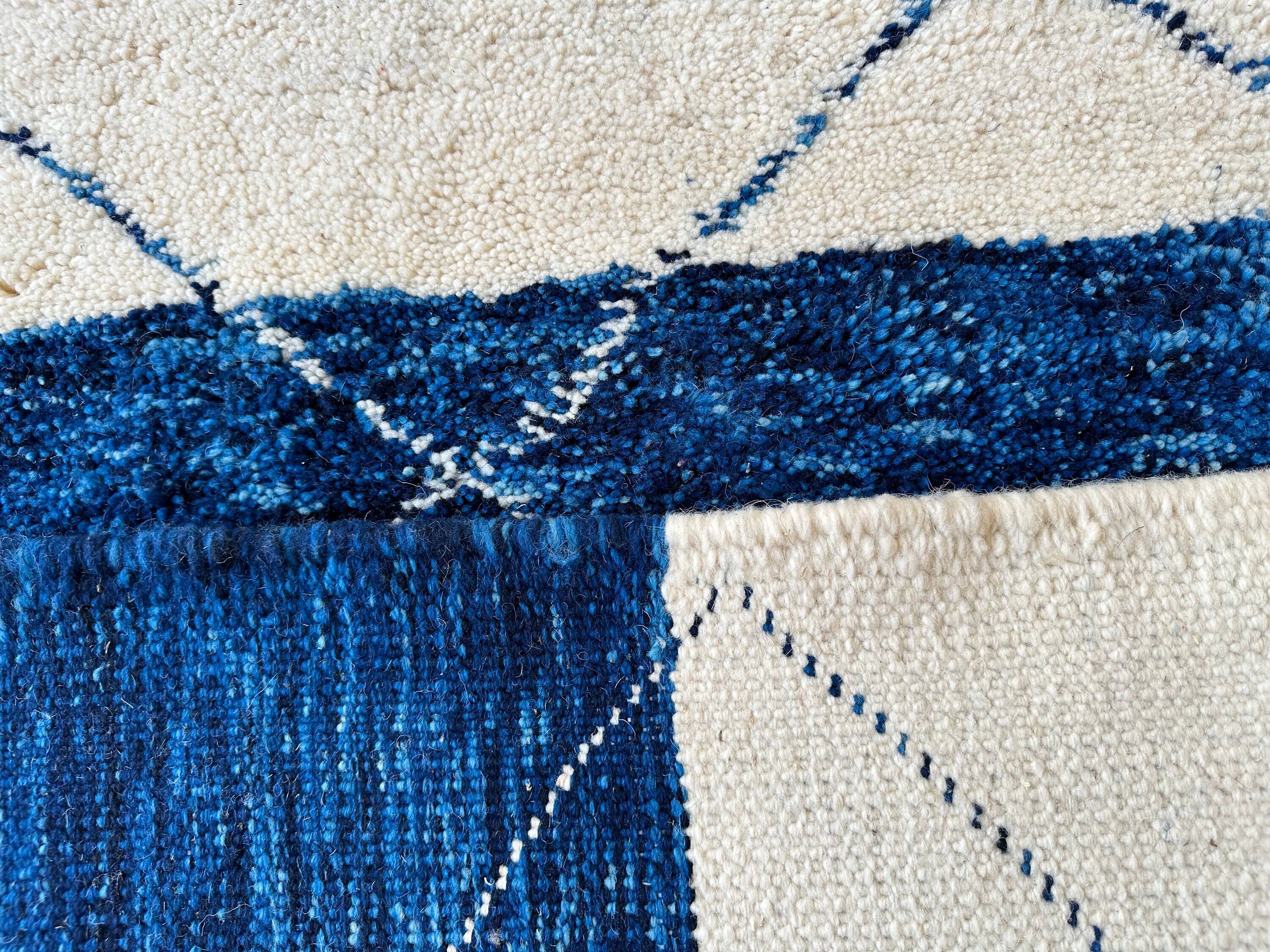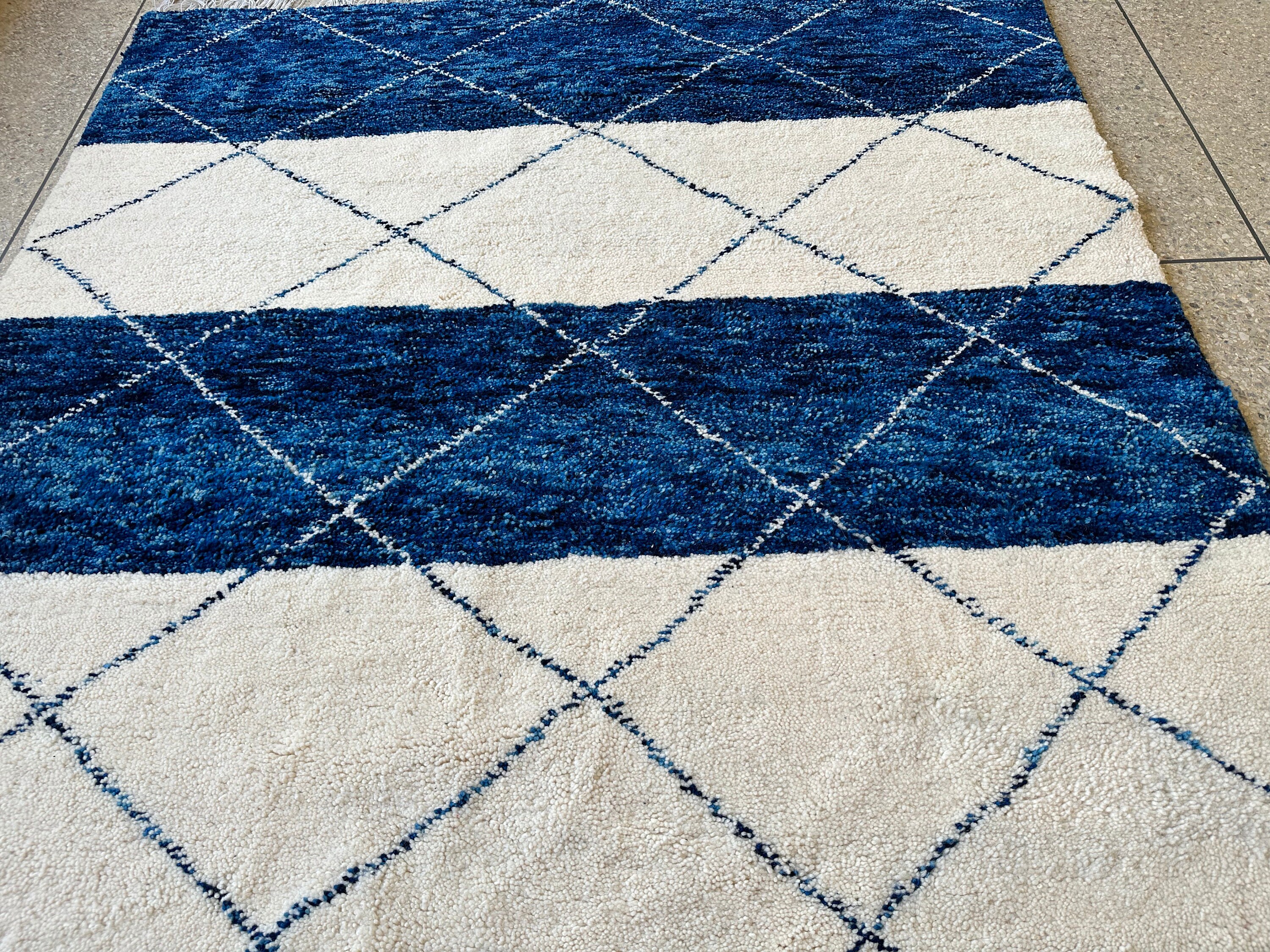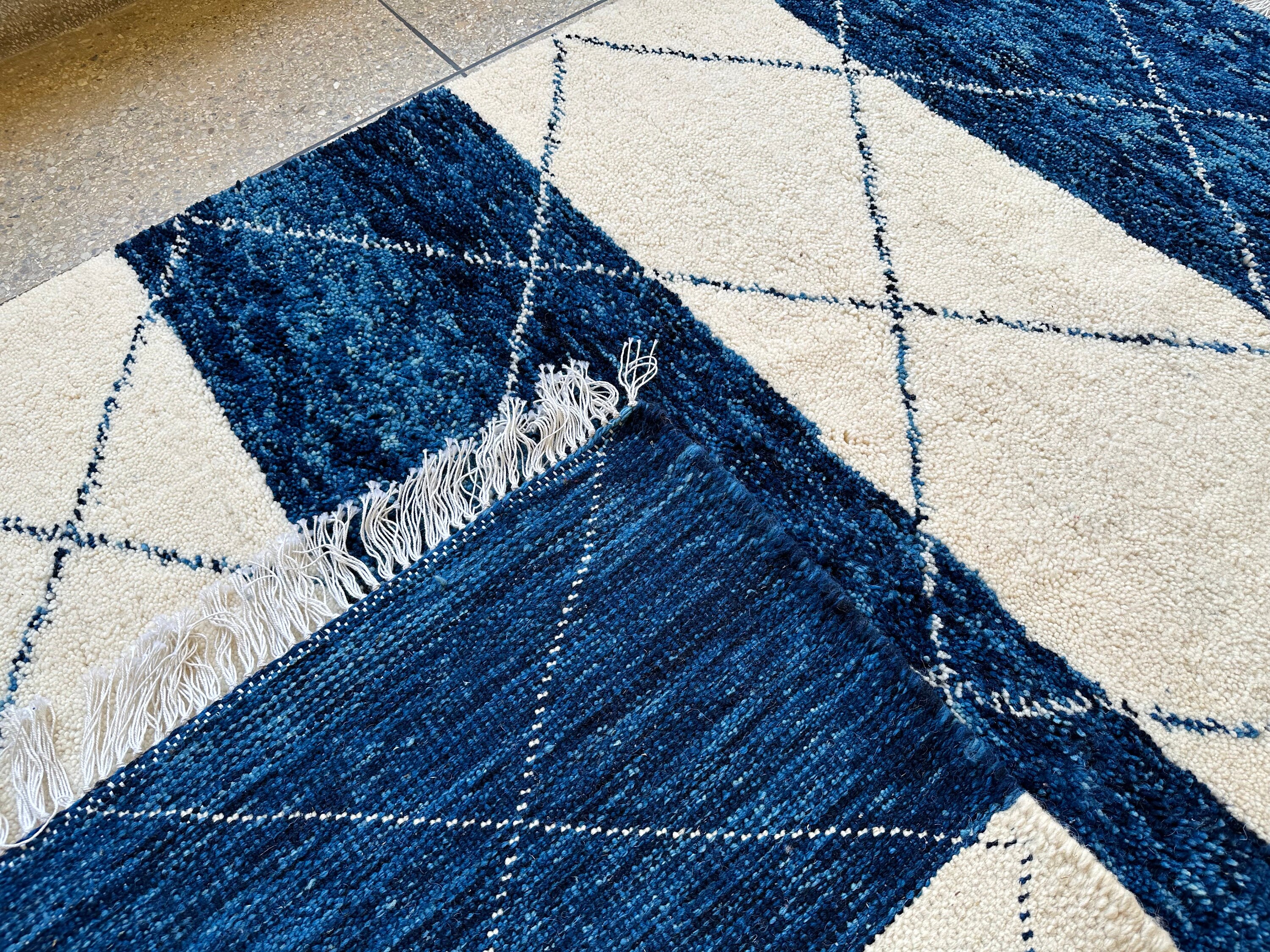 .CUSTOM BENIOURAIN RUG, Moroccan Berber Rug, Unique Blue and White Rug, Handmade Rug, Abstract Rug, Sheep Wool Rug, Handwoven Area Rug.
