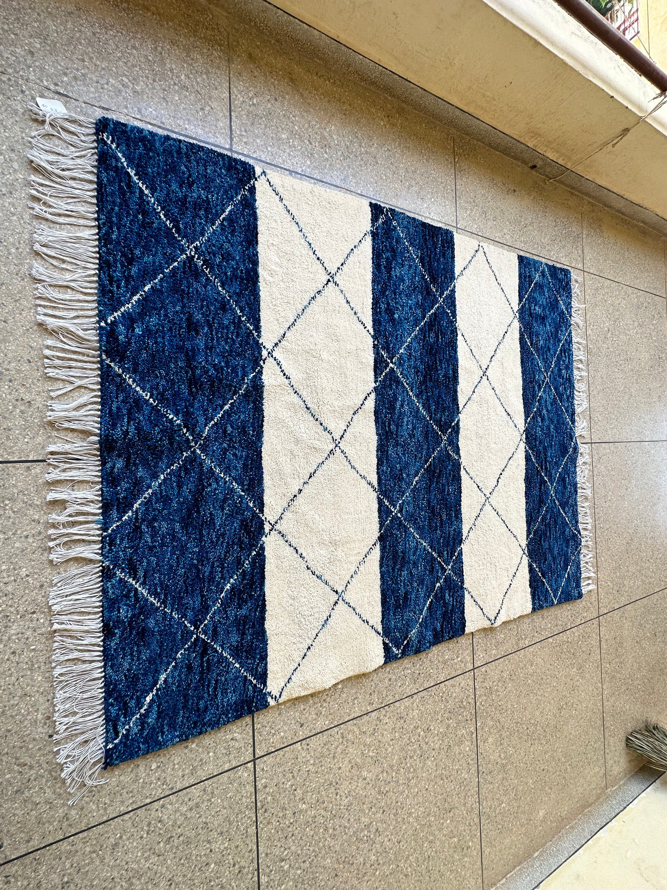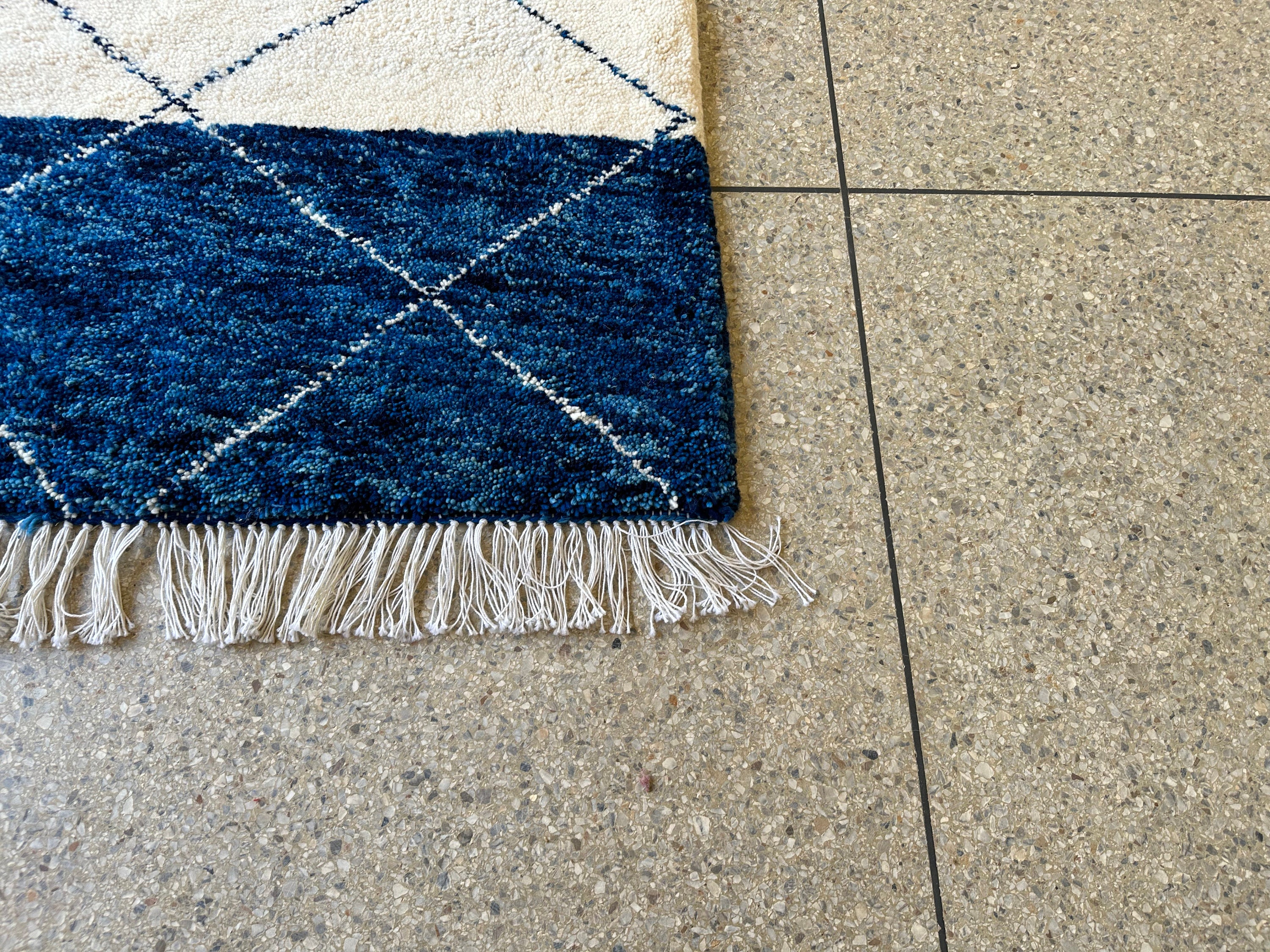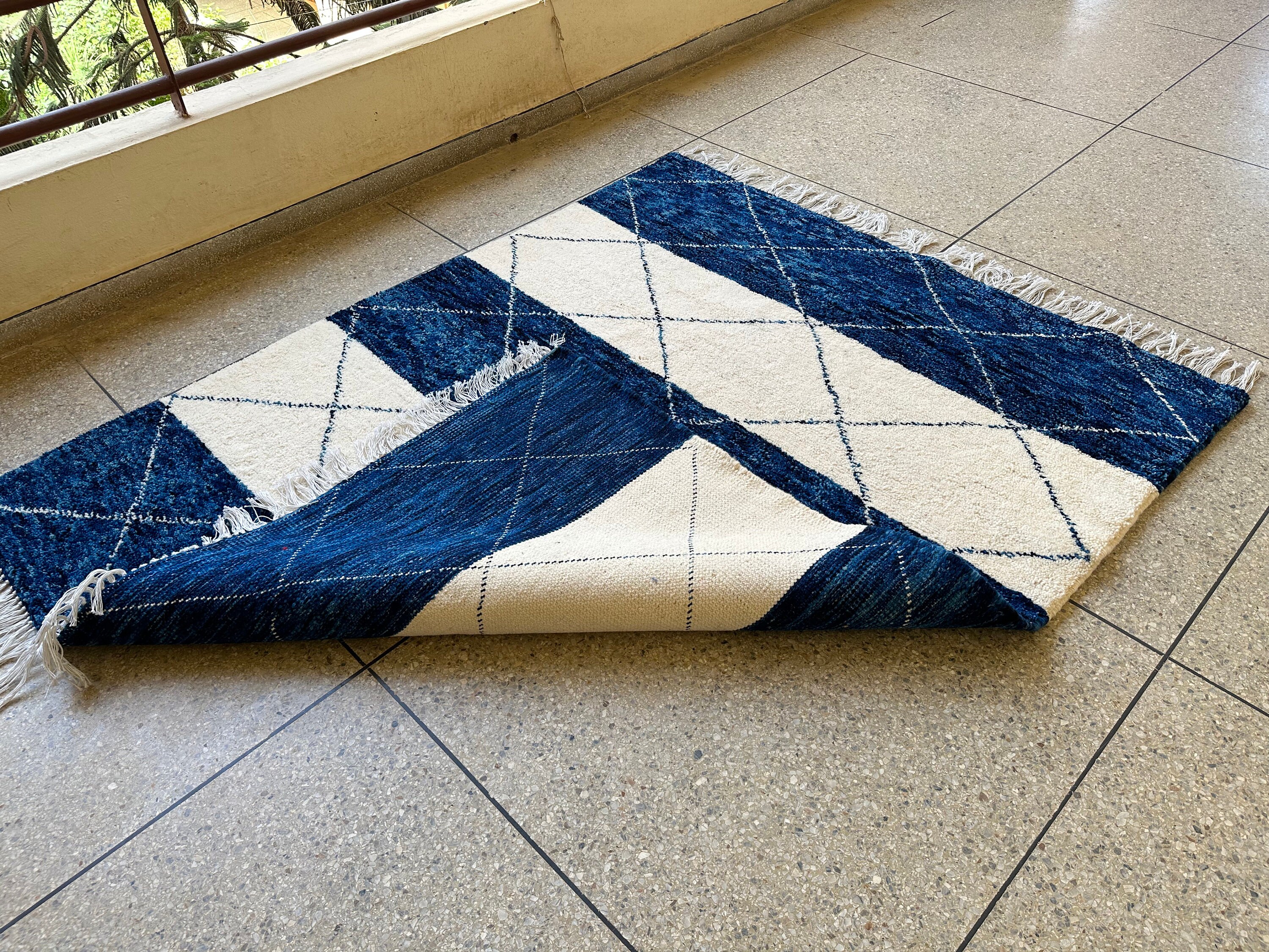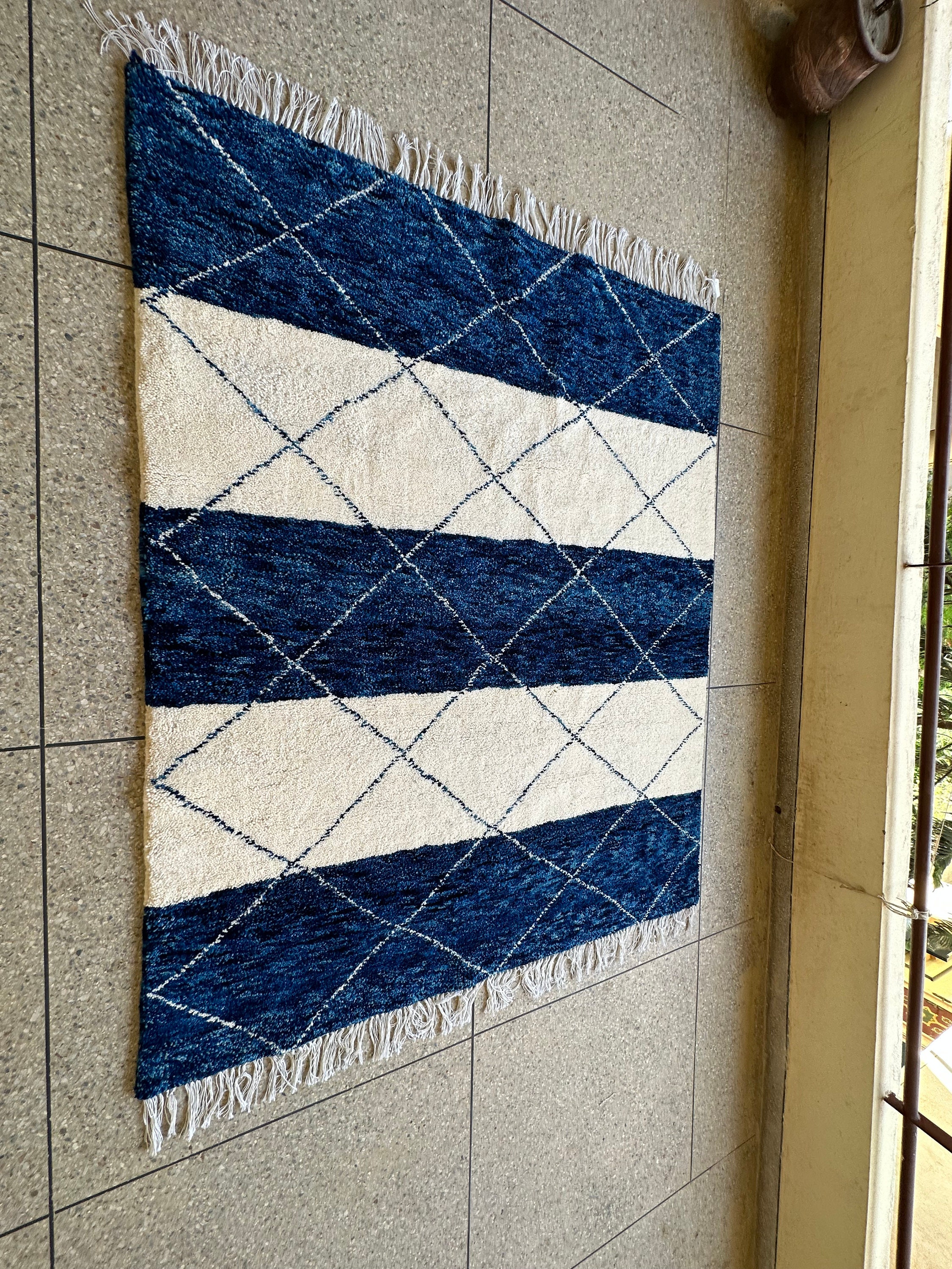 .CUSTOM BENIOURAIN RUG, Moroccan Berber Rug, Unique Blue and White Rug, Handmade Rug, Abstract Rug, Sheep Wool Rug, Handwoven Area Rug.