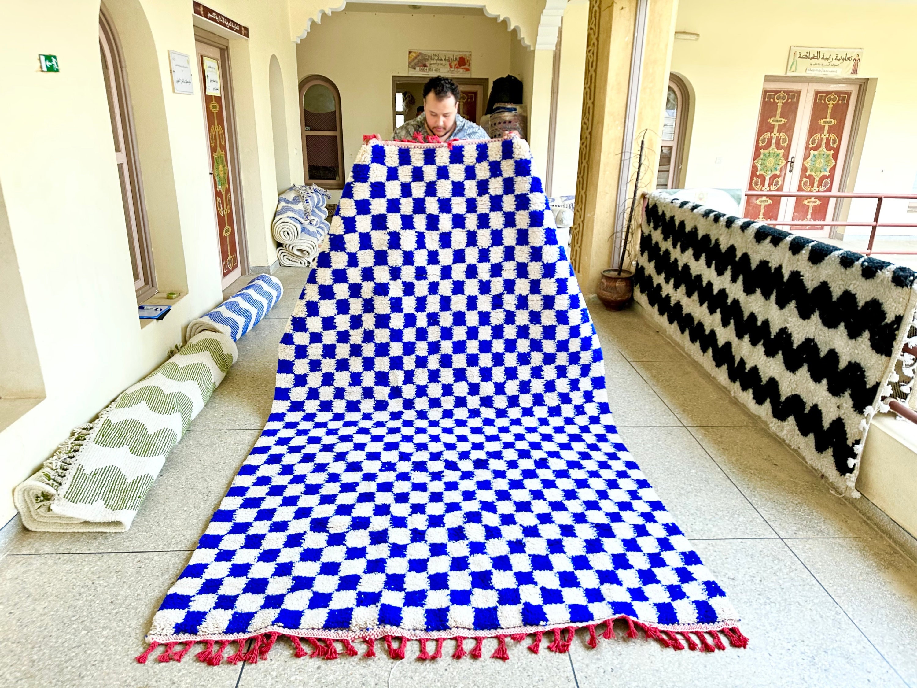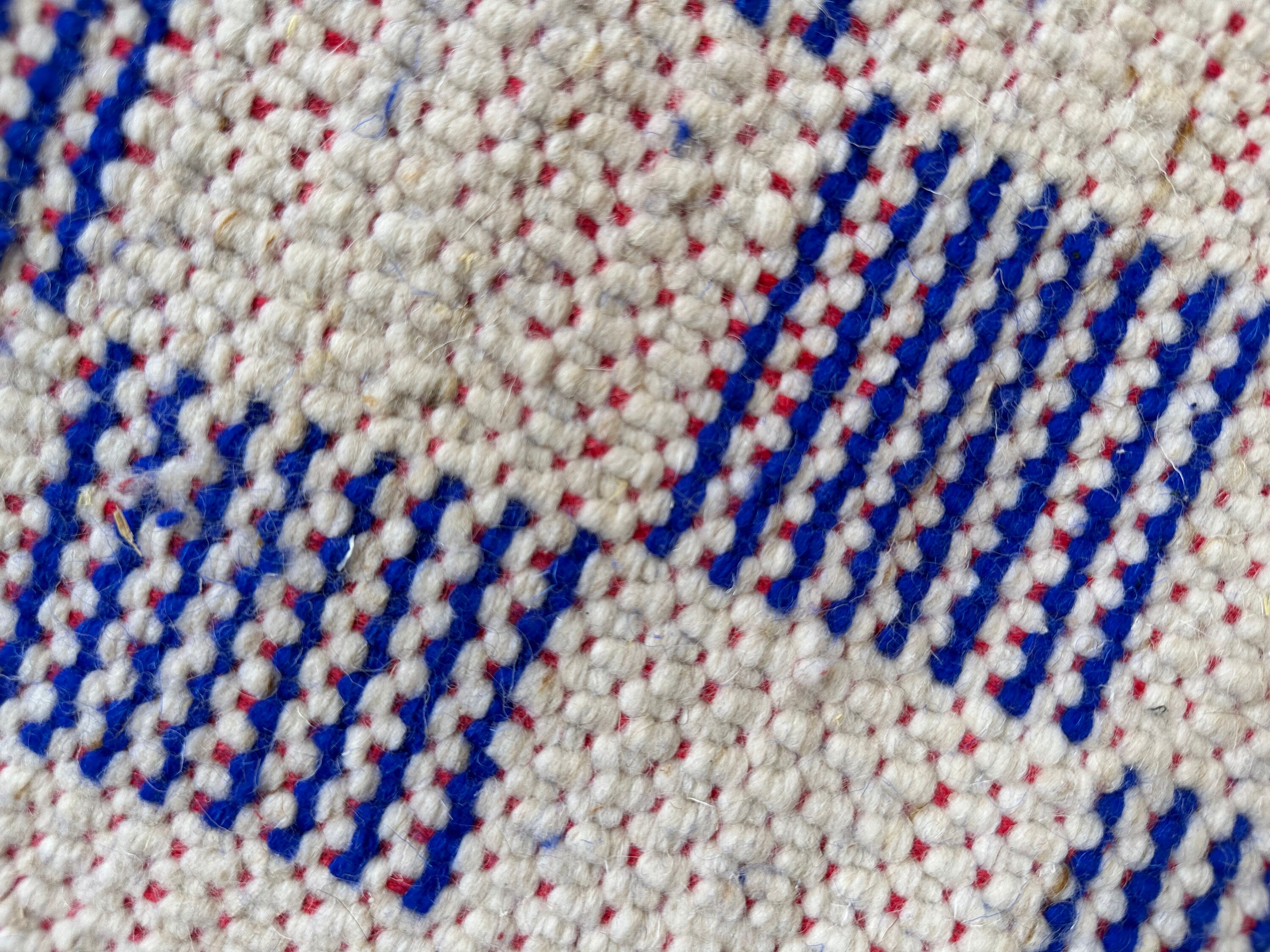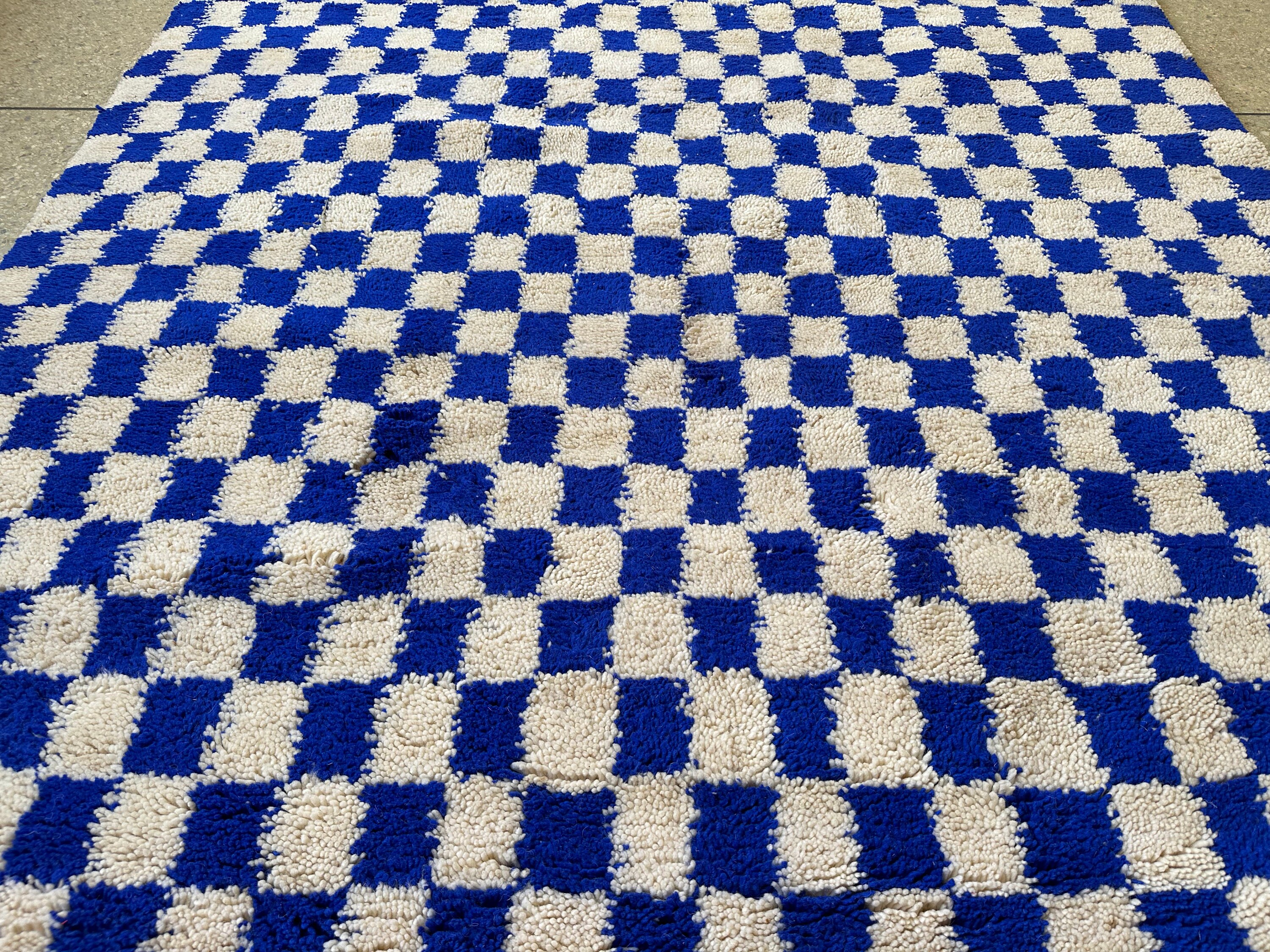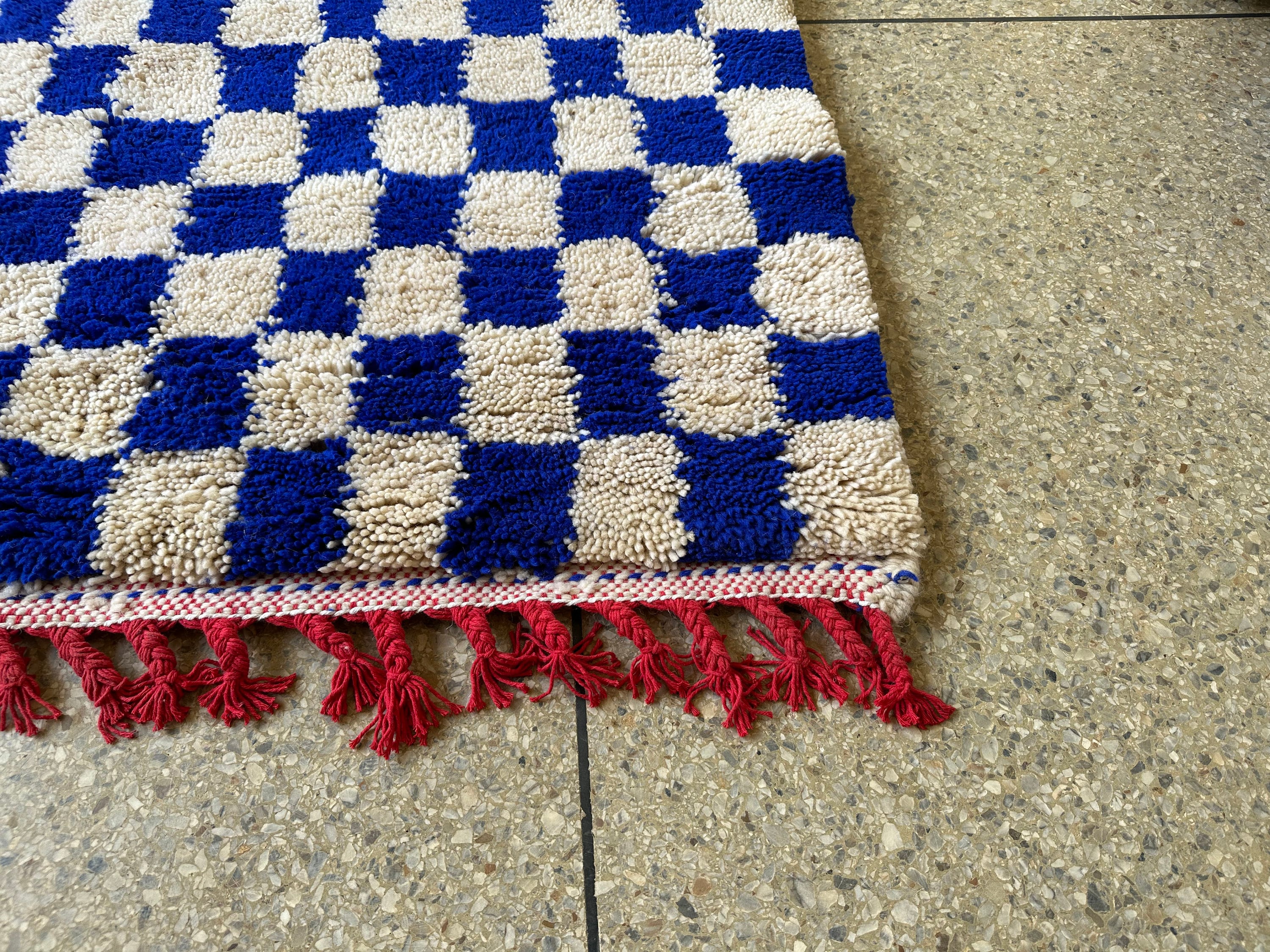 Transform your space with our authentic Beni Ourain Rug, a stunning blend of tradition and style. Handcrafted from premium sheep wool, this checkered rug features a beautiful white and blue design that adds a touch of bohemian elegance to any room. Perfect for modern and rustic decor alike, this versatile Berber rug is not just a floor covering; it’s a statement piece. Elevate your home with this unique handmade Moroccan rug that promises to bring warmth and texture wherever it's placed.