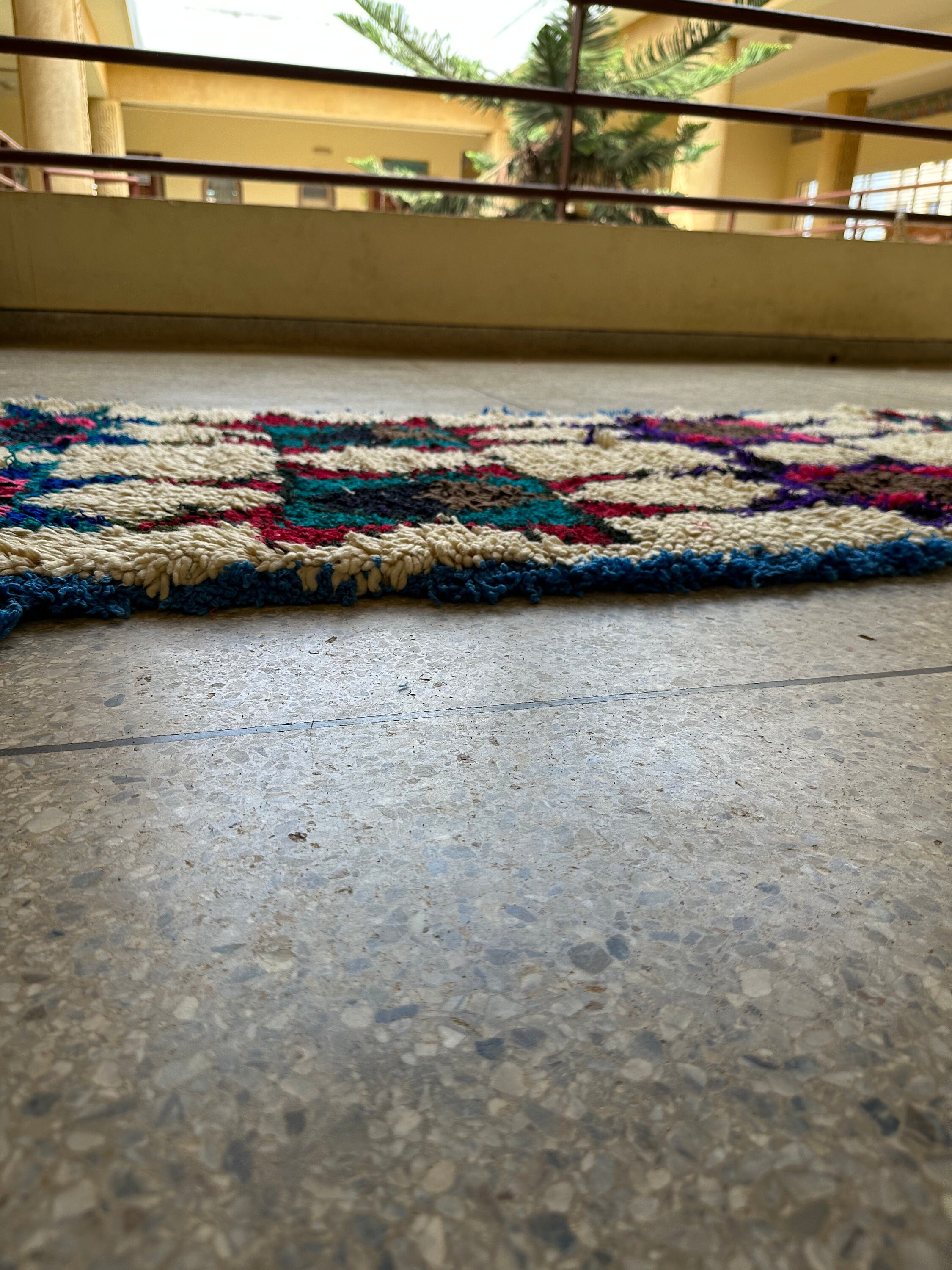 .Beautiful Artistic Berber Rug Runner -Moroccan Rug Colorful -Handmade hallway Rug -Unique Geometric Cotton Rug -Boho Handmade Abstract Rug.