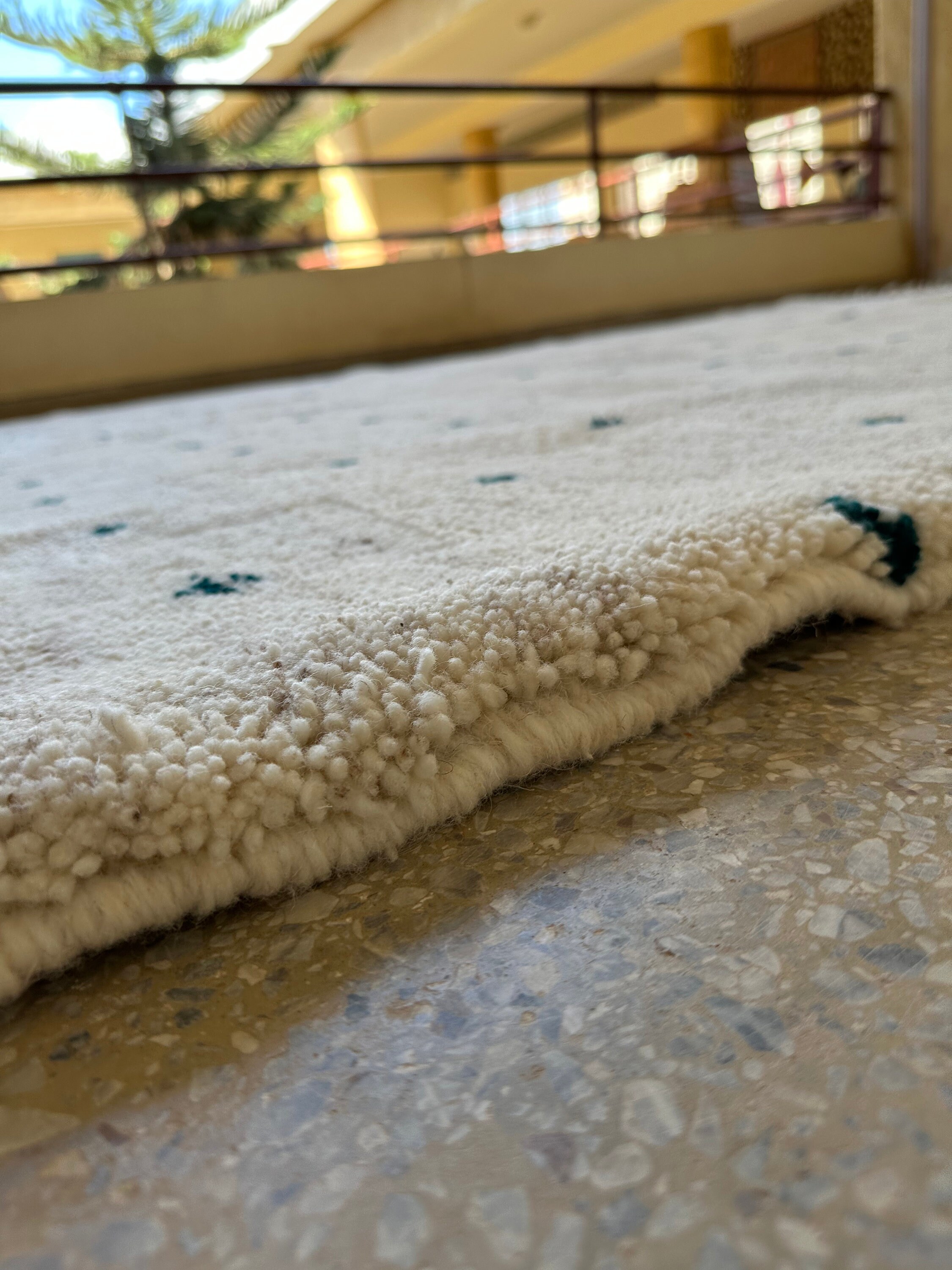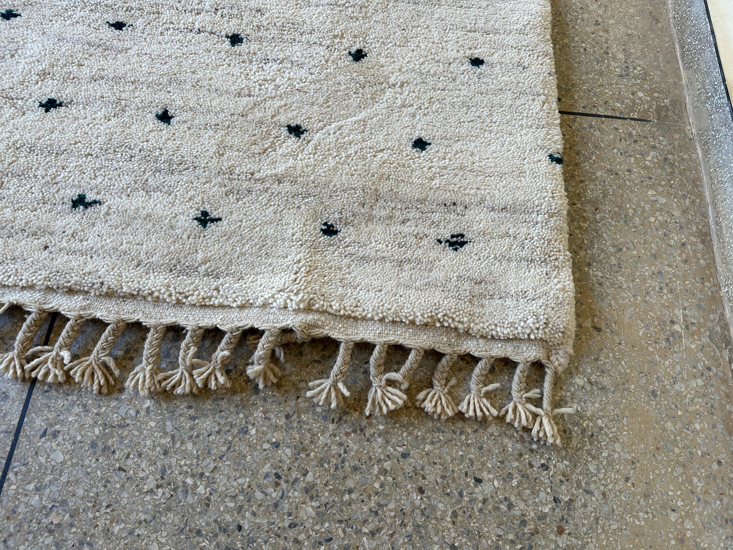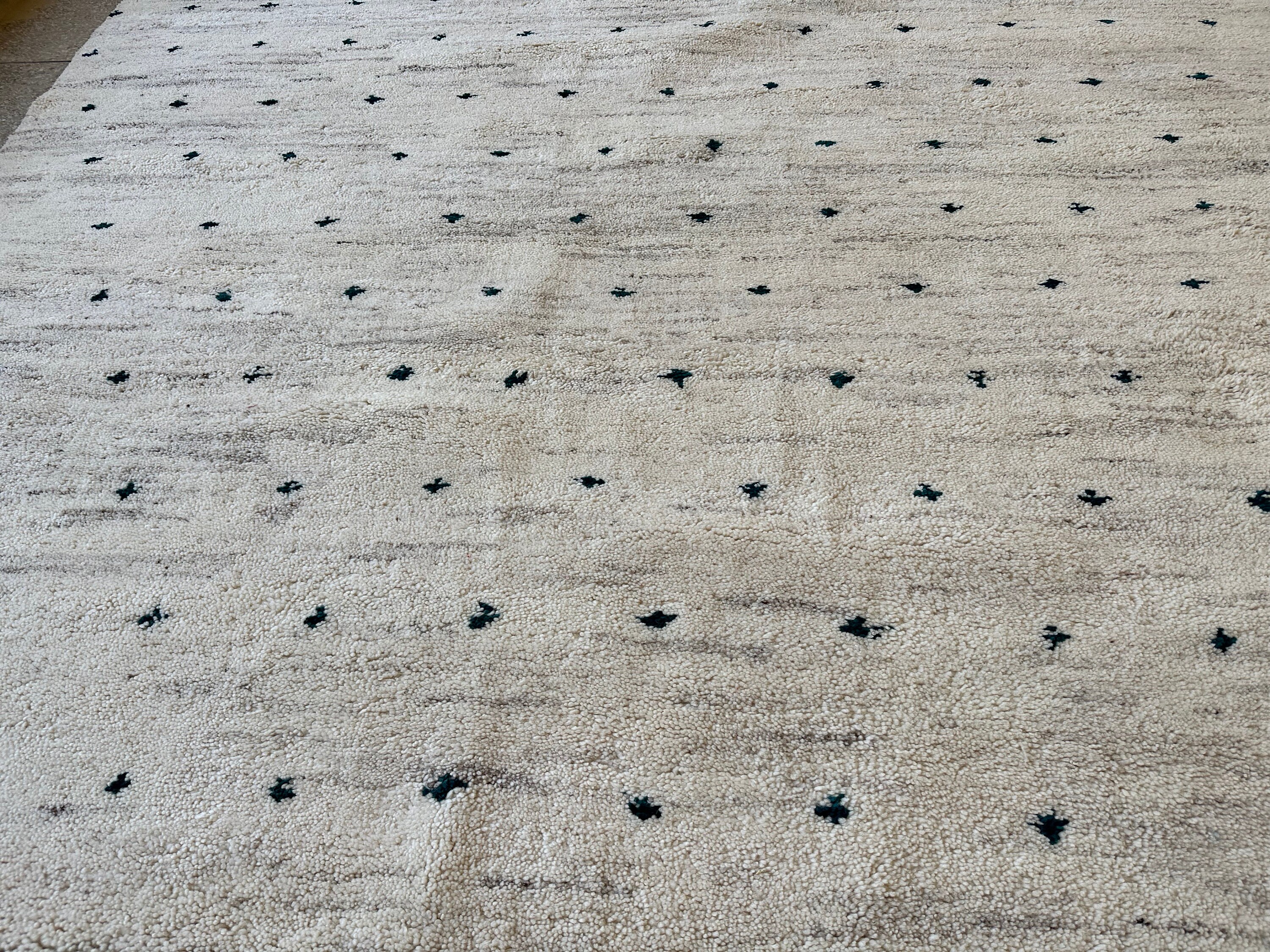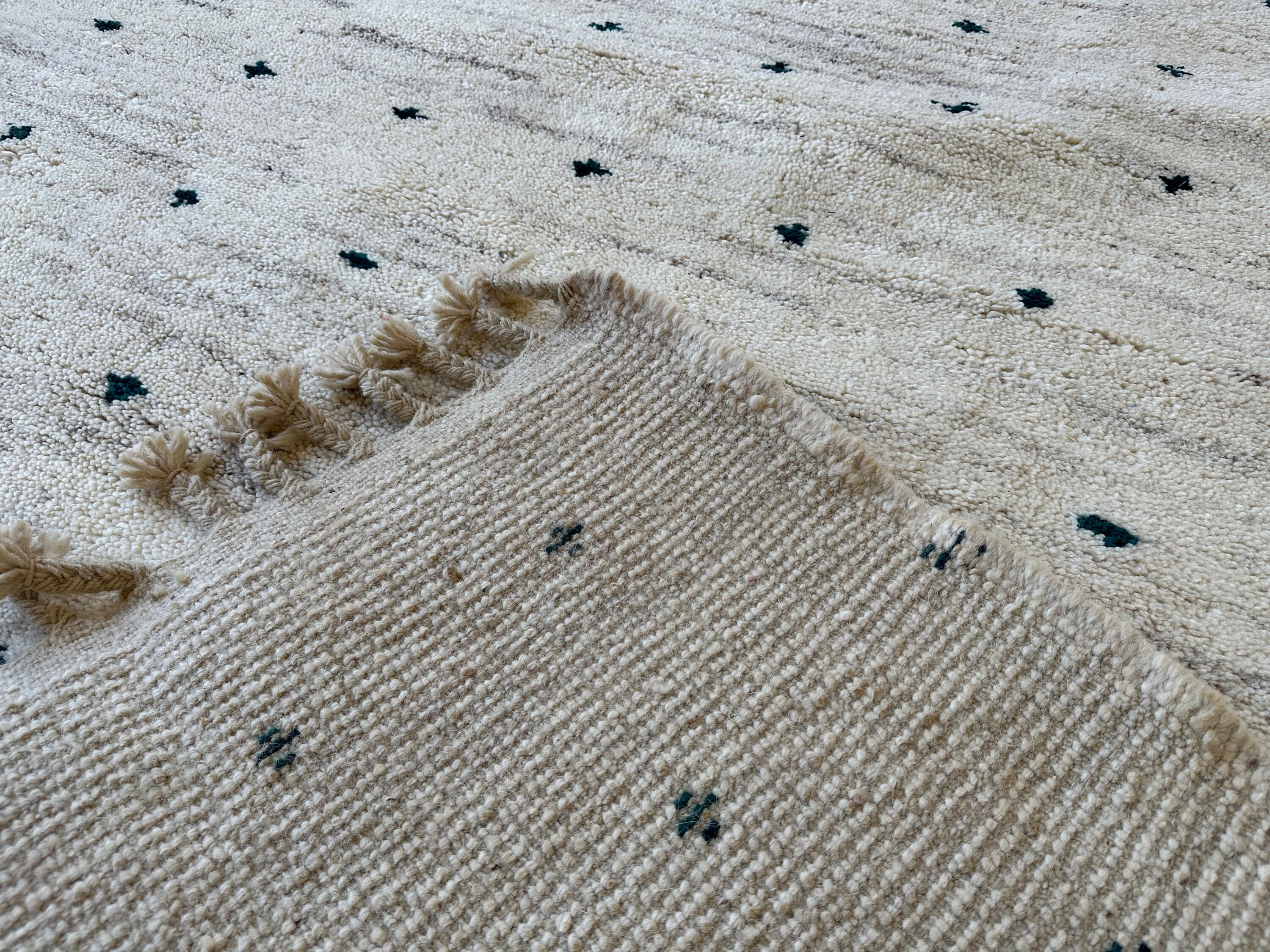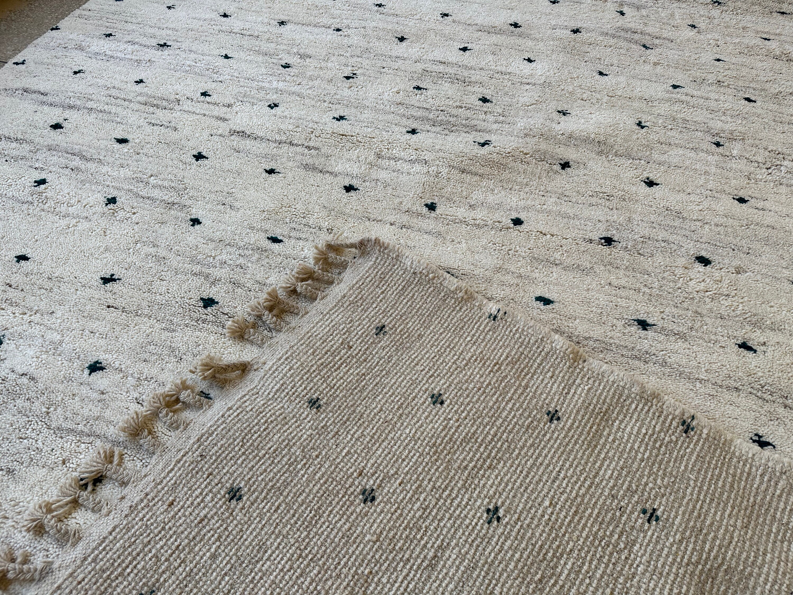 This fabulous Moroccan Rug that will give your room both a cozy feeling and stylish is made from 100% Natural sheep wool, It's Very plush and comfy to walk on, actually It's Heaven for your feet.