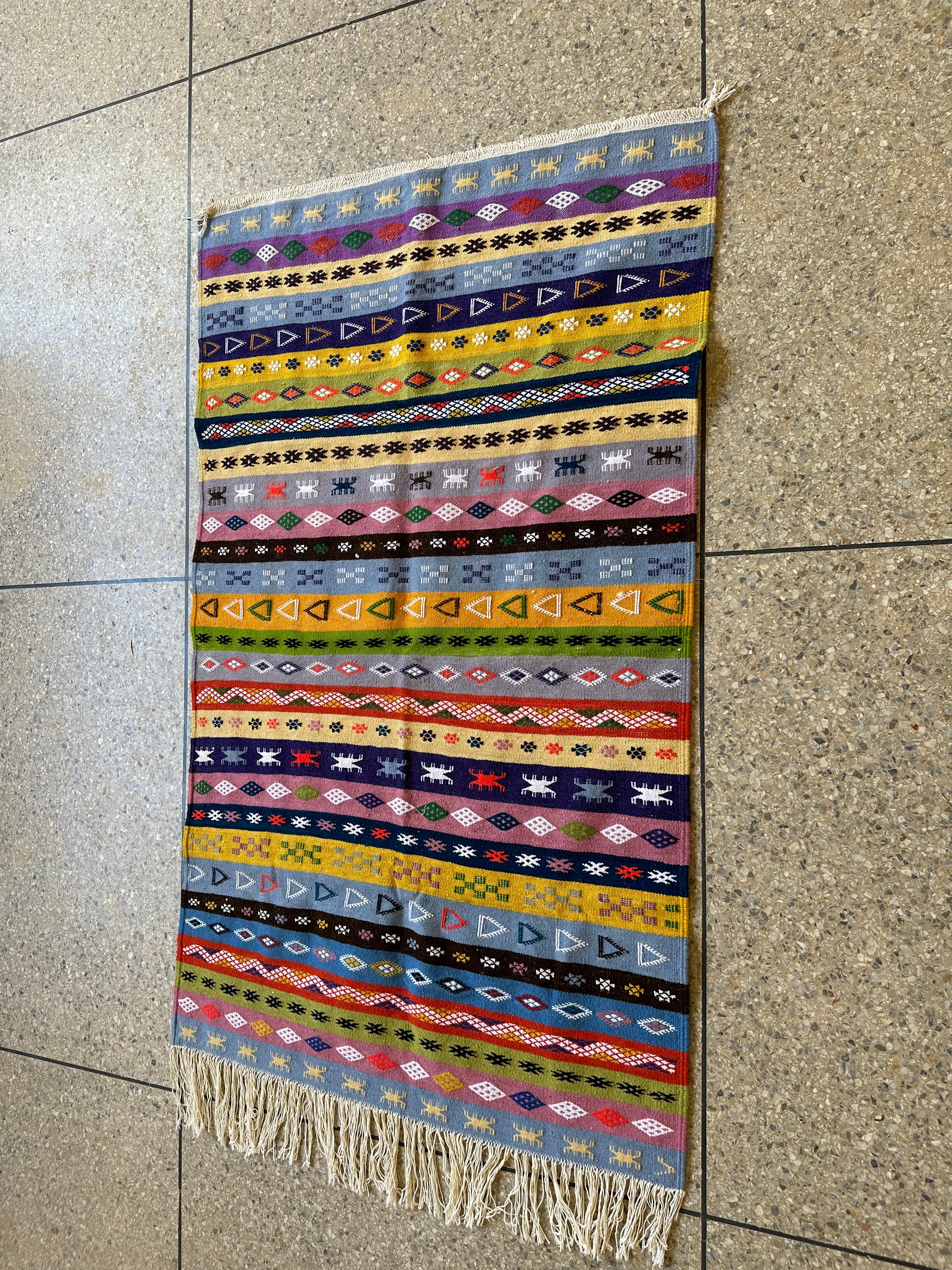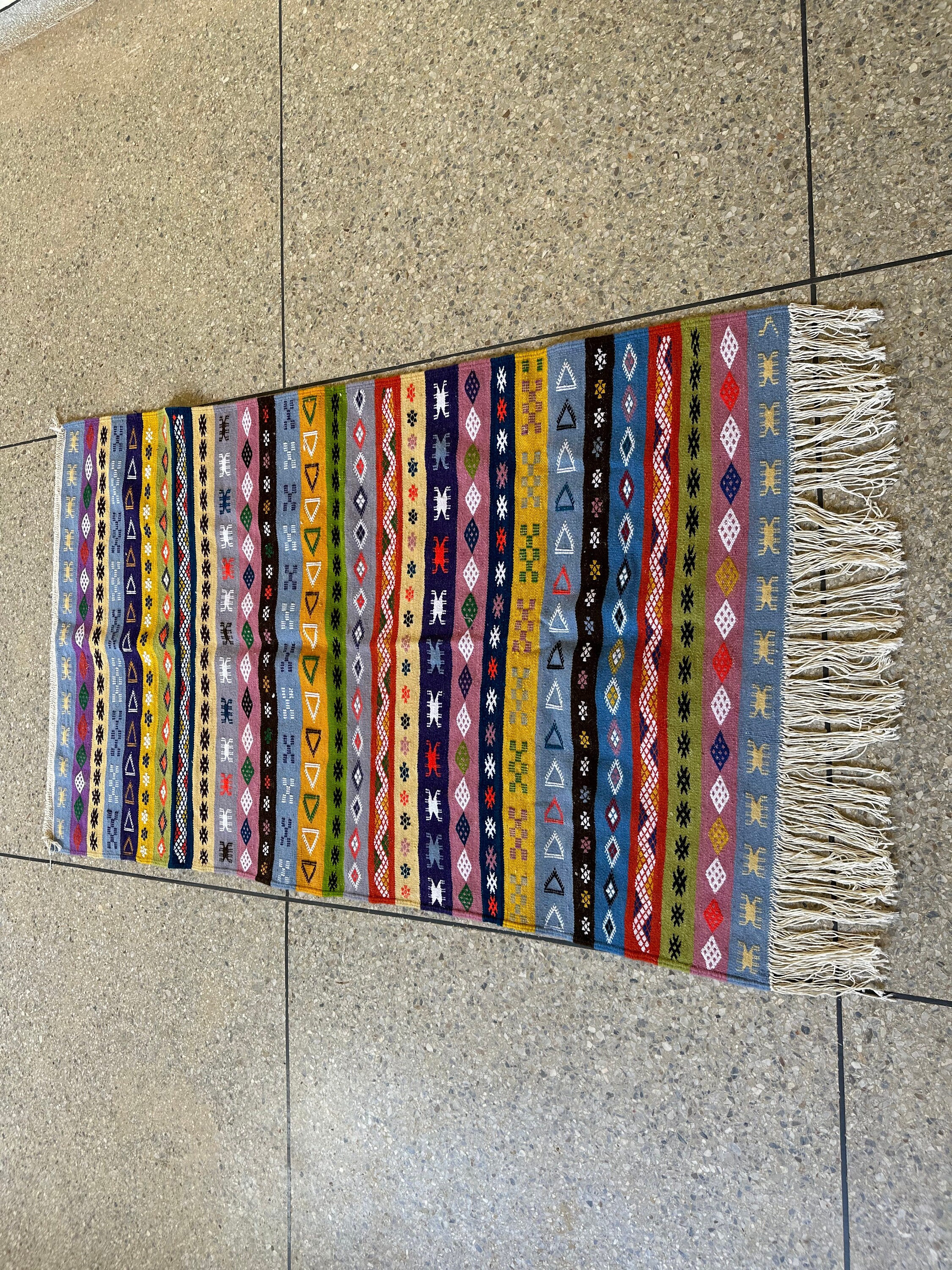 .GORGEOUS KILIM RUG, Beige Moroccan Rug 5x3, Multicolors Berber Wool Rug, Geometric Handmade Rug, Handwoven Wool Rug, Area Wool Rug