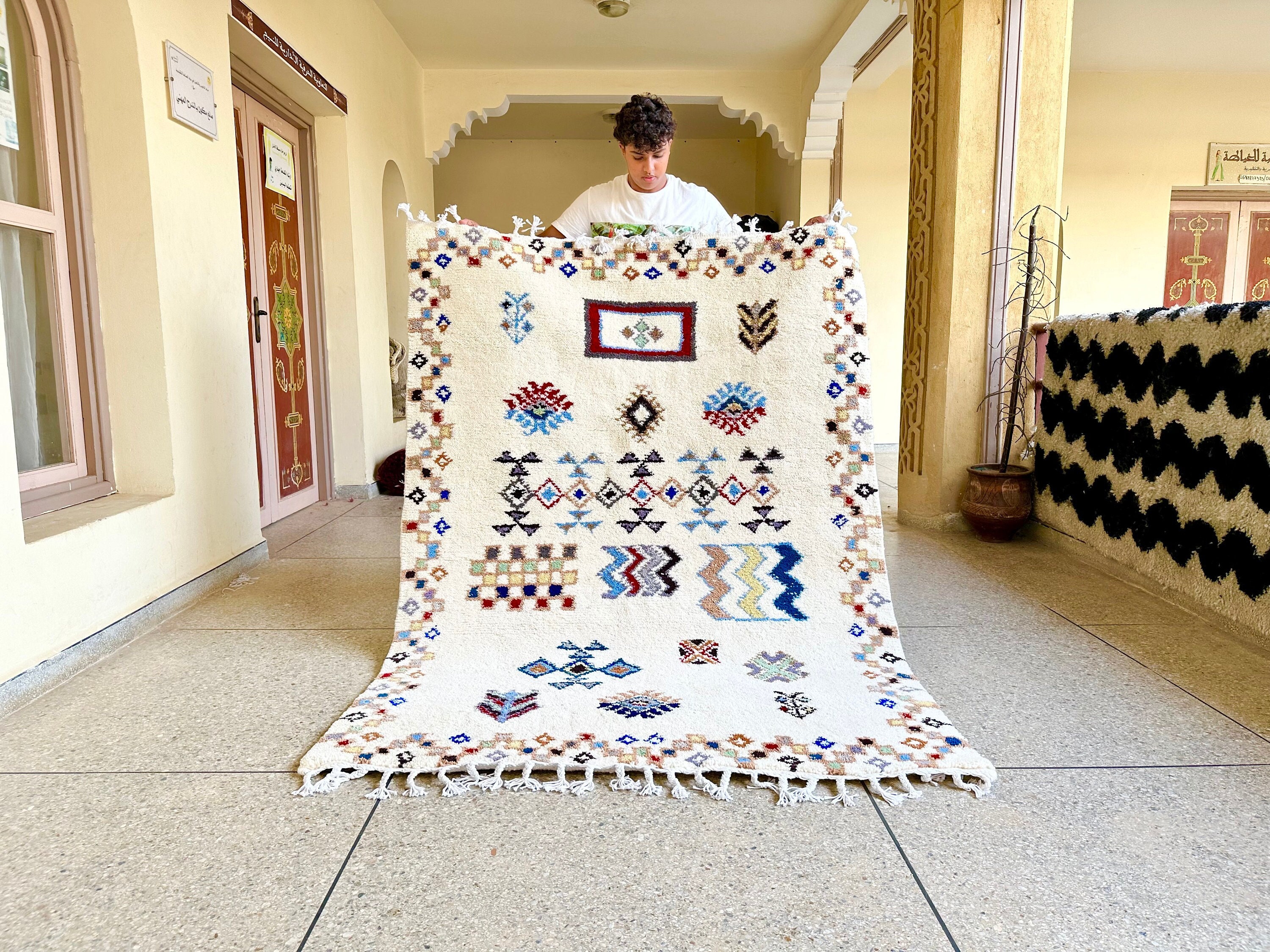"Transform your home with a piece of Moroccan heritage that exudes both elegance and warmth 🌟. Whether placed under your sofa 🛋️, in your bedroom 🛏️, or even as a wall hanging 🖼️, these rugs invite a sense of history, style, and comfort 🧶✨. Explore our full collection of Beni Ourain, Azilal, and Boucherouite rugs for unique pieces that tell a story 📚💫."