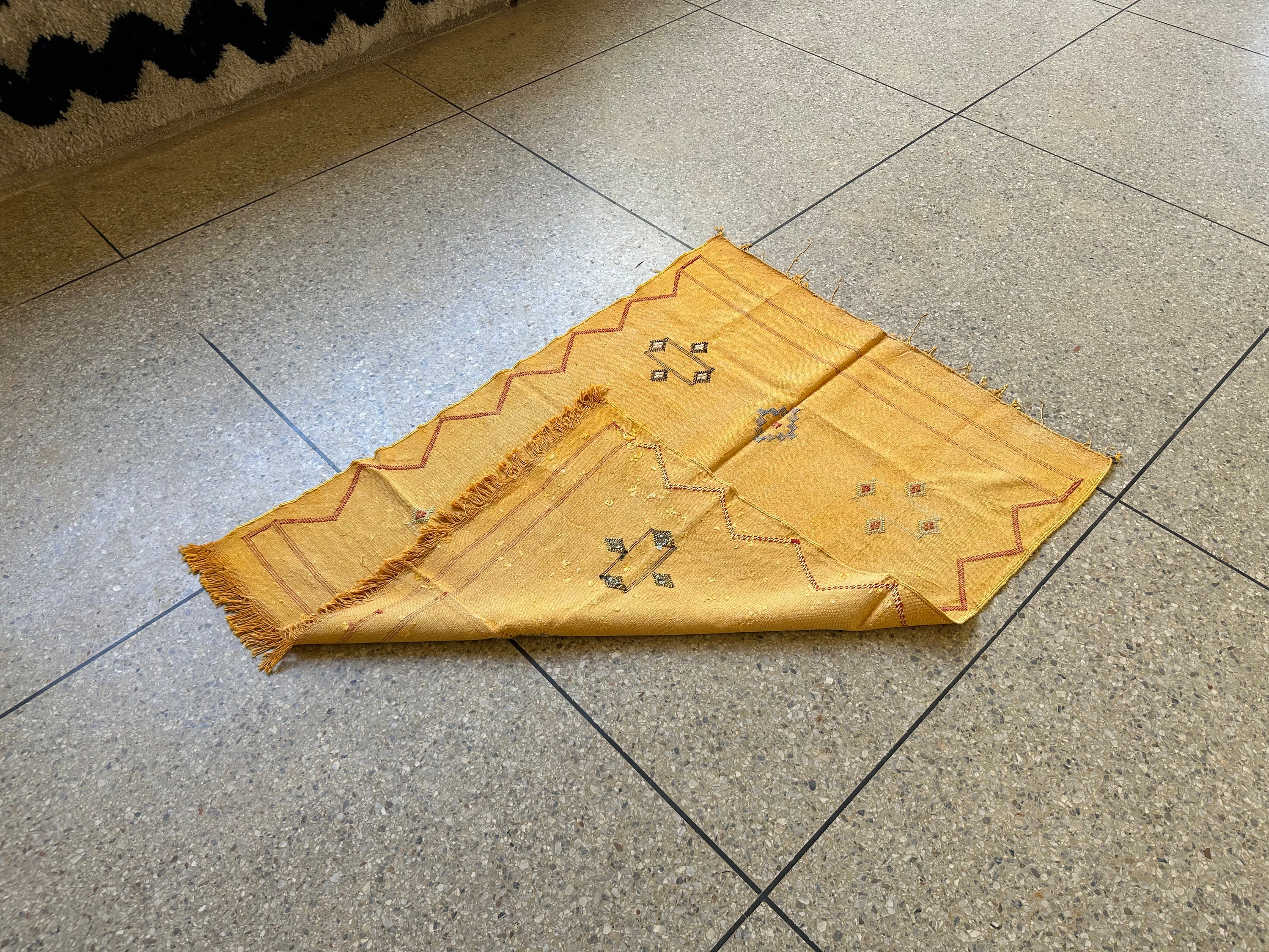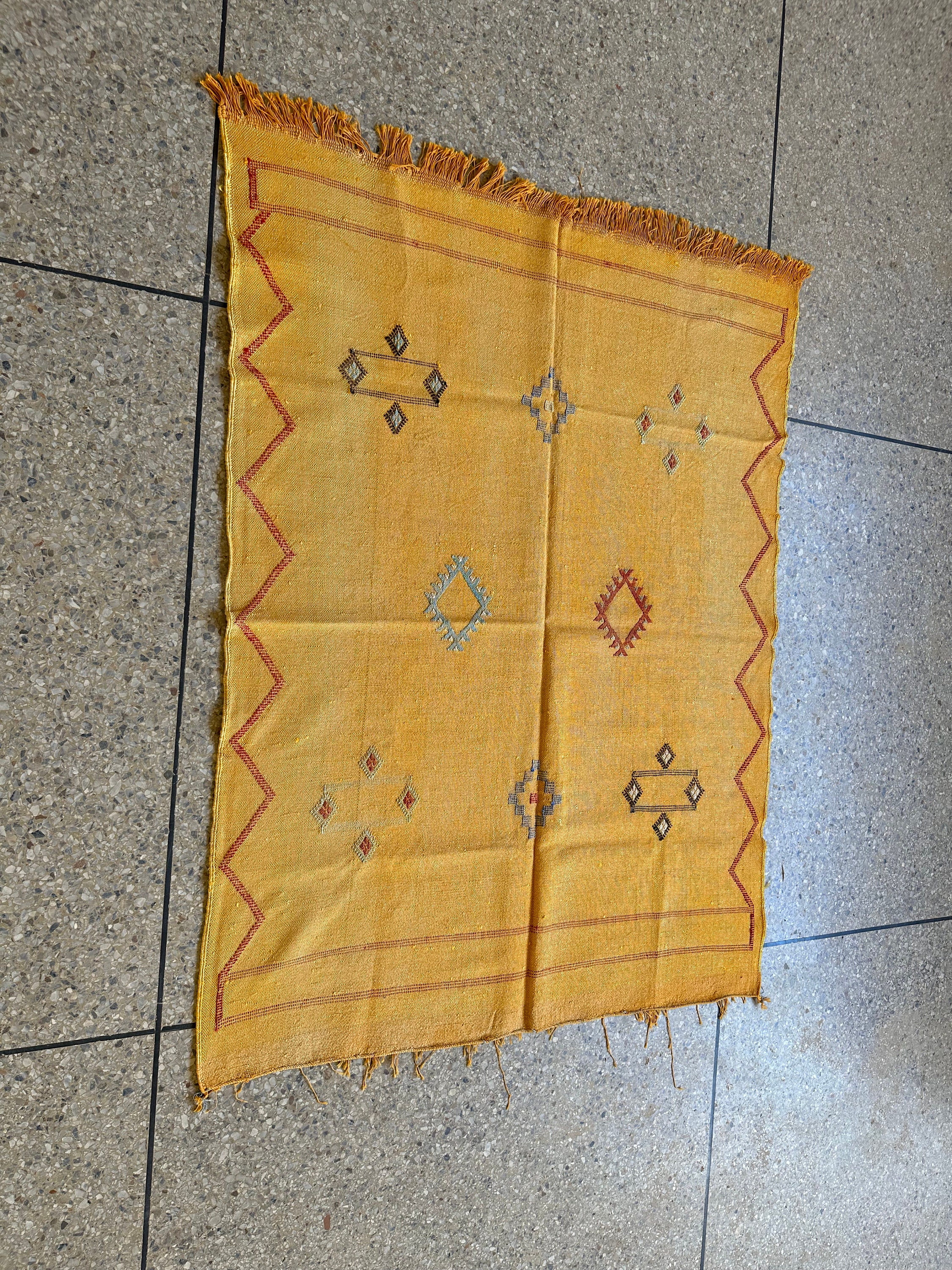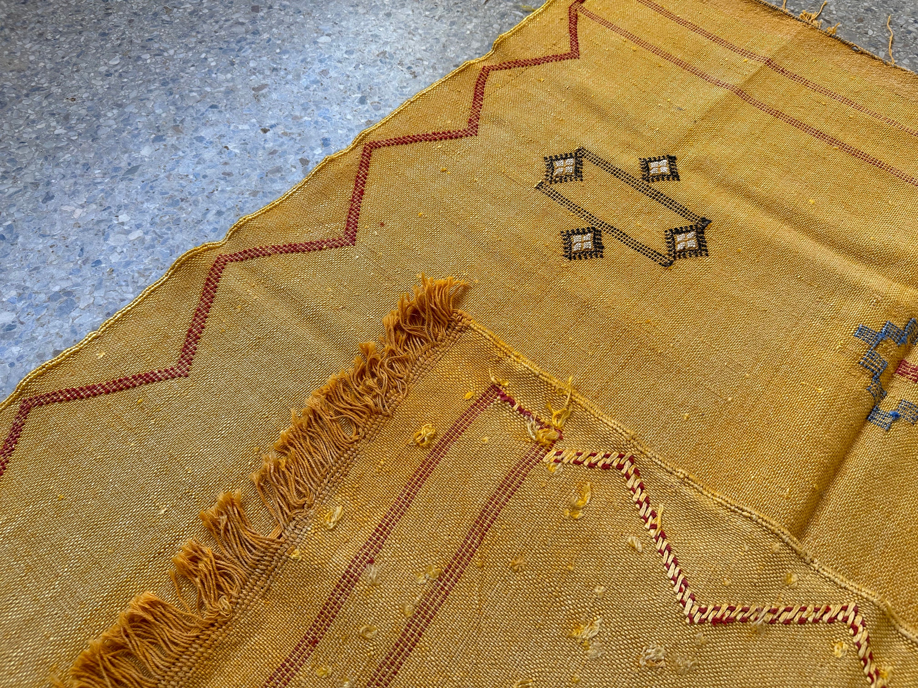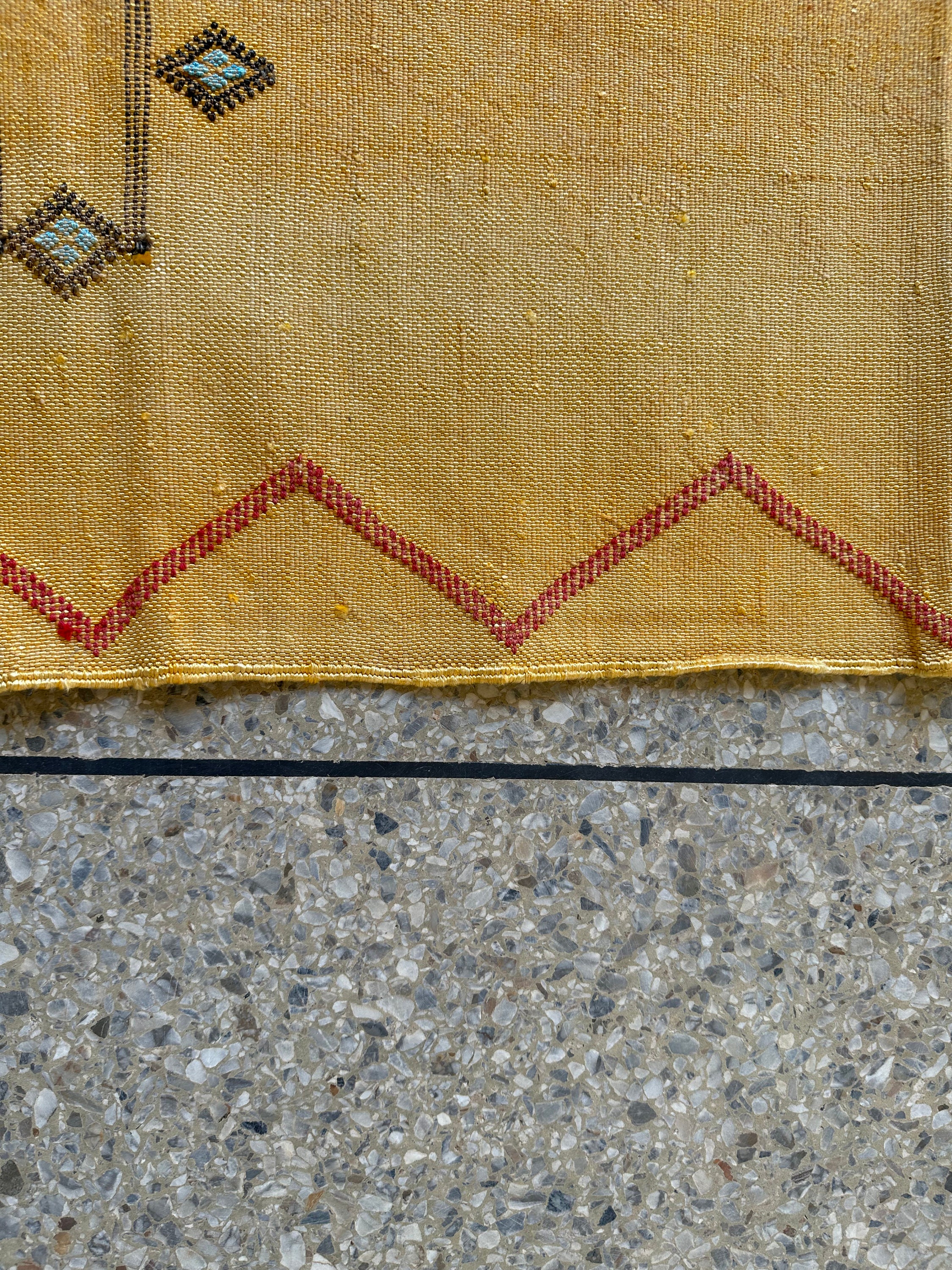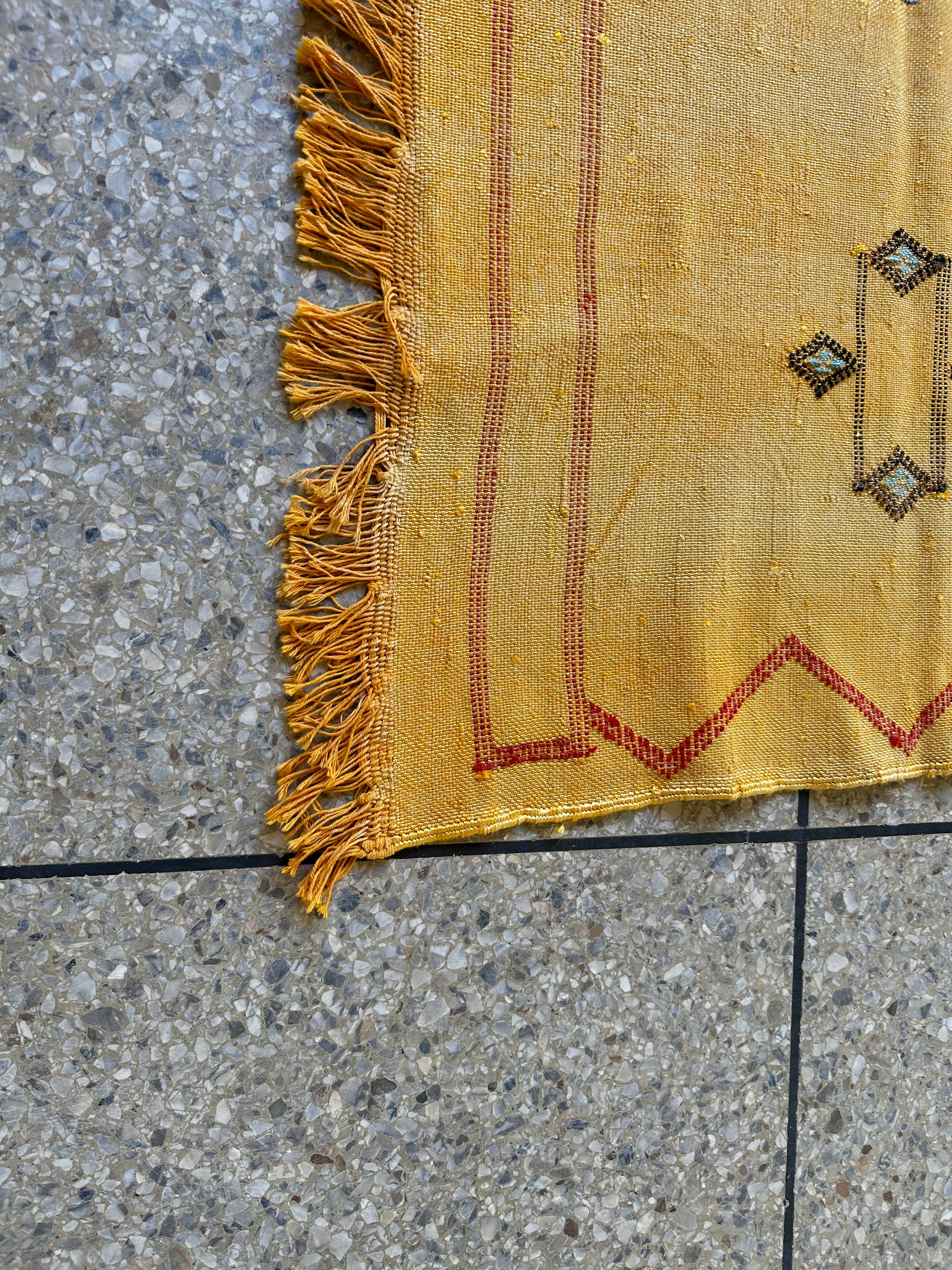 .PRETTY SABRA RUG, 4x3 Flatweave Rug, Kilim Woven Rug, Yellow Rug, Abstract White Rug, Area Rug, Moroccan Rug, Handwoven Rug, Cactus Silk Rug