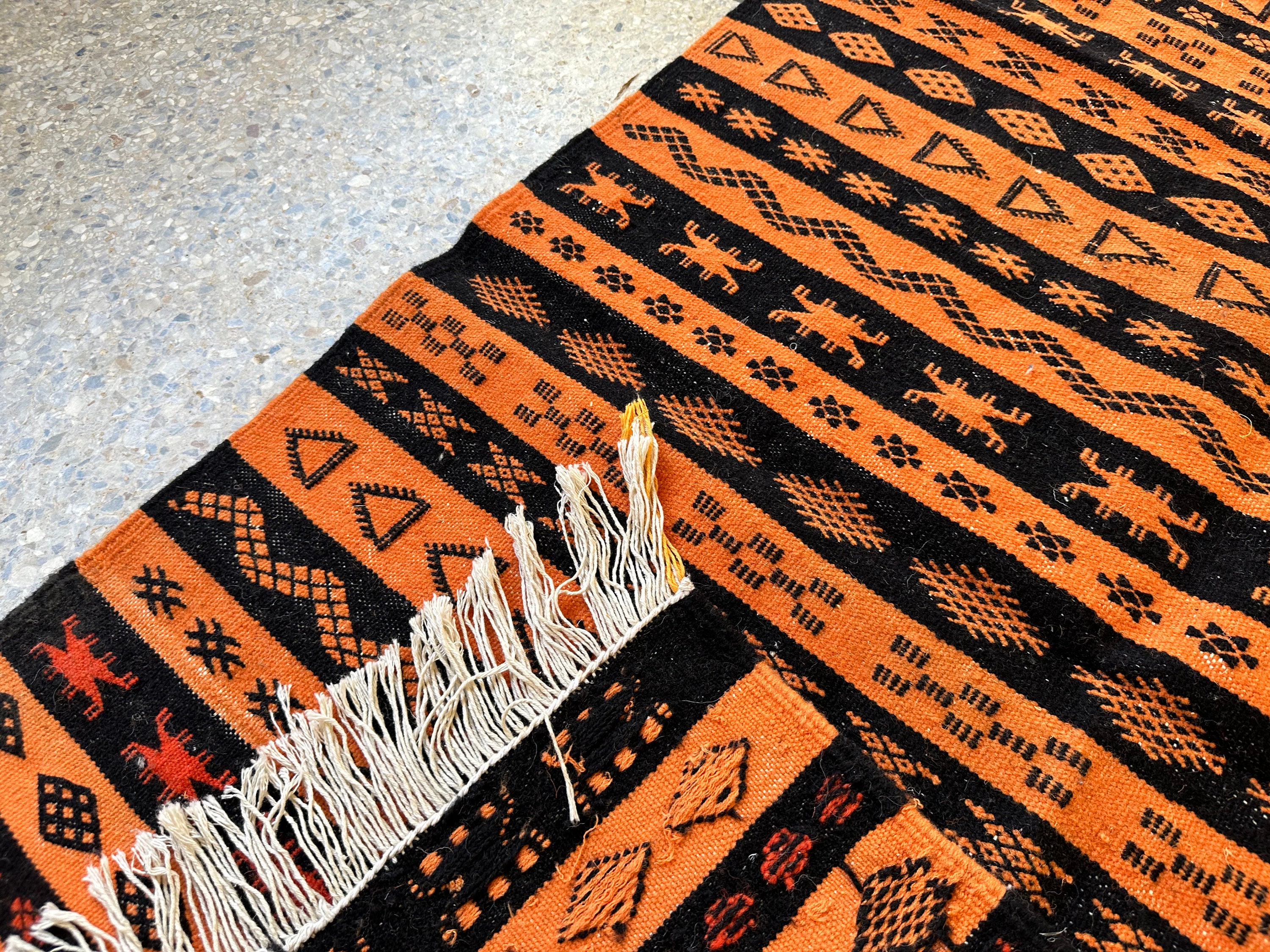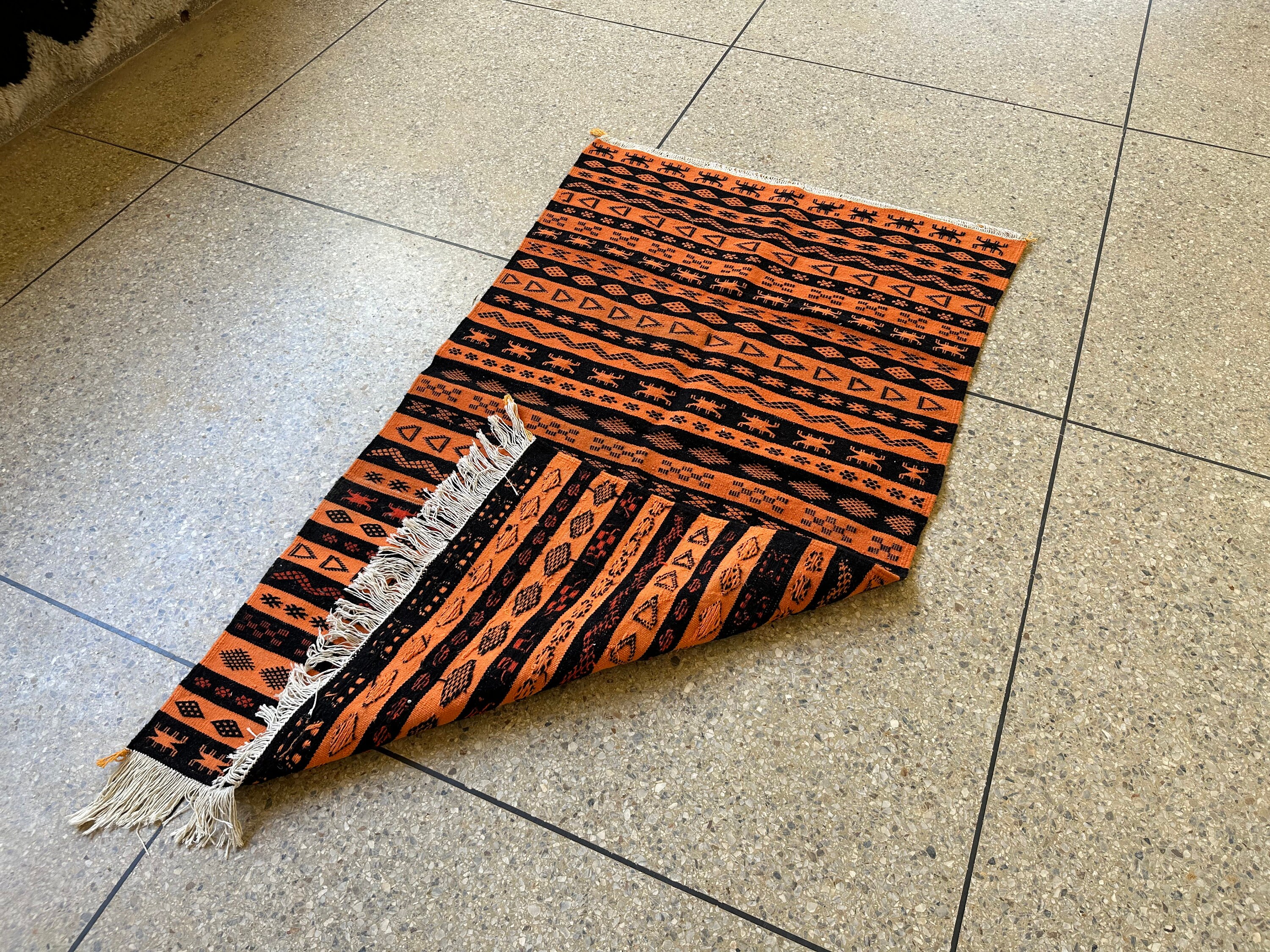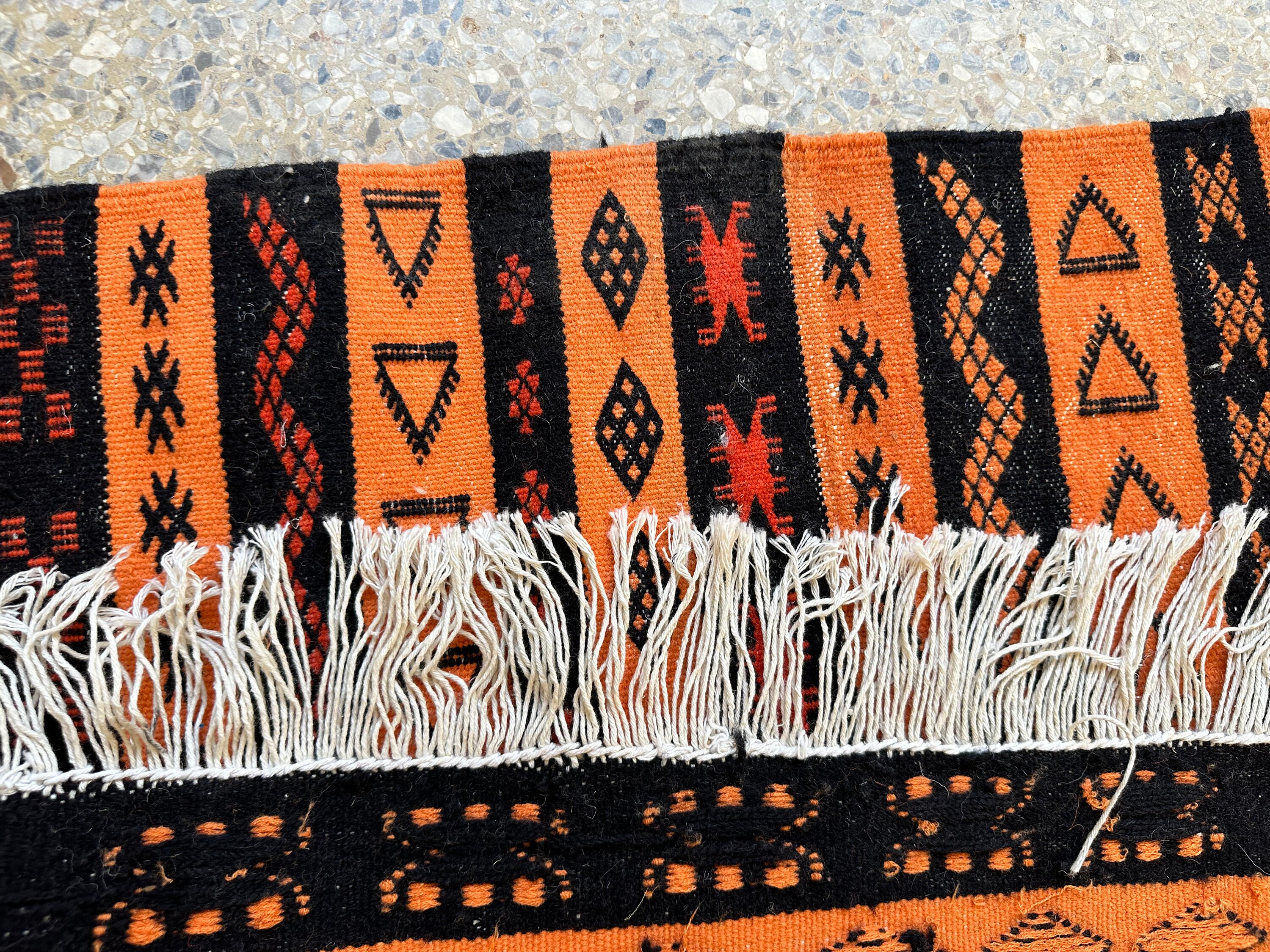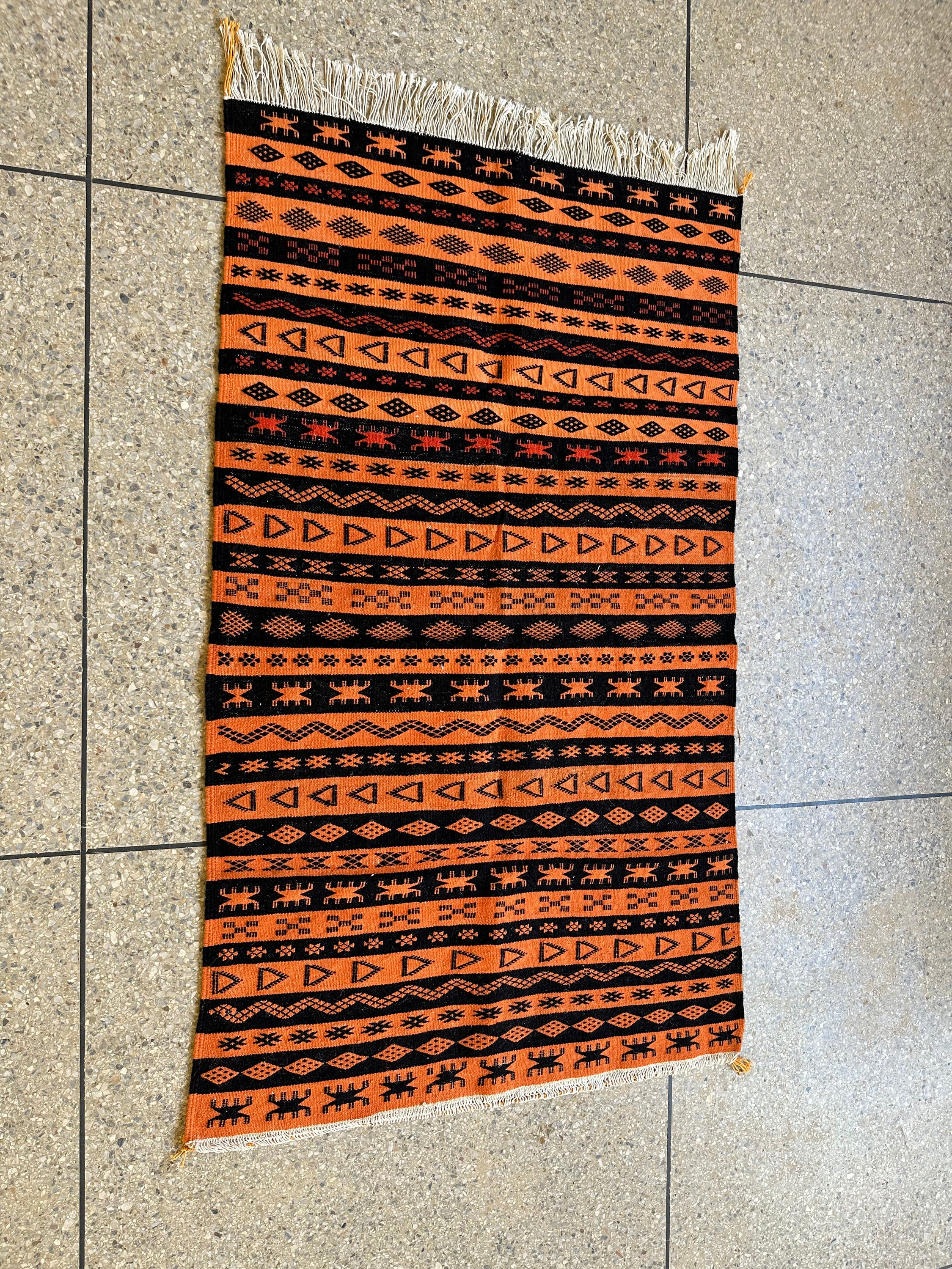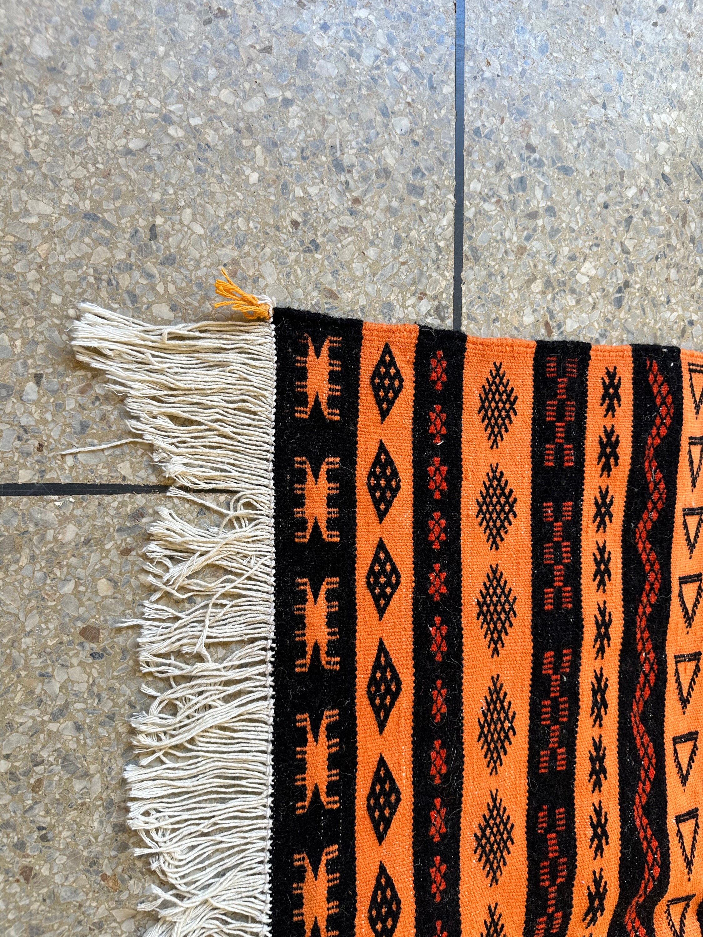 .AMAZING KILIM RUG, Moroccan Rug 3x5 Berber Rug, Knotted Rug, Orange & Black Rug, Striped Rug, Handwoven Rug, Flatweave Rug, Area Wool Rug
