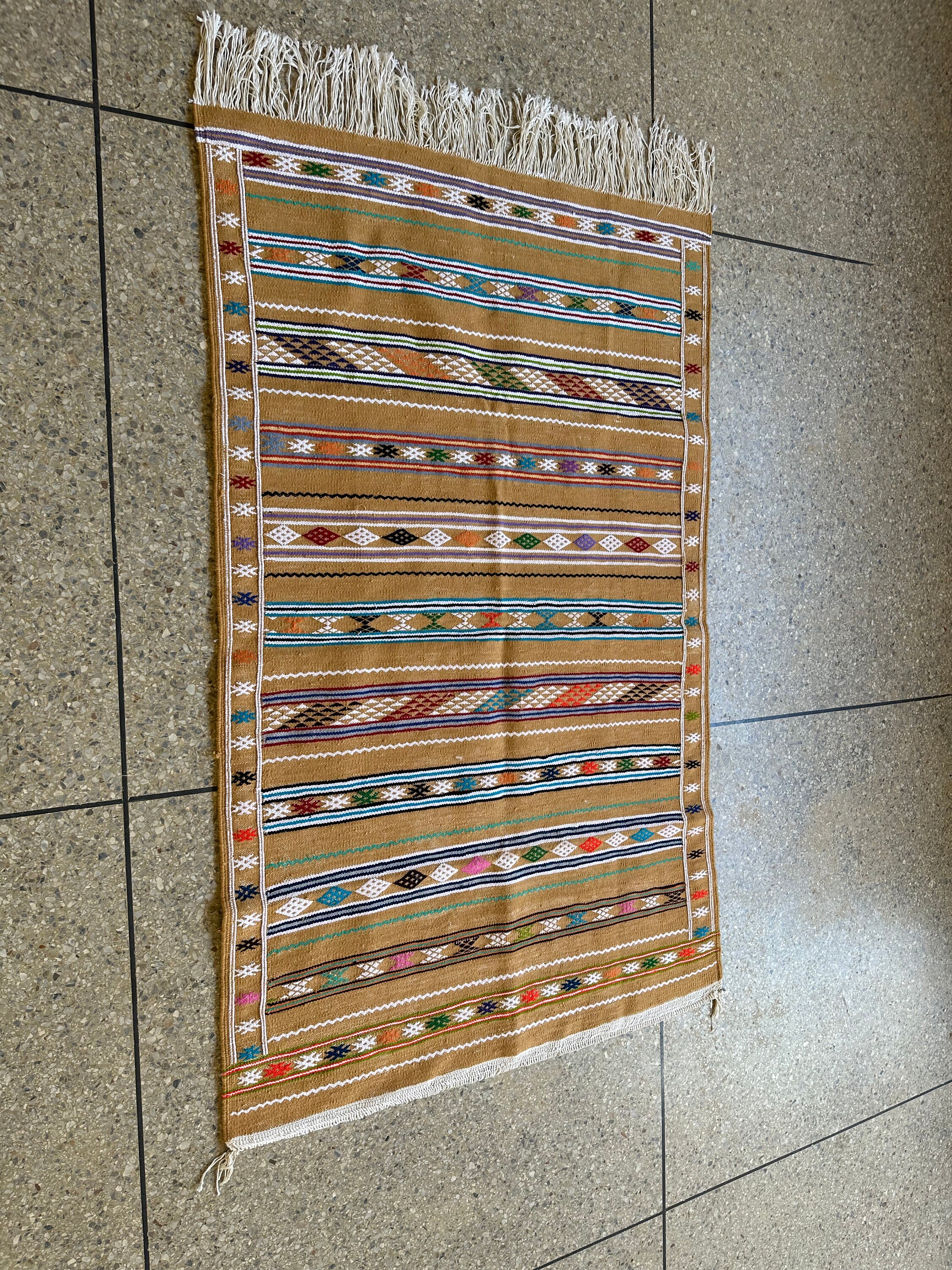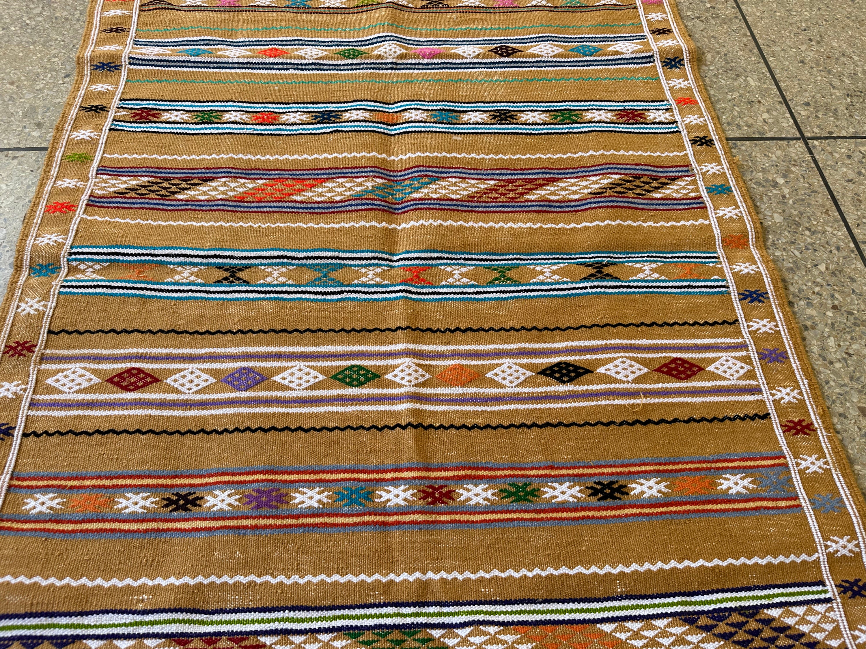 .STUNNING KILIM RUG, Moroccan Rug 3X5, Berber Flat Rug, Wood Brown Rug, Geometric Rug, Handwoven Rug, Flatweave Rug, Area Rug, Wool Rug.