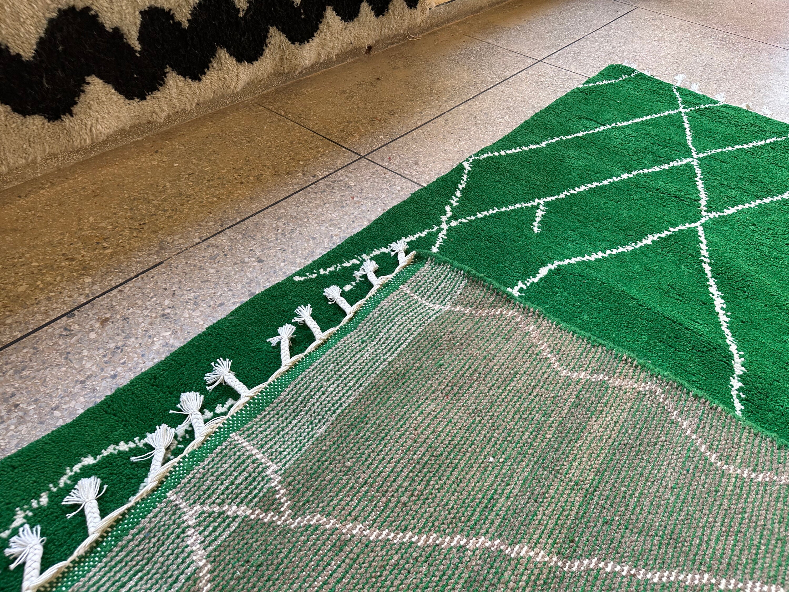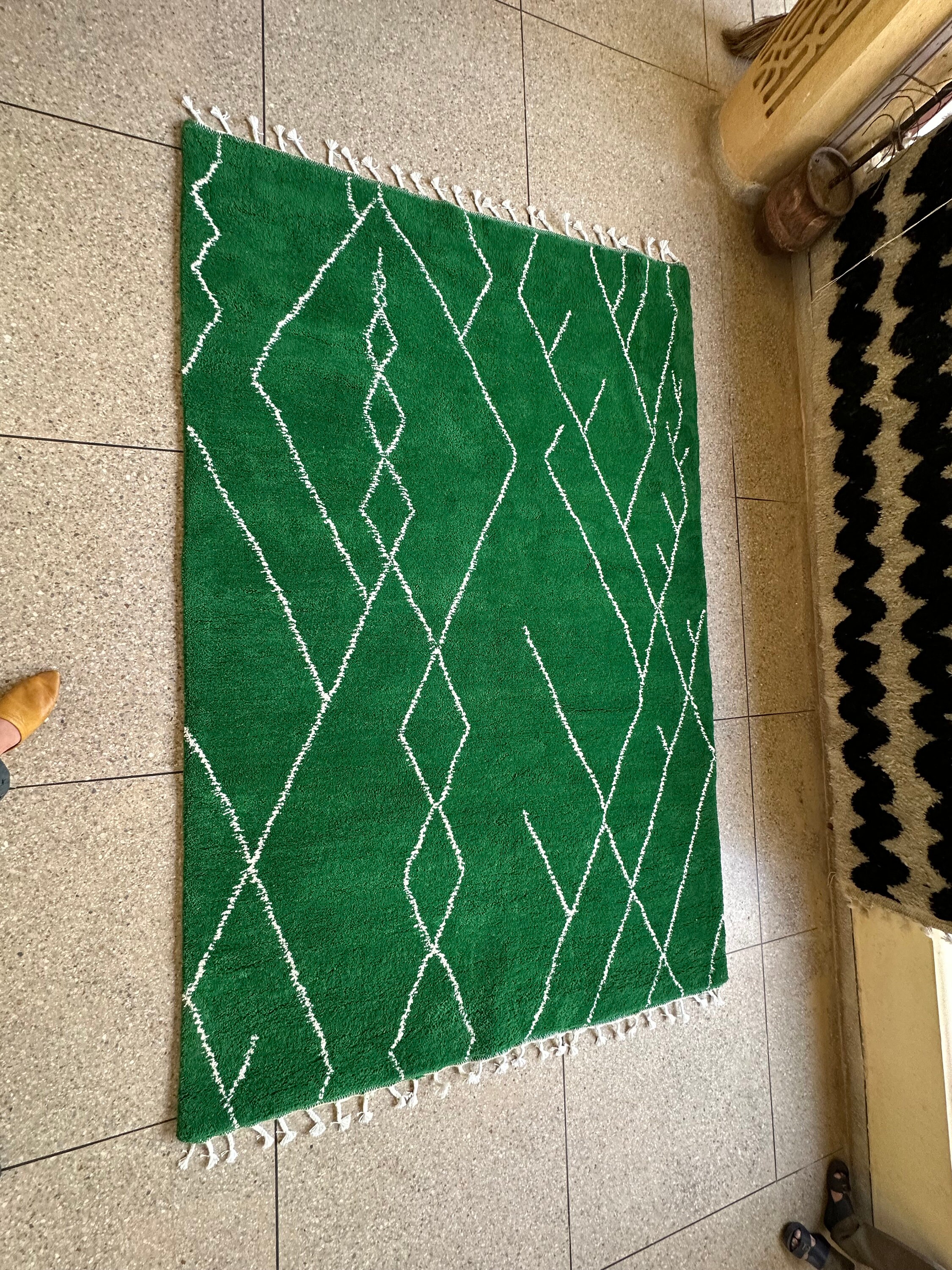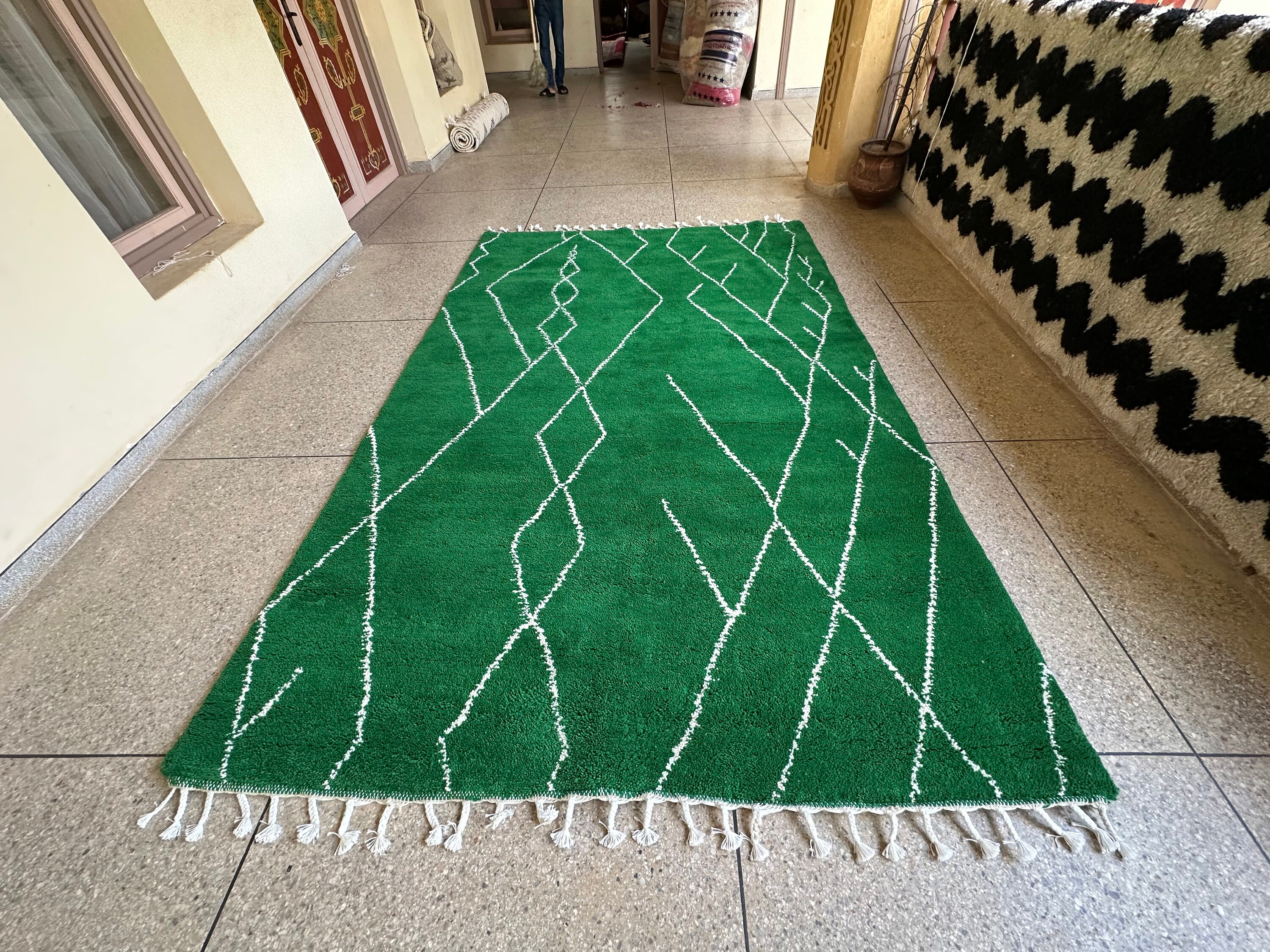 Bring a touch of artistic charm to your home with this stunning green and white abstract Beni Ourain rug! Expertly handwoven from 100% natural sheep wool, this Moroccan rug blends softness, durability, and authentic Berber craftsmanship. Its unique abstract design adds a vibrant yet elegant touch to bohemian and eclectic interiors. Perfect for your living room, bedroom, or any cozy space that needs a stylish upgrade. Elevate your decor with this one-of-a-kind handmade masterpiece!