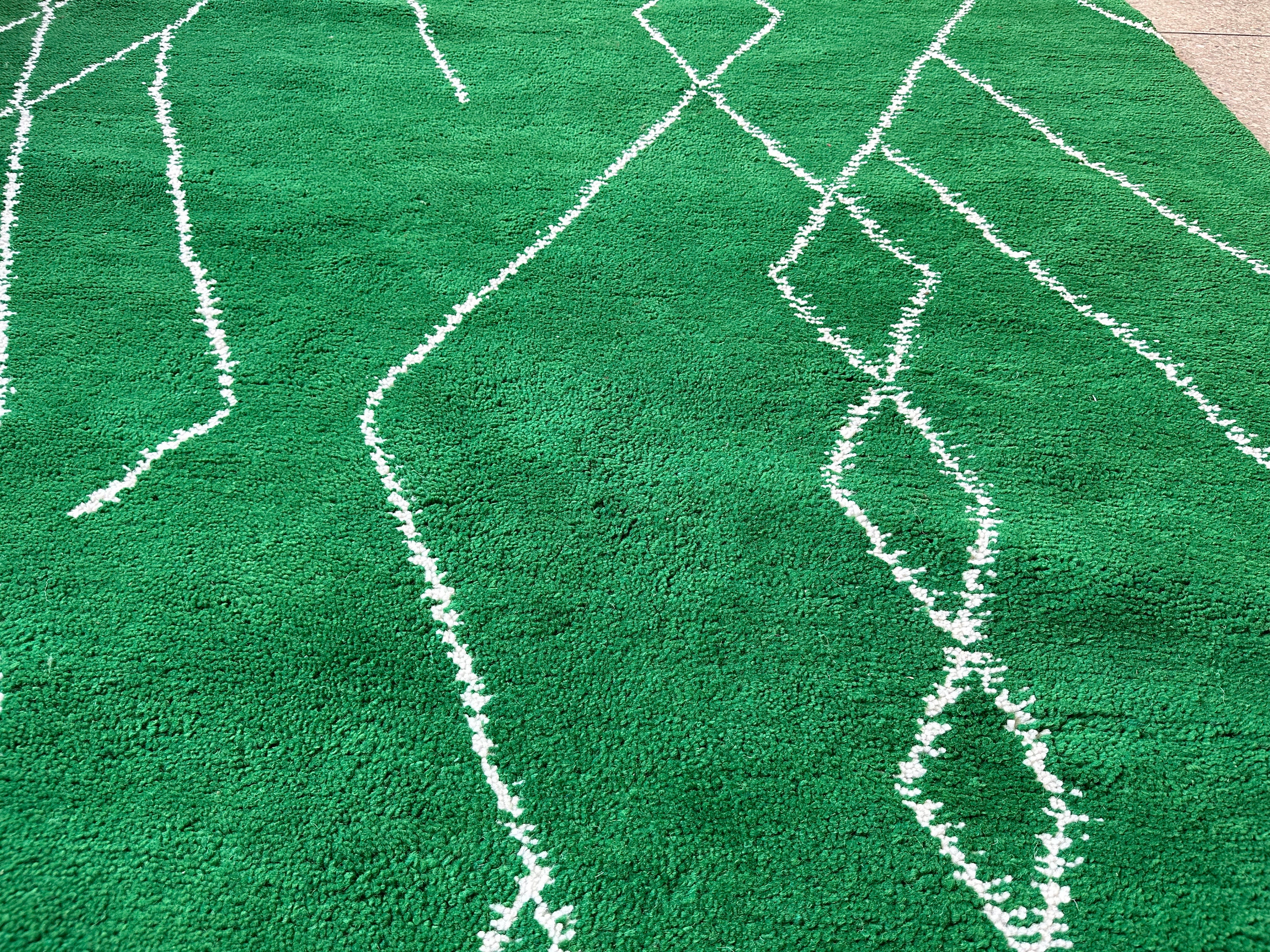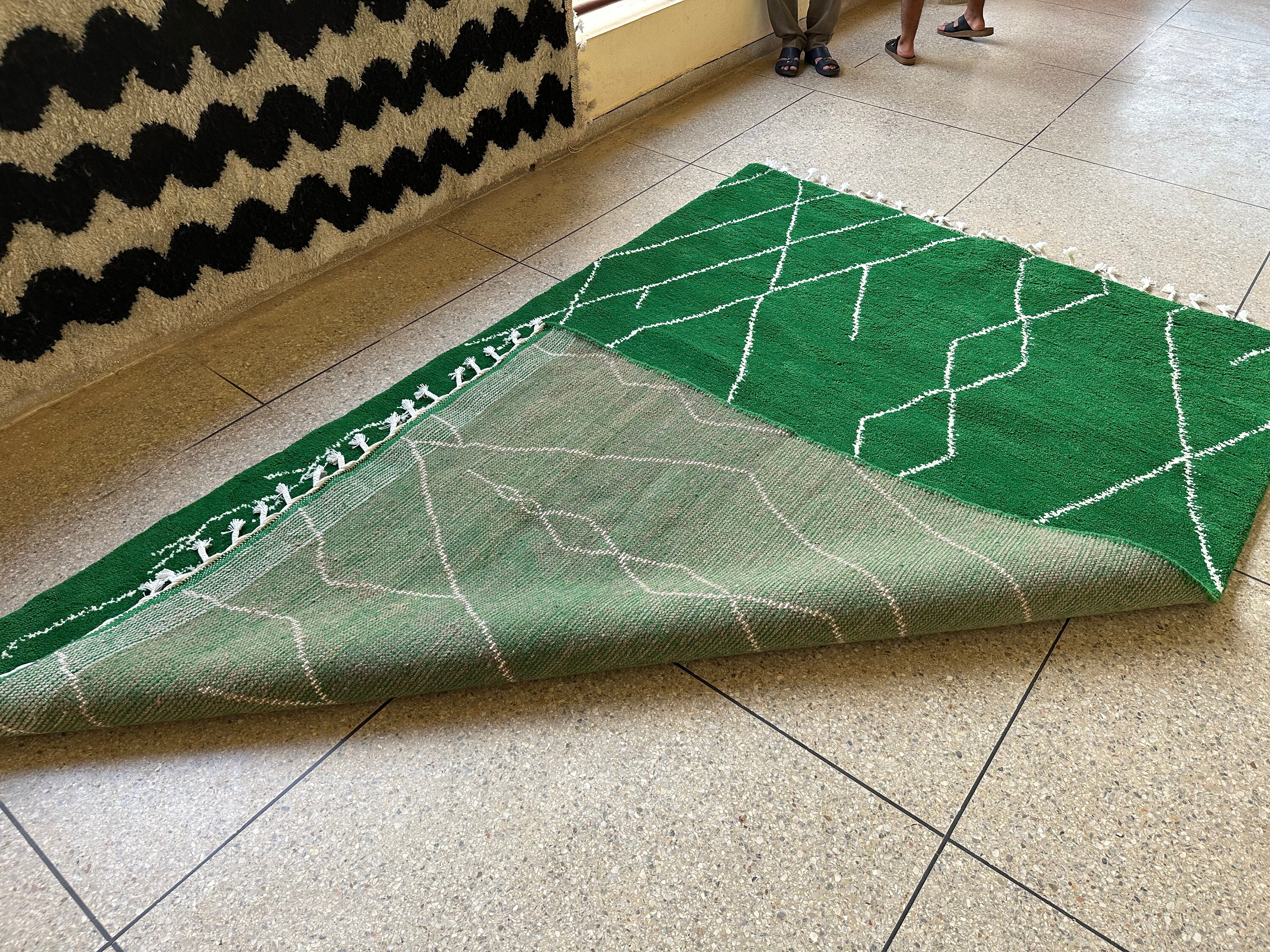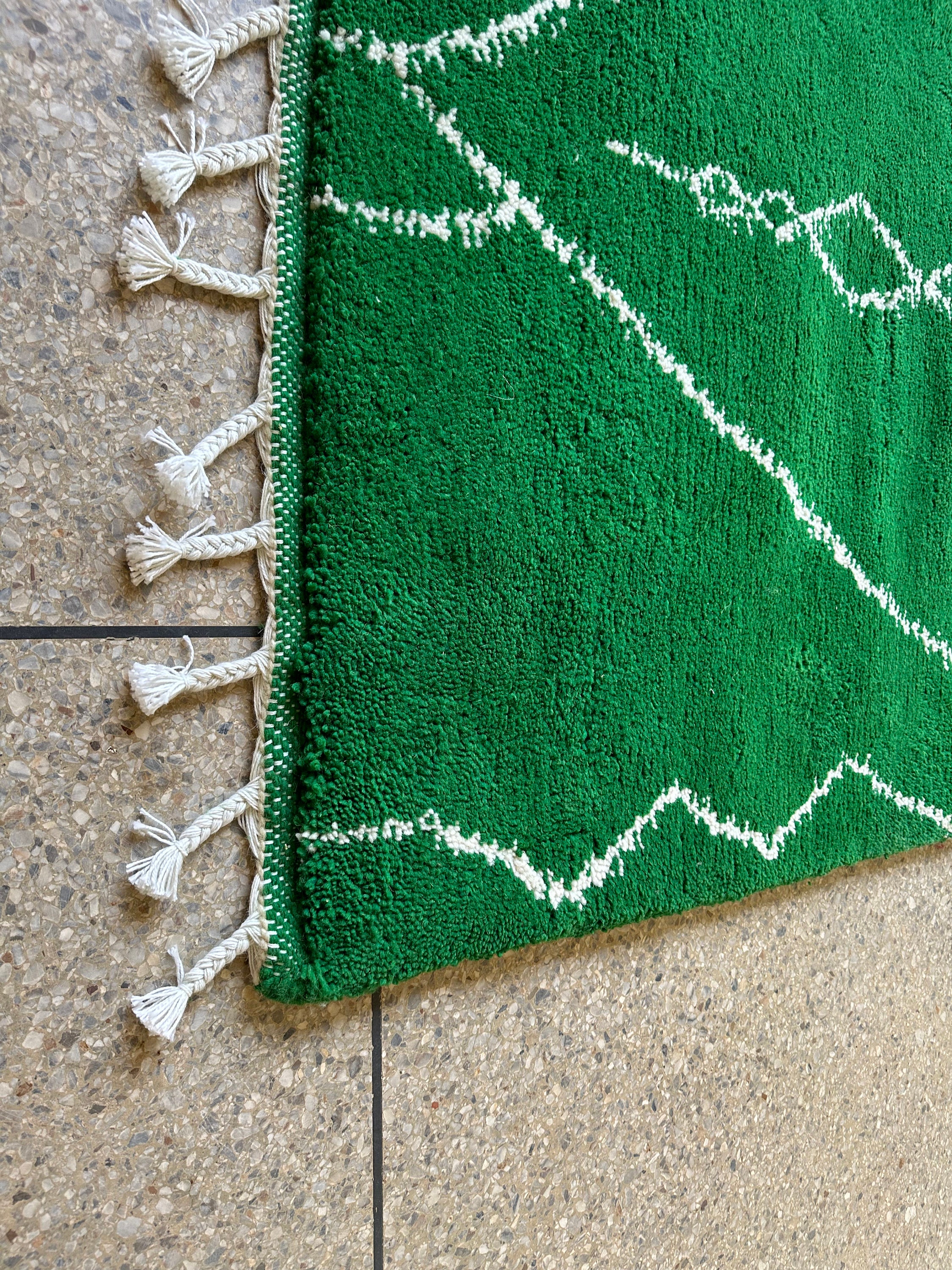 Bring a touch of artistic charm to your home with this stunning green and white abstract Beni Ourain rug! Expertly handwoven from 100% natural sheep wool, this Moroccan rug blends softness, durability, and authentic Berber craftsmanship. Its unique abstract design adds a vibrant yet elegant touch to bohemian and eclectic interiors. Perfect for your living room, bedroom, or any cozy space that needs a stylish upgrade. Elevate your decor with this one-of-a-kind handmade masterpiece!
