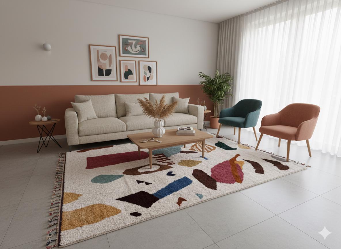 "Transform your home with a piece of Moroccan heritage that exudes both elegance and warmth 🌟. Whether placed under your sofa 🛋️, in your bedroom 🛏️, or even as a wall hanging 🖼️, these rugs invite a sense of history, style, and comfort 🧶✨. Explore our full collection of Beni Ourain, Azilal, and Boucherouite rugs for unique pieces that tell a story 📚💫."