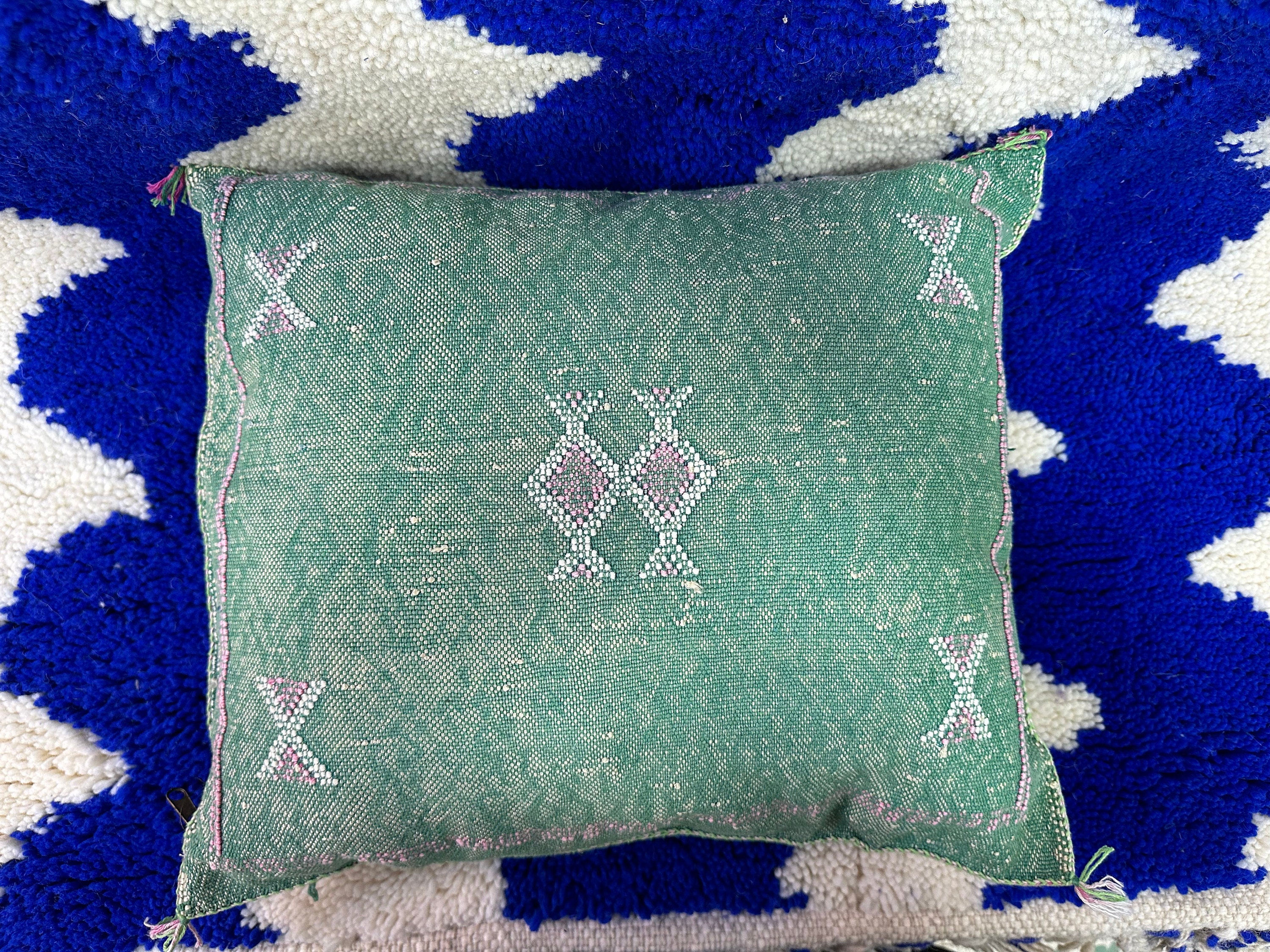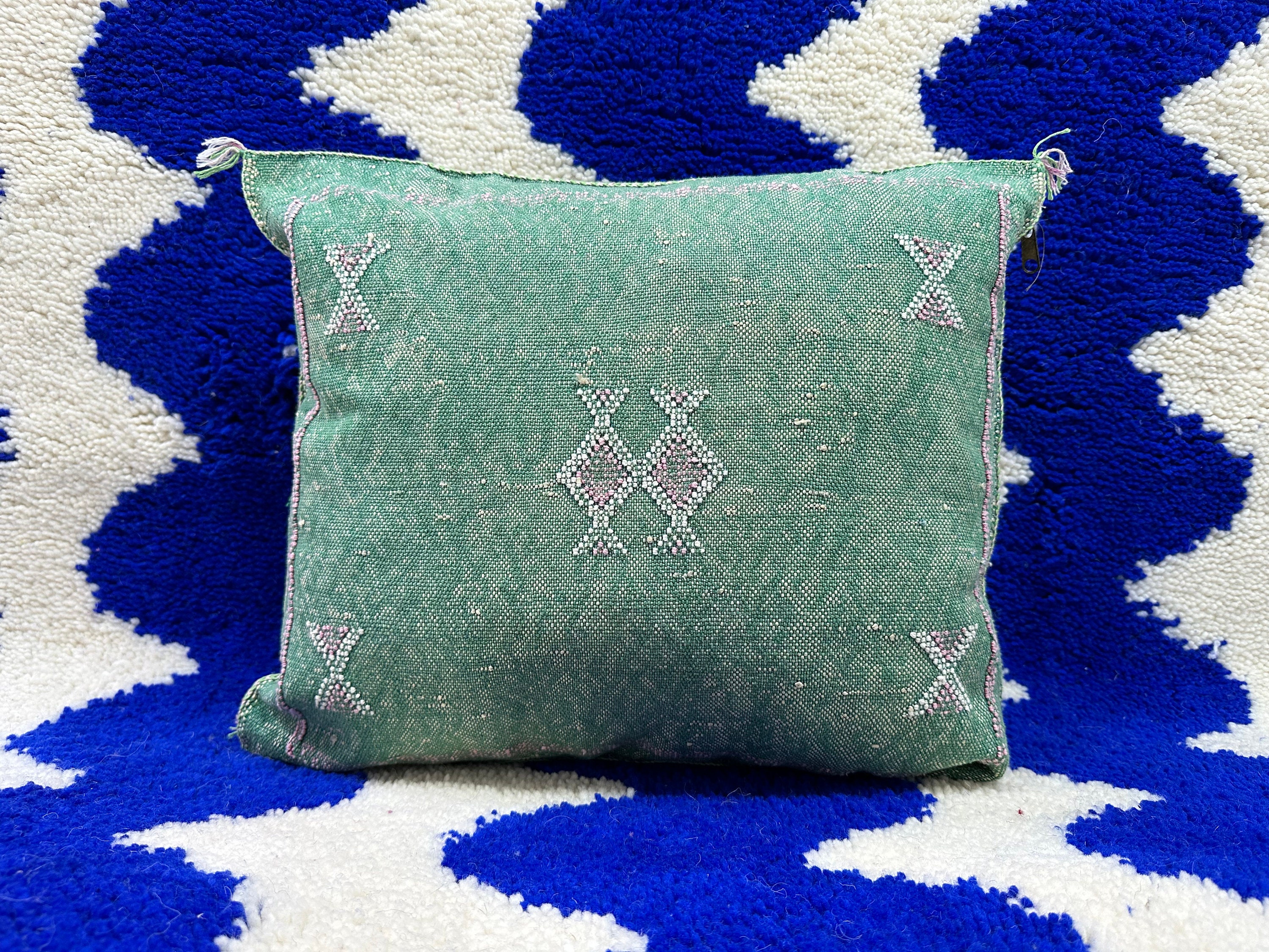 .LUXURIOUS GREEN CACTUS Silk Pillow- Aka Cactus Silk pillow- Sofa Cushion Handmade Textured Pillow- Moroccan Sabra Decorative, Tropical Home