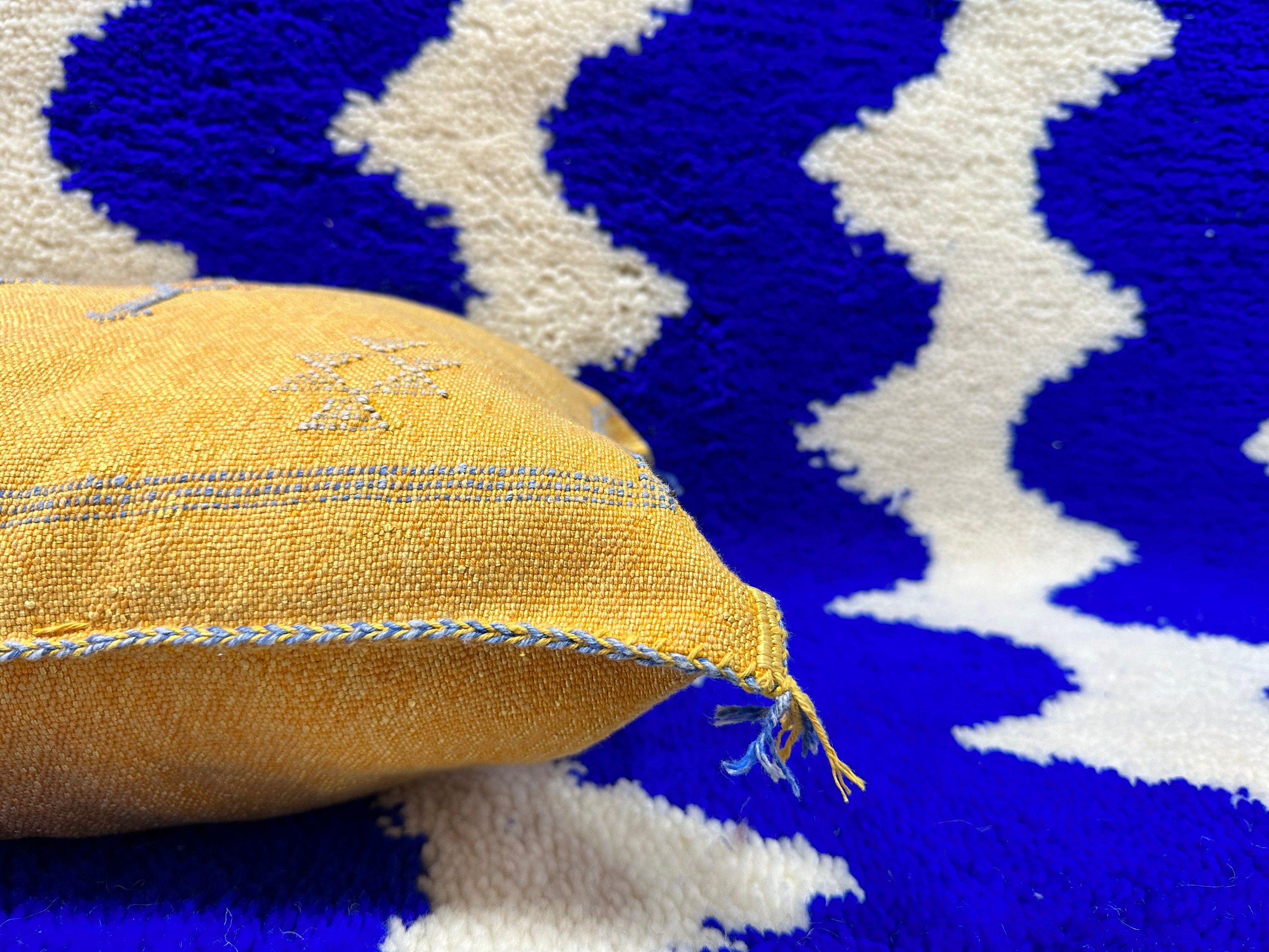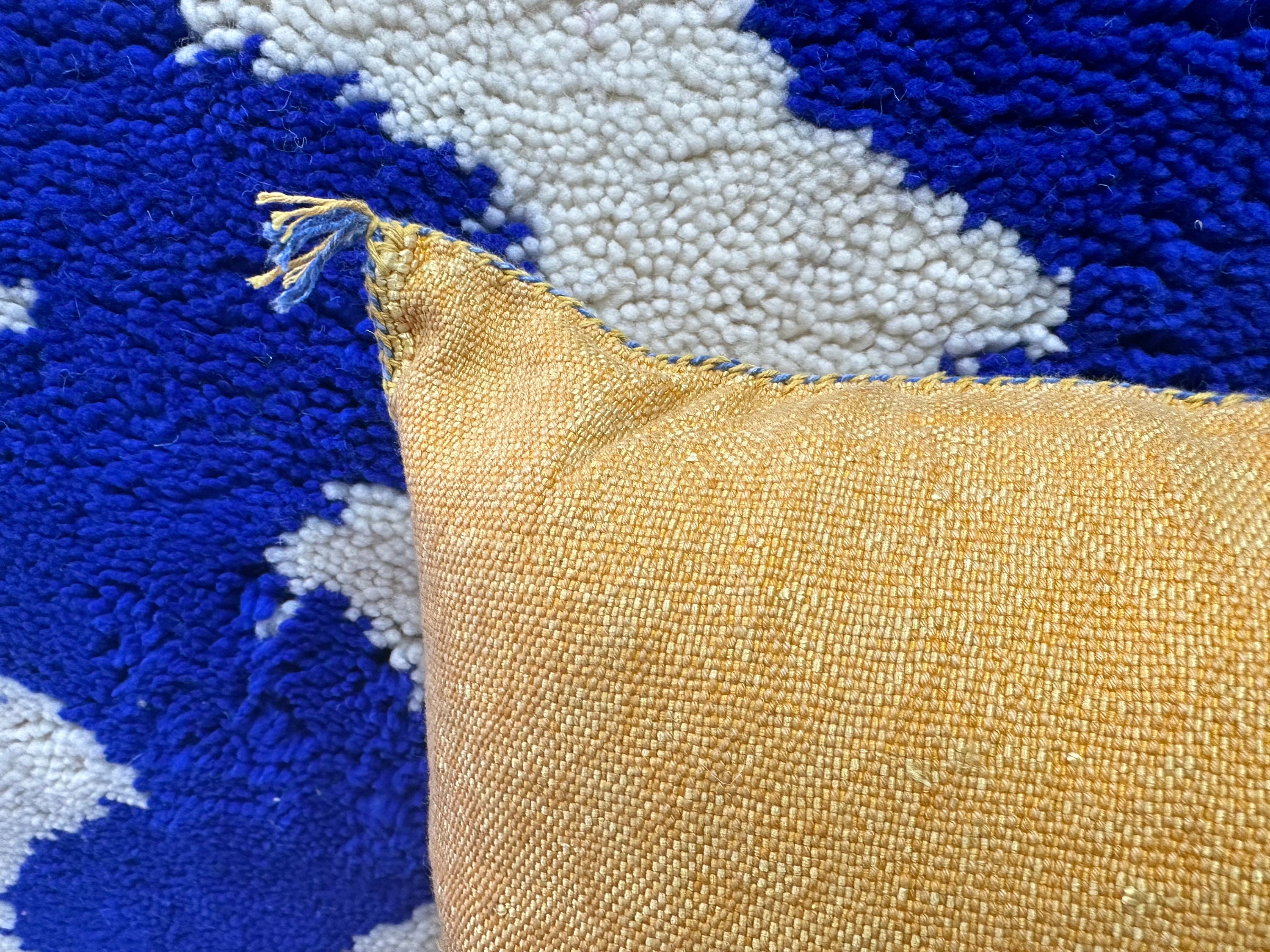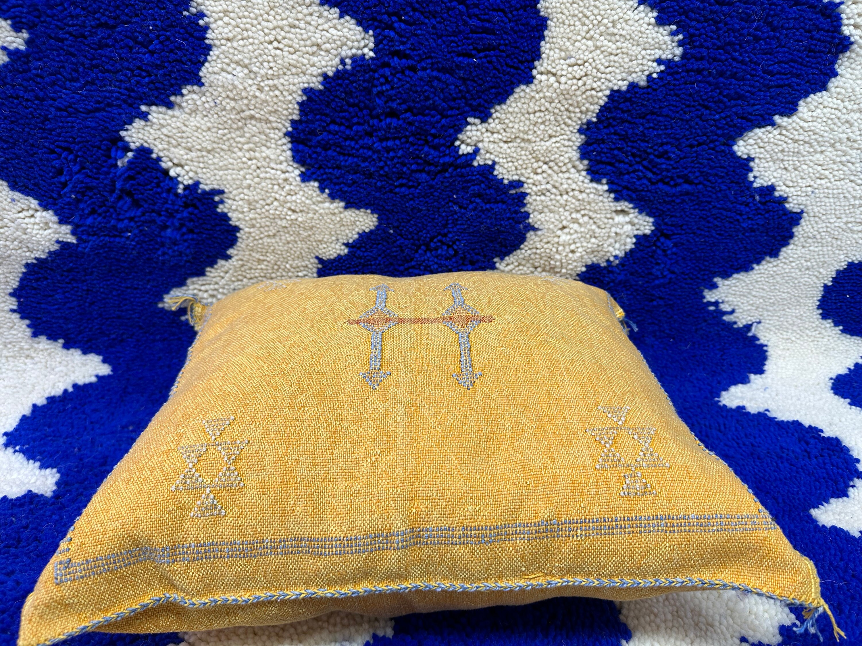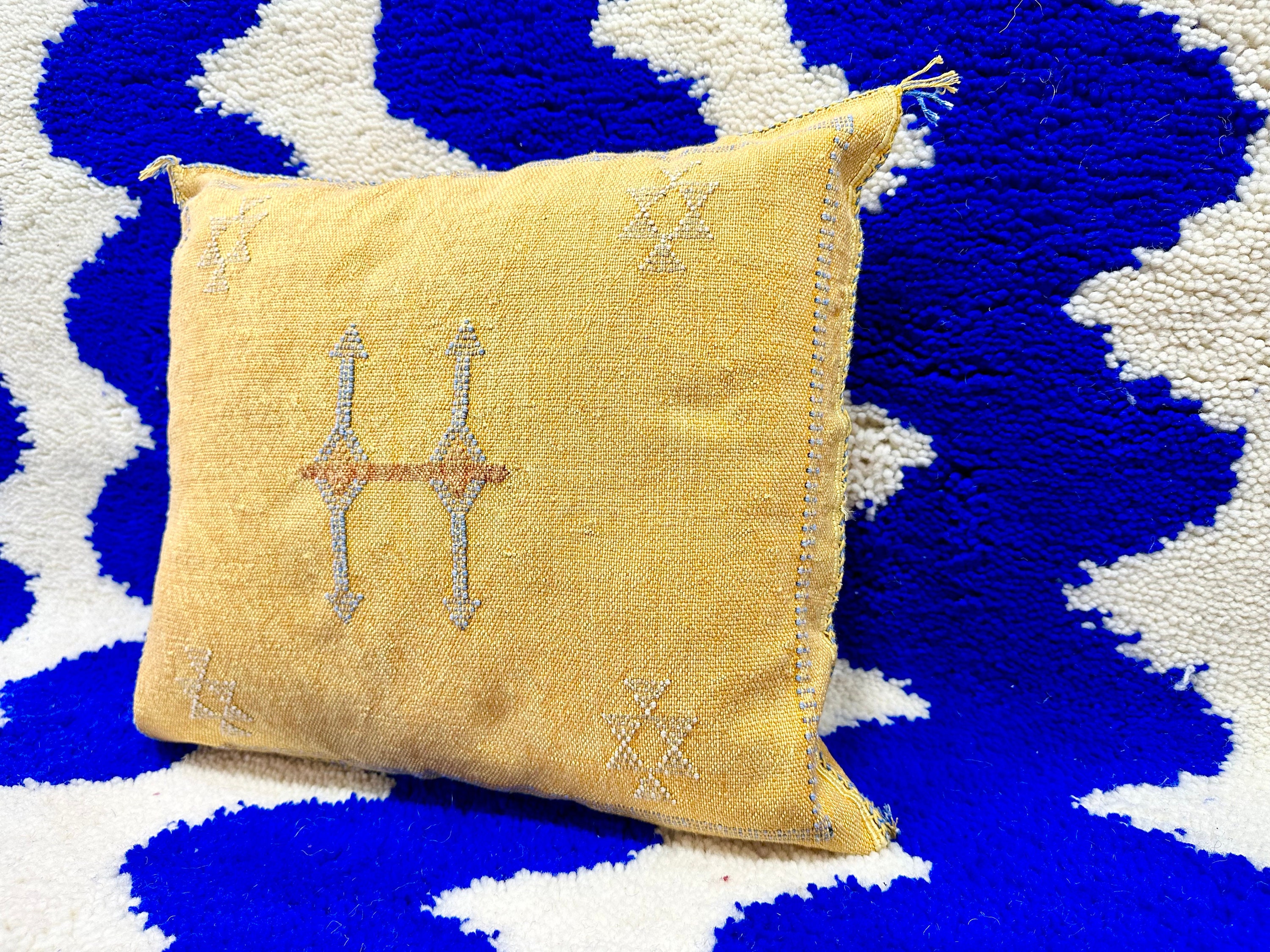 .CUTE Moroccan Sabra Pillow, Cactus Silk Pillow, Berber Pillow Silk, Yellow Sofa Cushion, Textured Pillow, Livingroom Pillow, Coastal Home