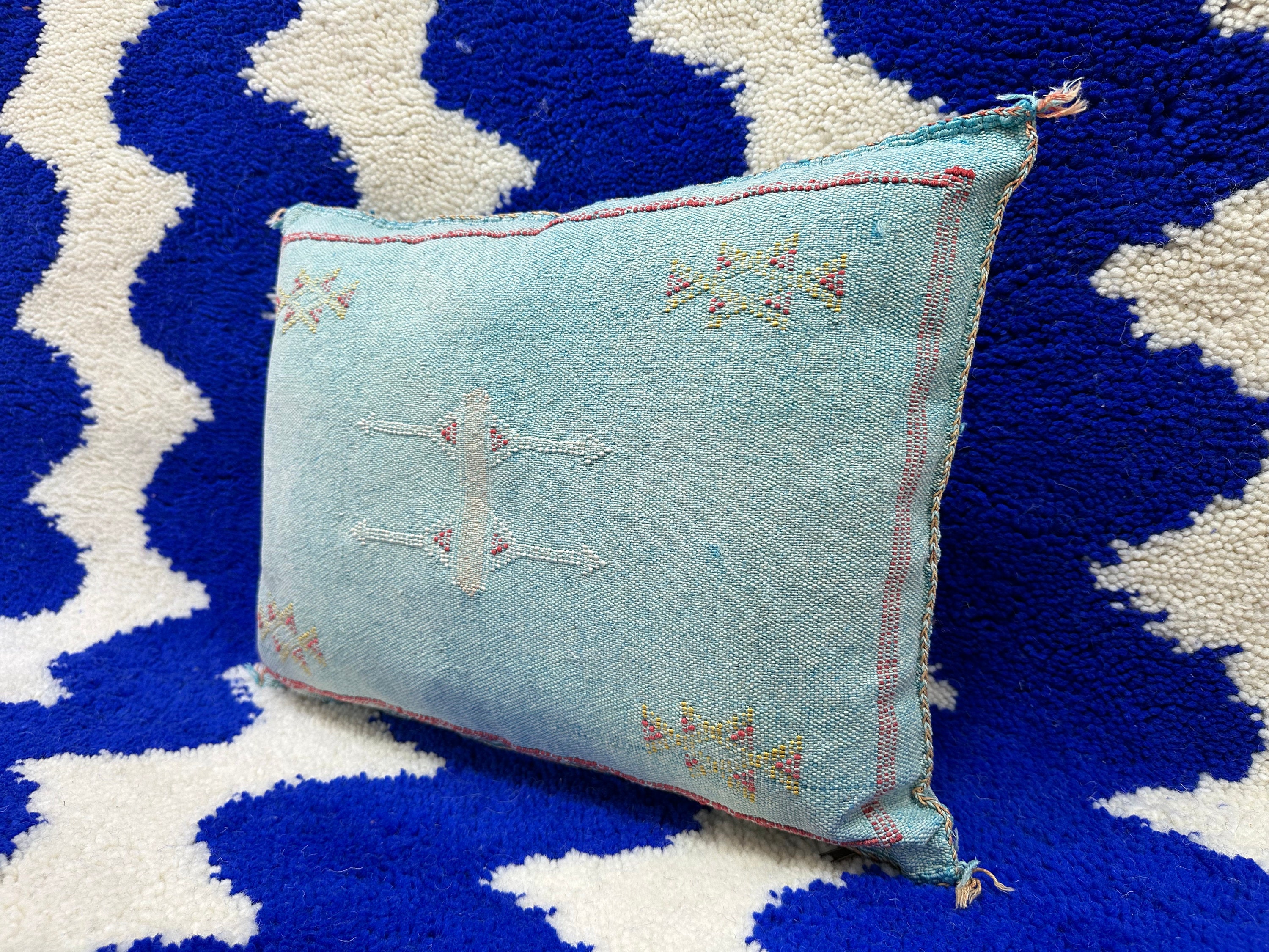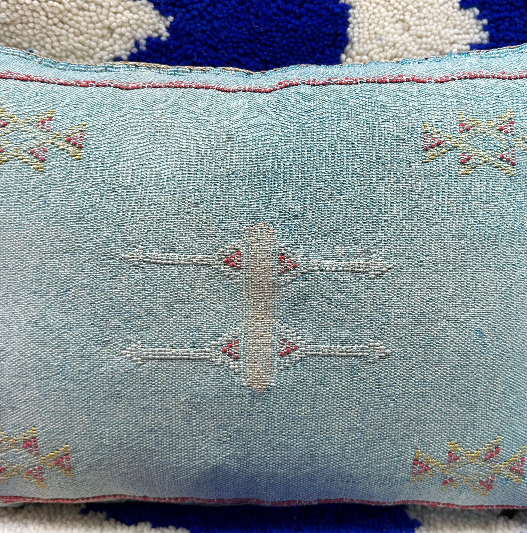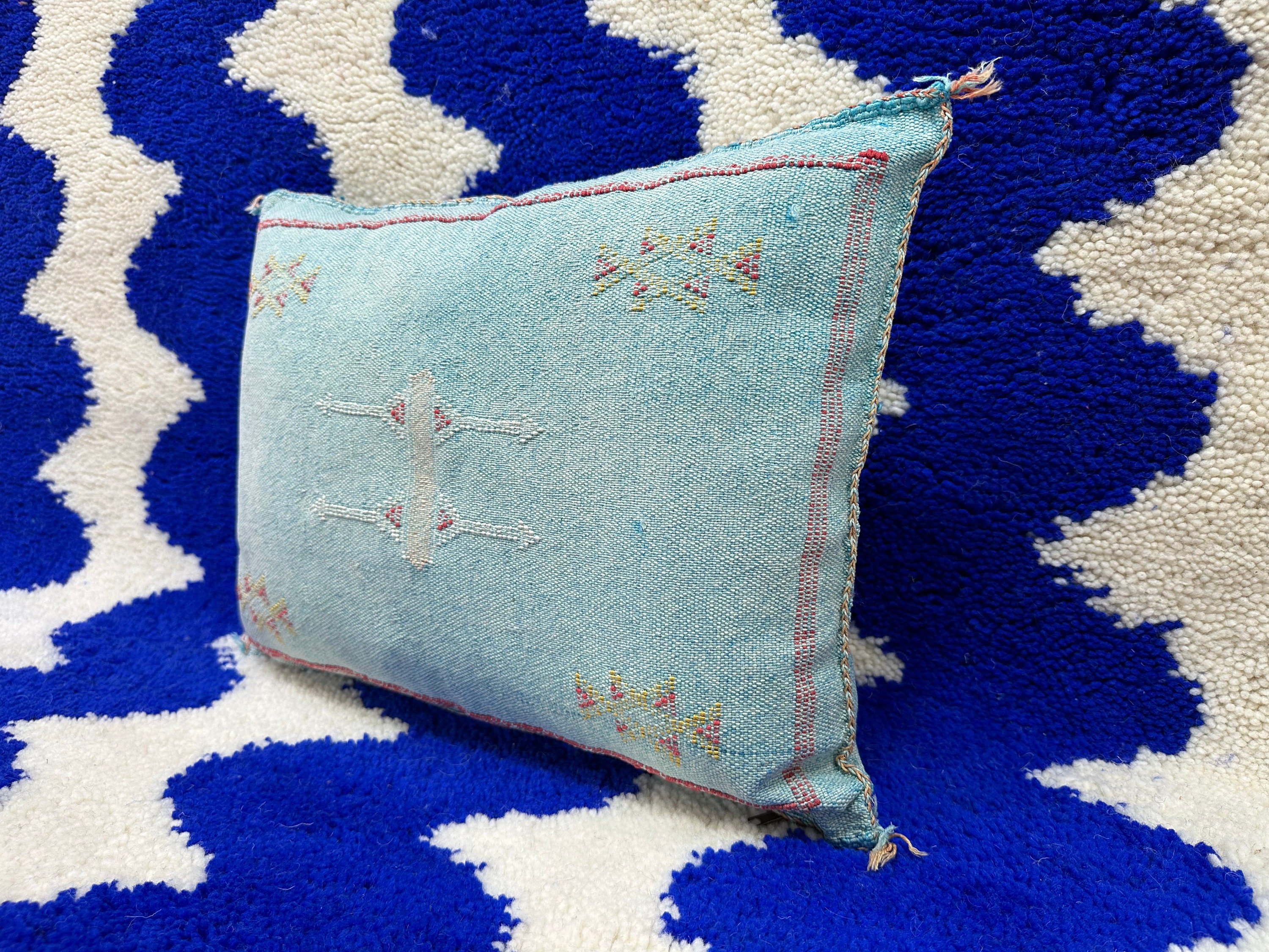 .Berber Pillow Silk, Sabra Silk Pillow Cover, Moroccan Silk Pillow, 15x20 Abstract Pillow, Washed Blue Bedroom Pillow, Bohemian HomeBlue