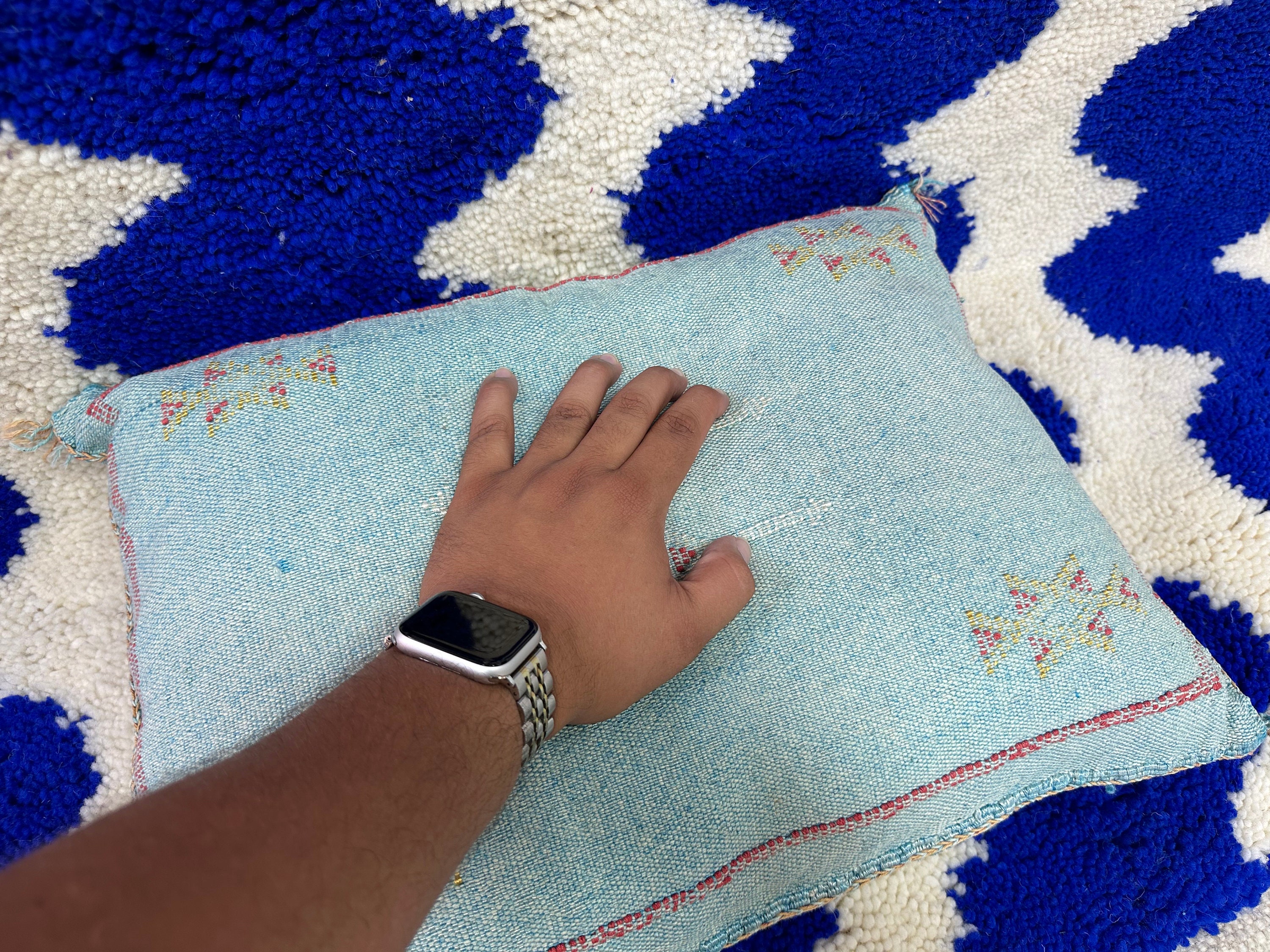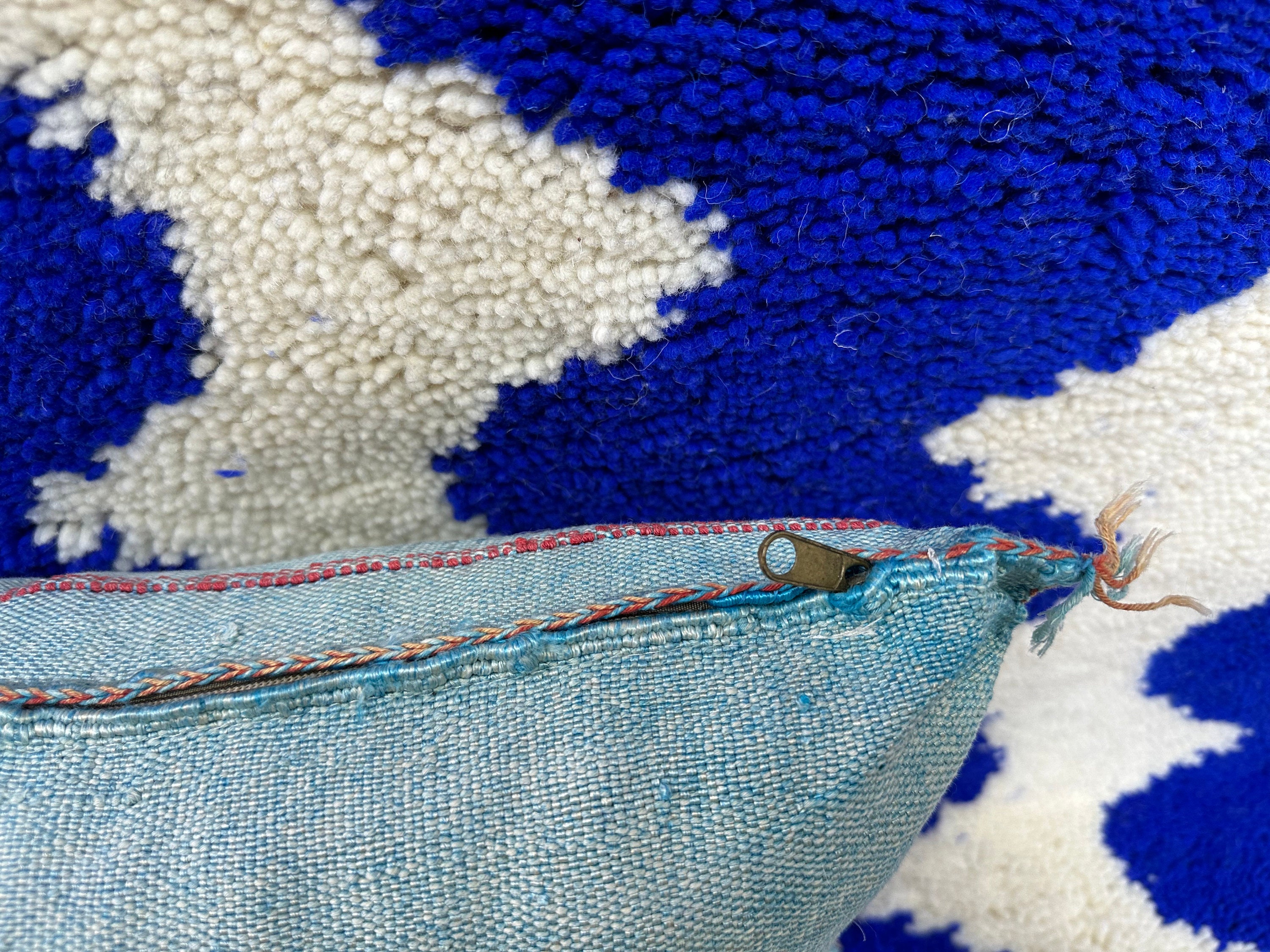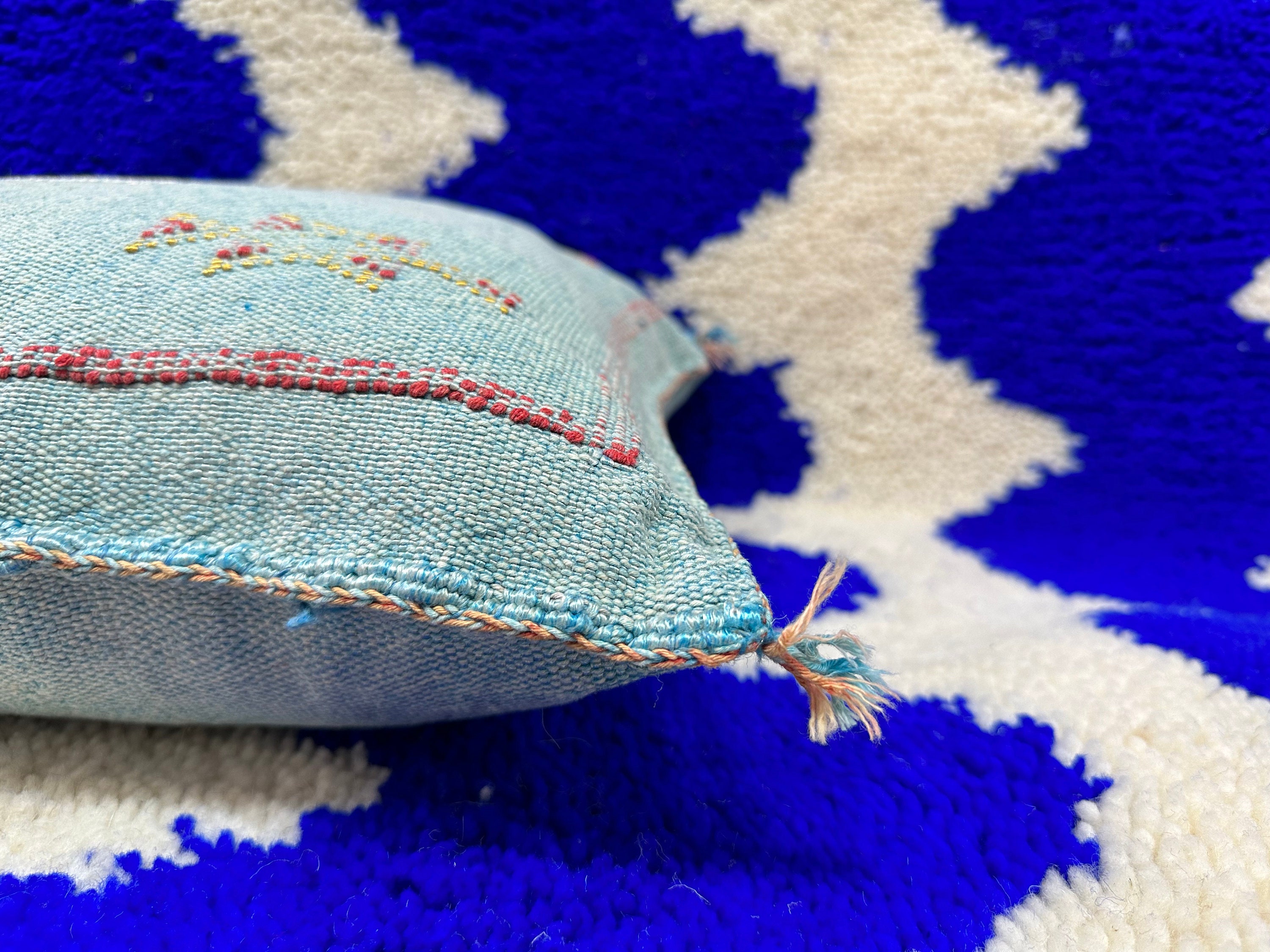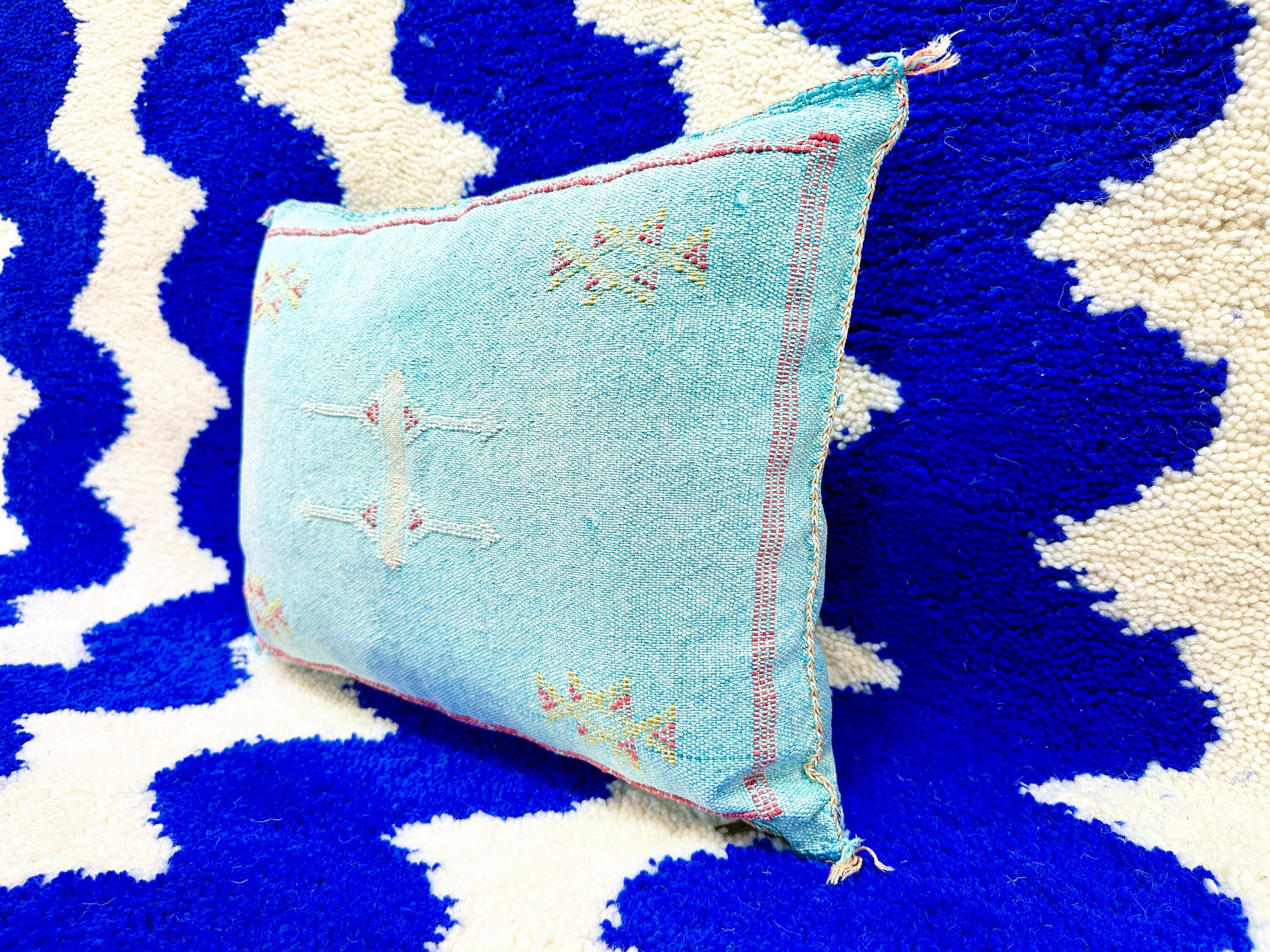.Berber Pillow Silk, Sabra Silk Pillow Cover, Moroccan Silk Pillow, 15x20 Abstract Pillow, Washed Blue Bedroom Pillow, Bohemian HomeBlue
