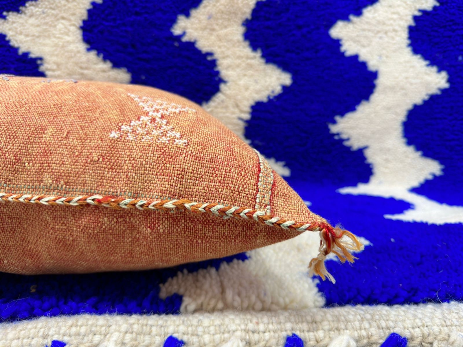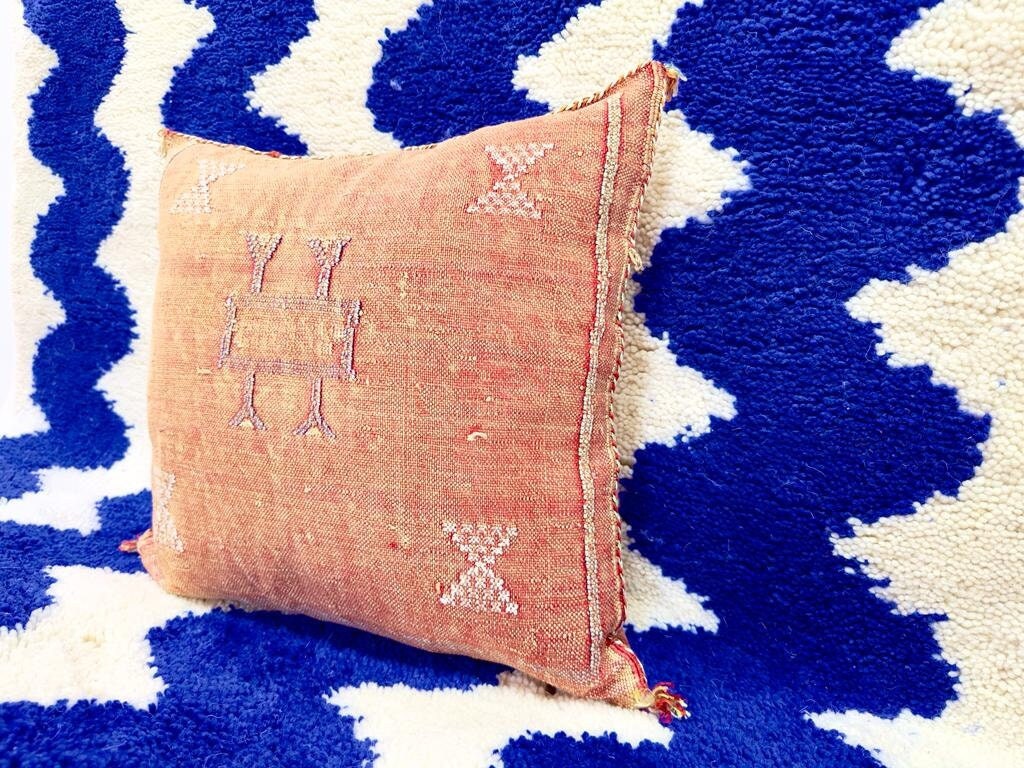 .Orange Pillows silk 19x18, Pillow Cactus Silk, Burnt Lumbar Cushion Handmade Silk Decorative Pillow, Moroccan Sabra Decorative Cushion
