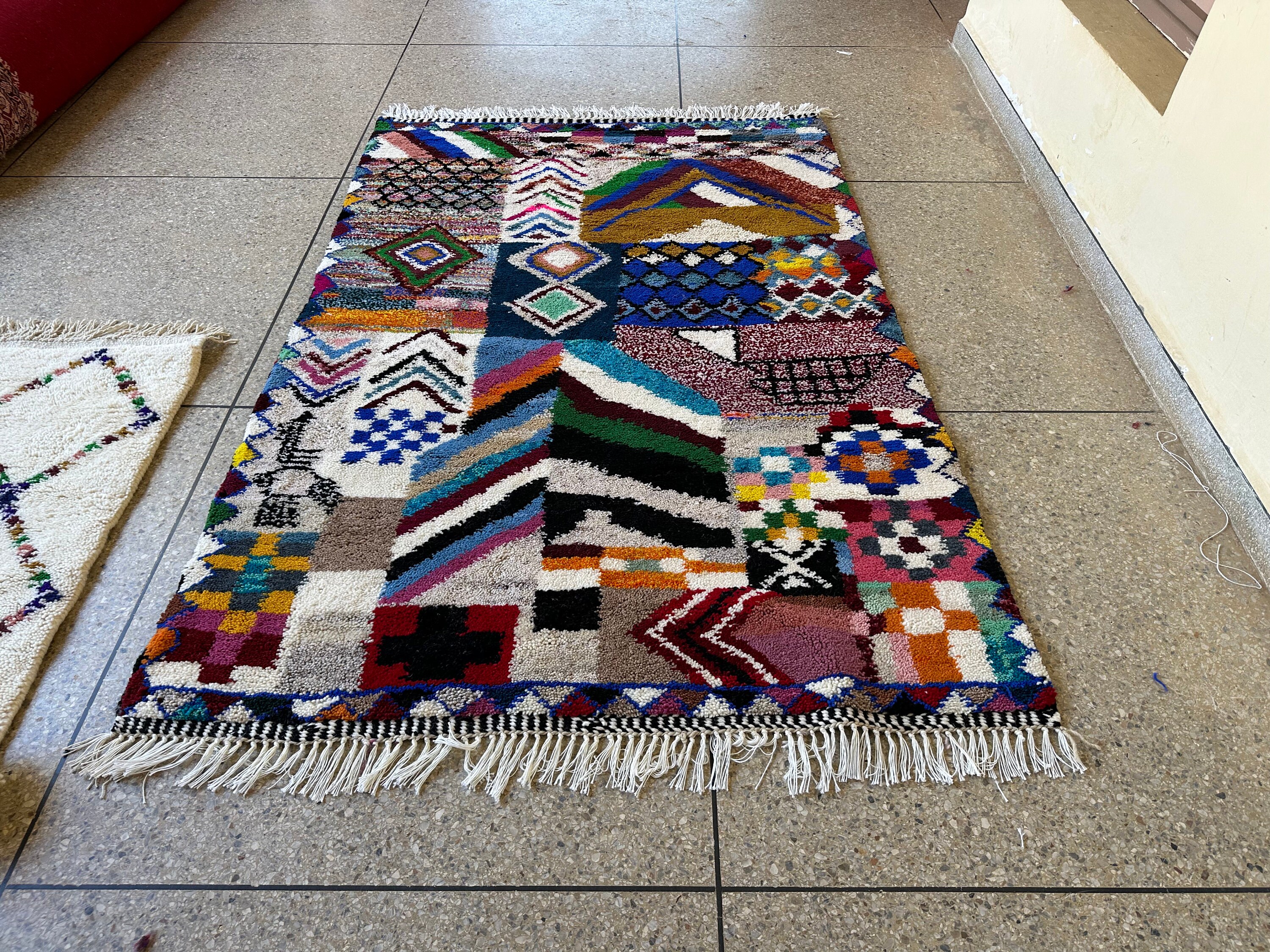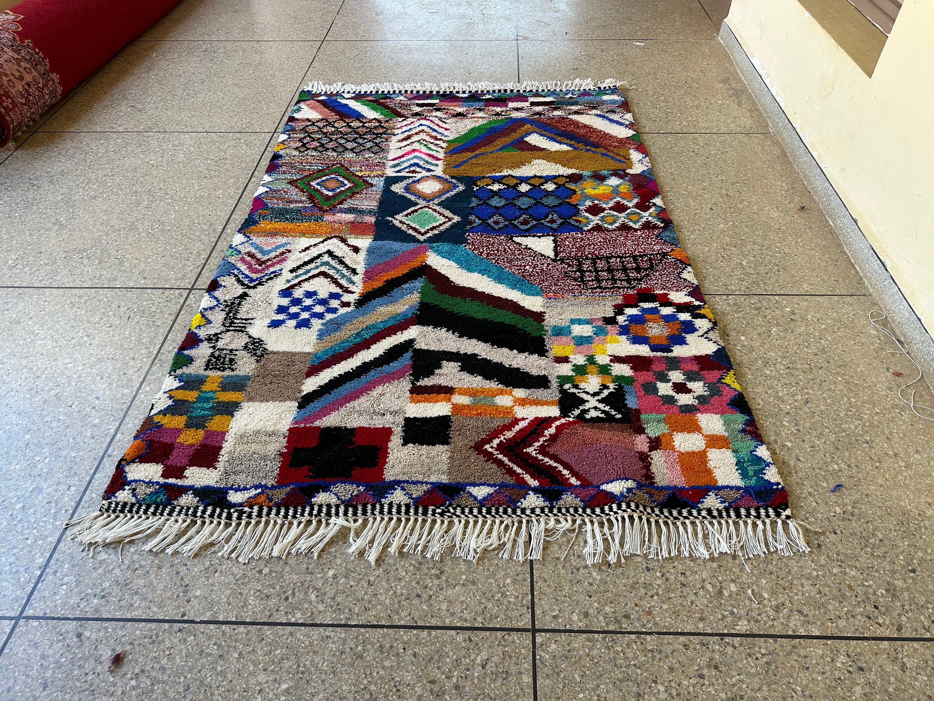 STYLISH HANDMADE CARPET, Moroccan Colorful Rug 7x4, Beniourain Multicolor Rug, Handwoven Area Rug, Patchwork Wool Rug, Berber Rug.