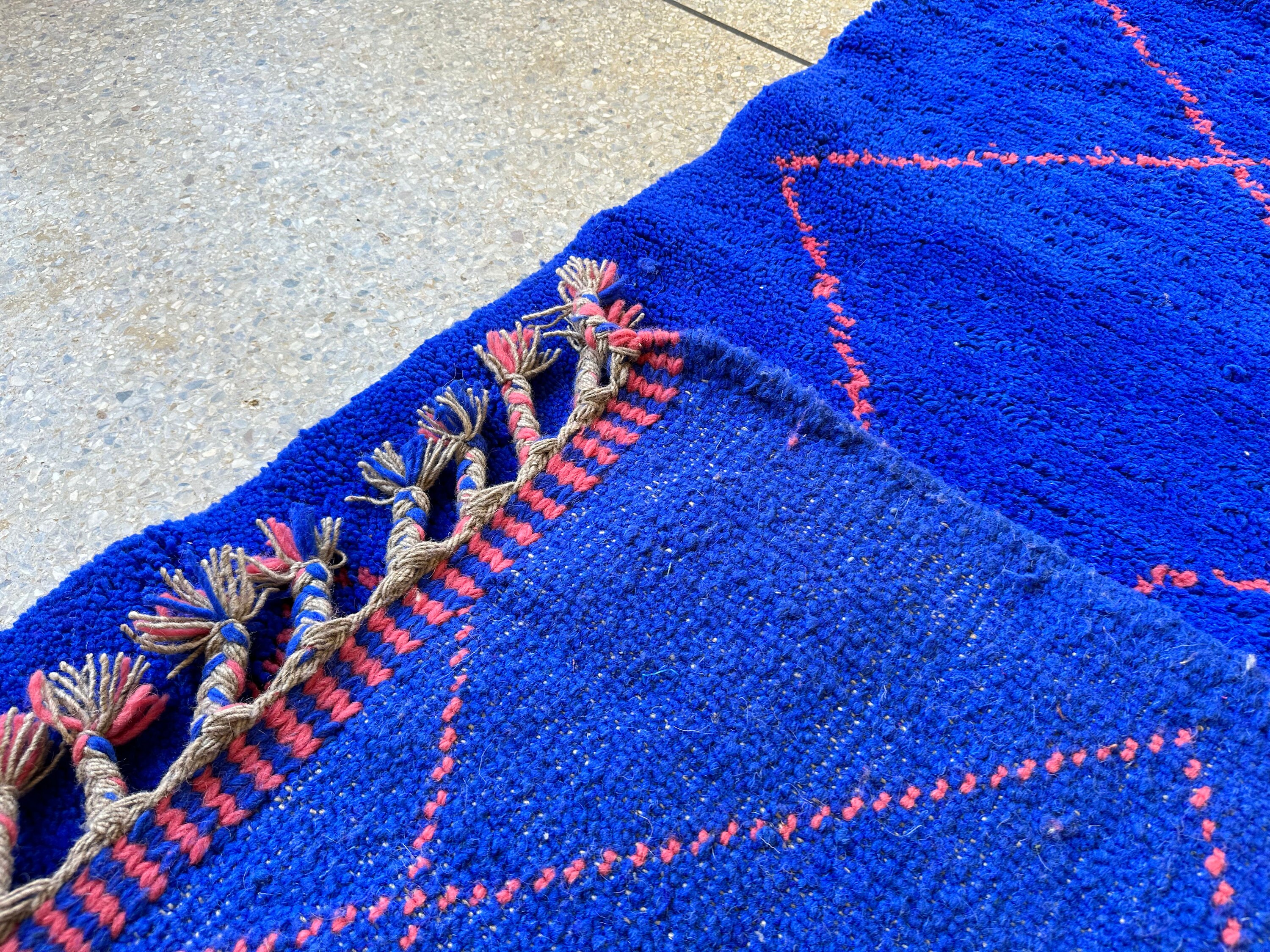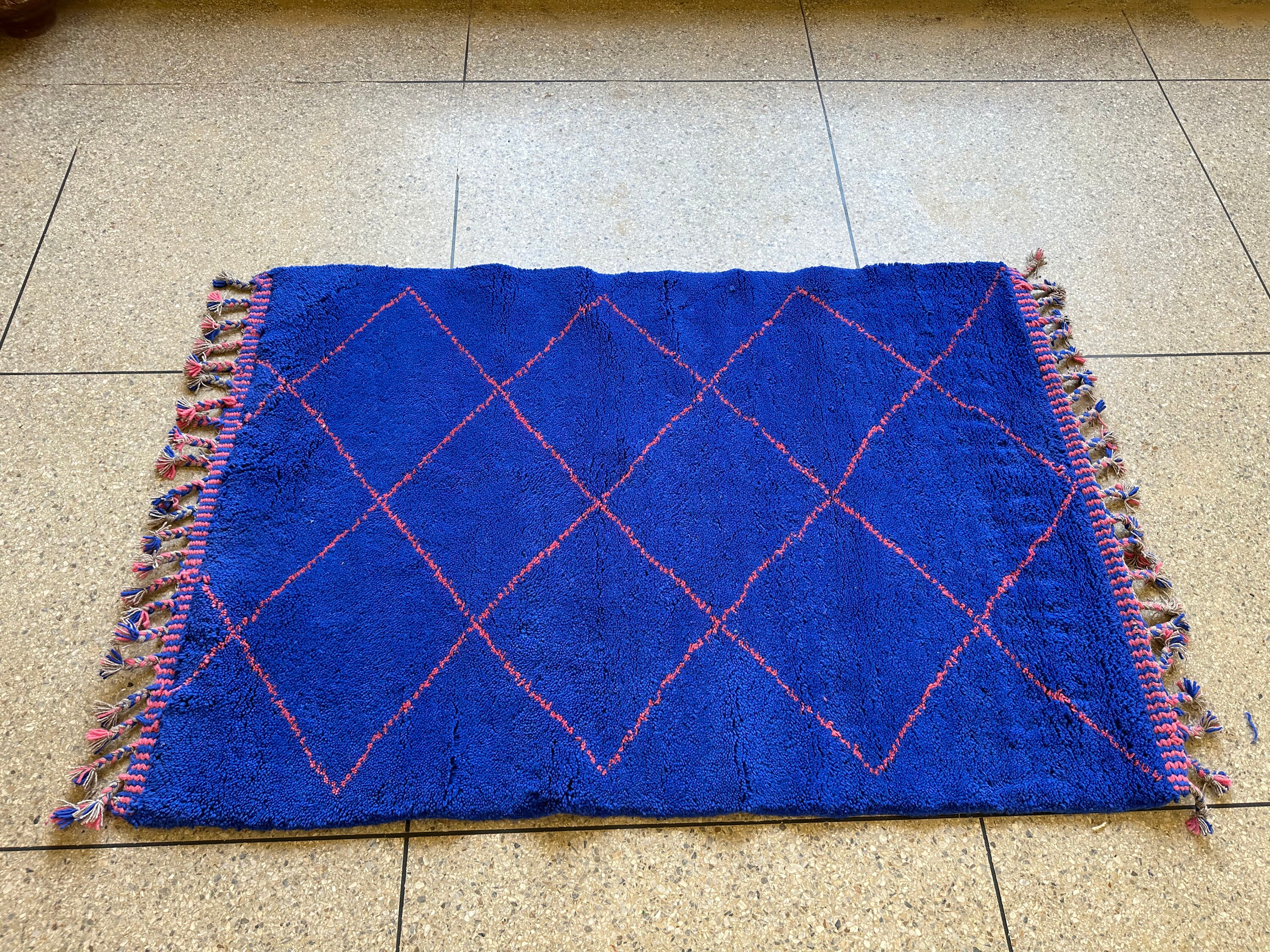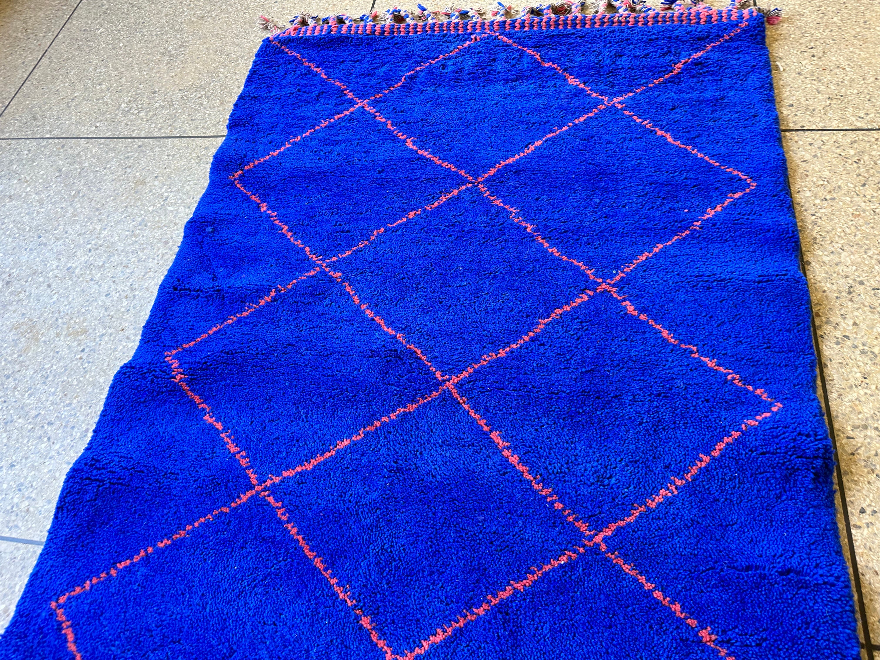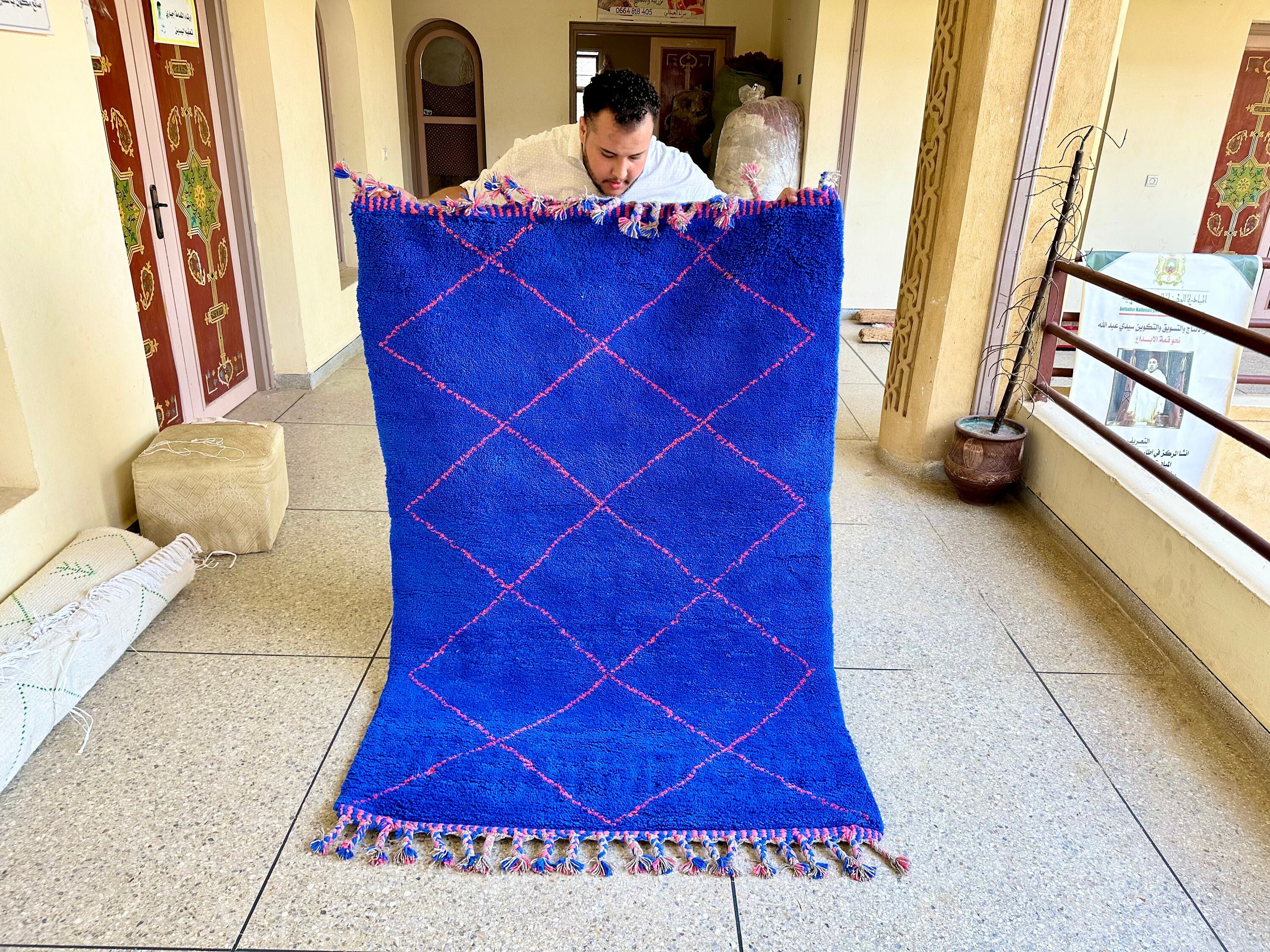 .BLUE OCEAN RUG, Amazing Abstract Area Rug For Your Living Room, Handmade Form Royal Blue Wool of Sheep, Inspired From Berber Nomadic Tribes