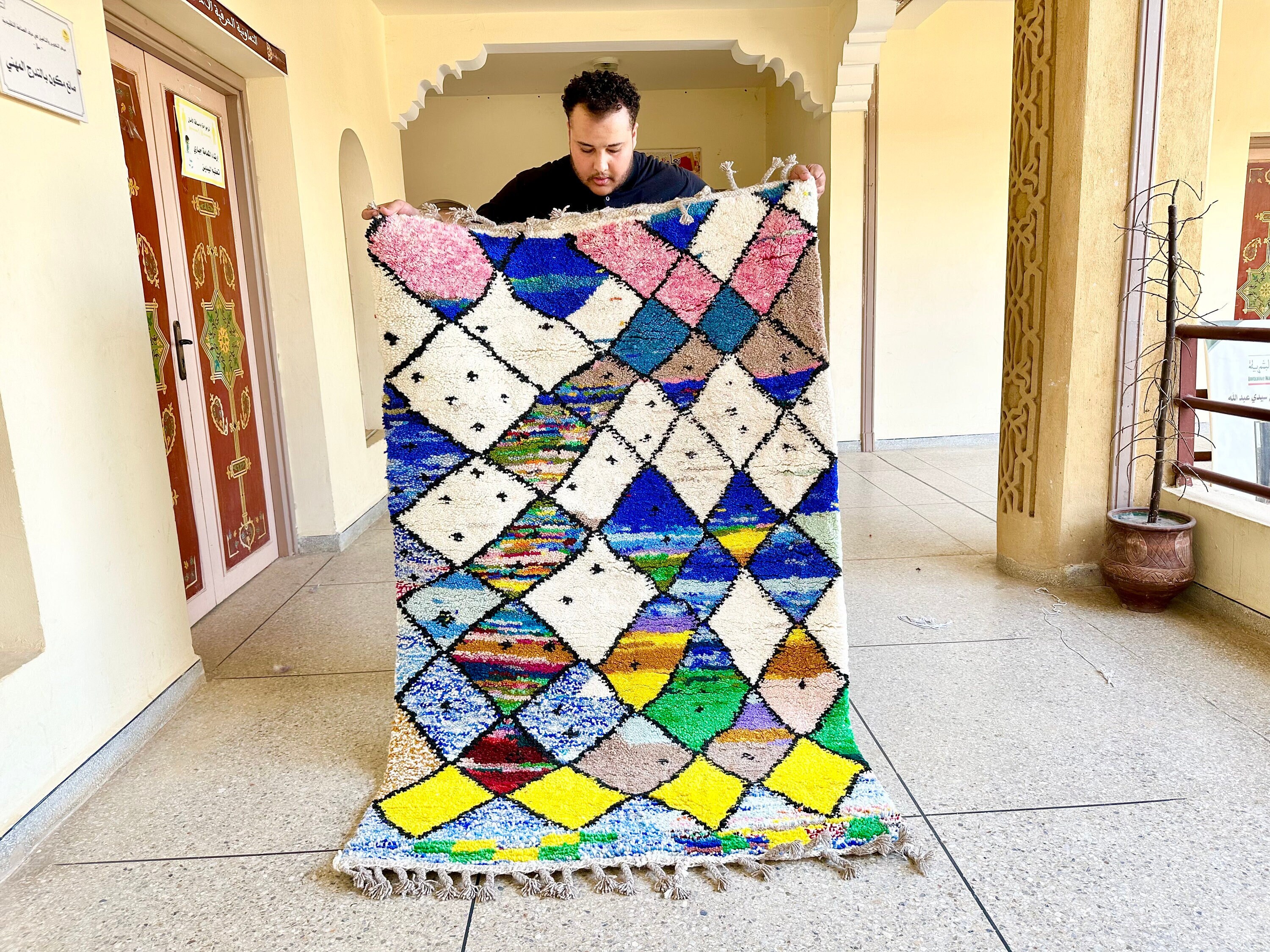 .CUTE BENI OURAIN Rug, Moroccan Rug 6x3.9FT, Berber Carpet, Abstract Multicolored Rug, Handmade Rug, Sheep Wool Rug, colorful Moroccan Rug