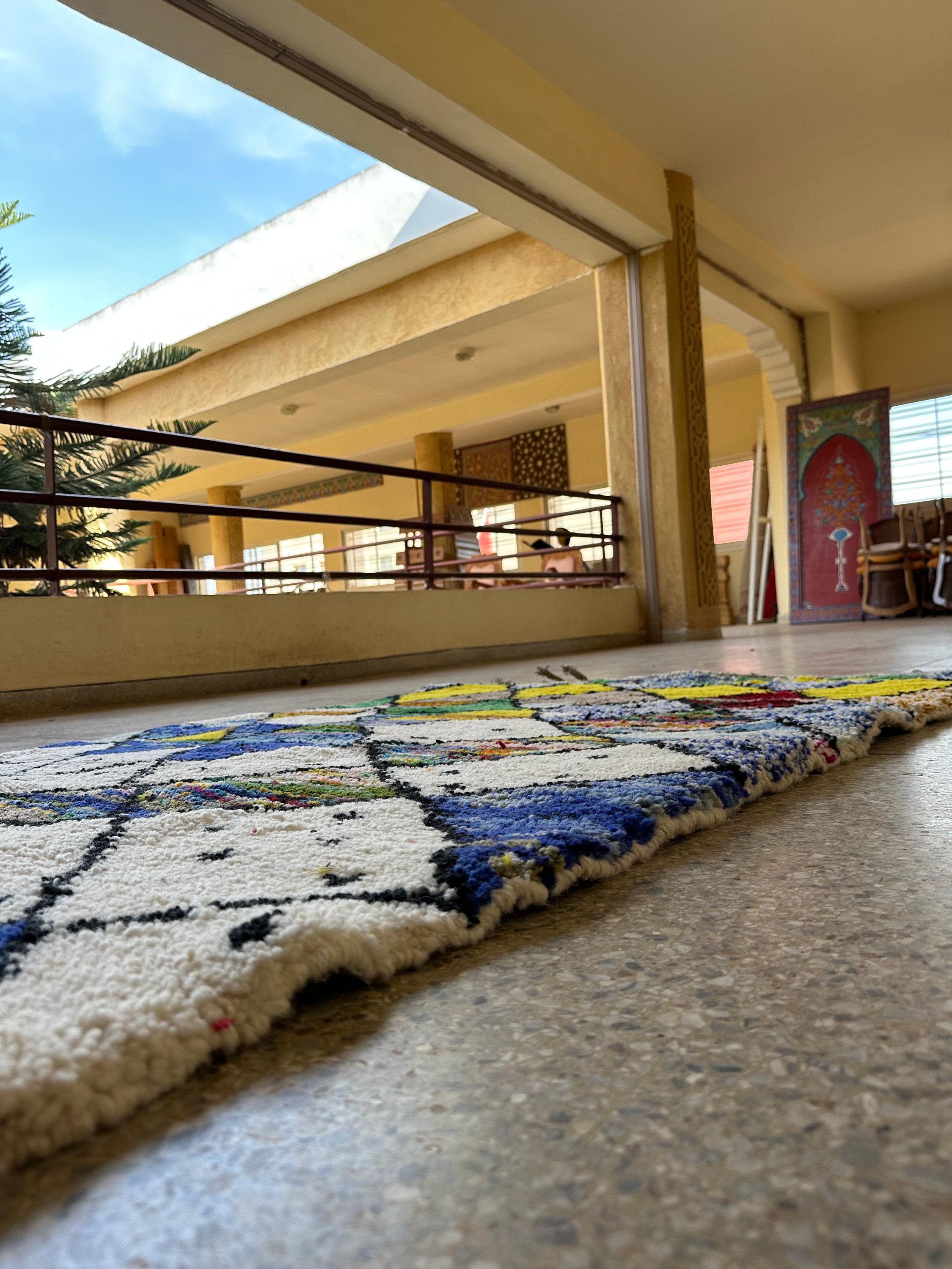 This fabulous Moroccan Rug that will give your room both a cozy feeling and stylish is made from 100% Natural sheep wool, It's Very plush and comfy to walk on, actually It's Heaven for your feet.