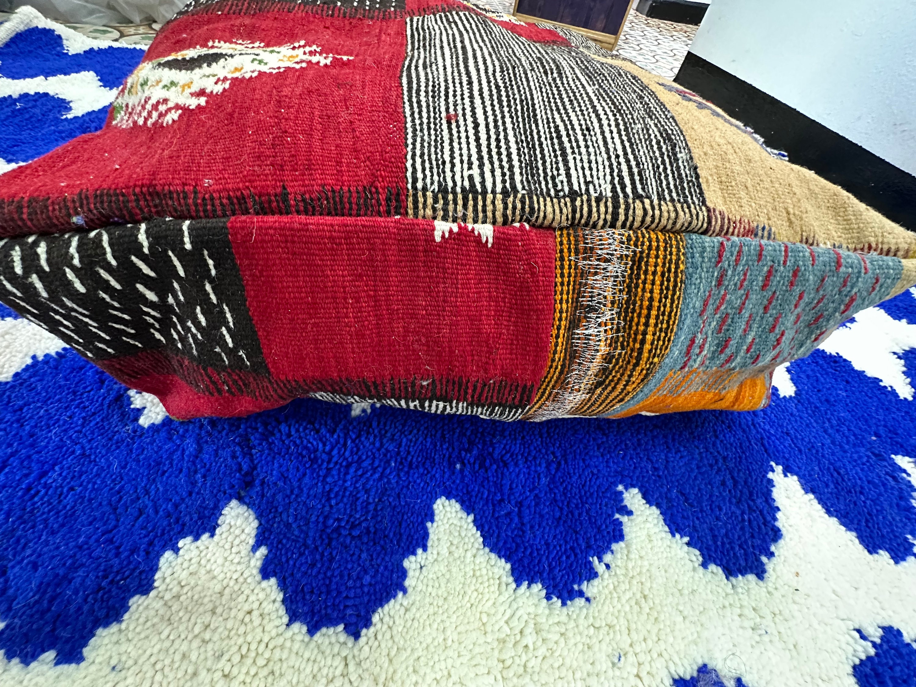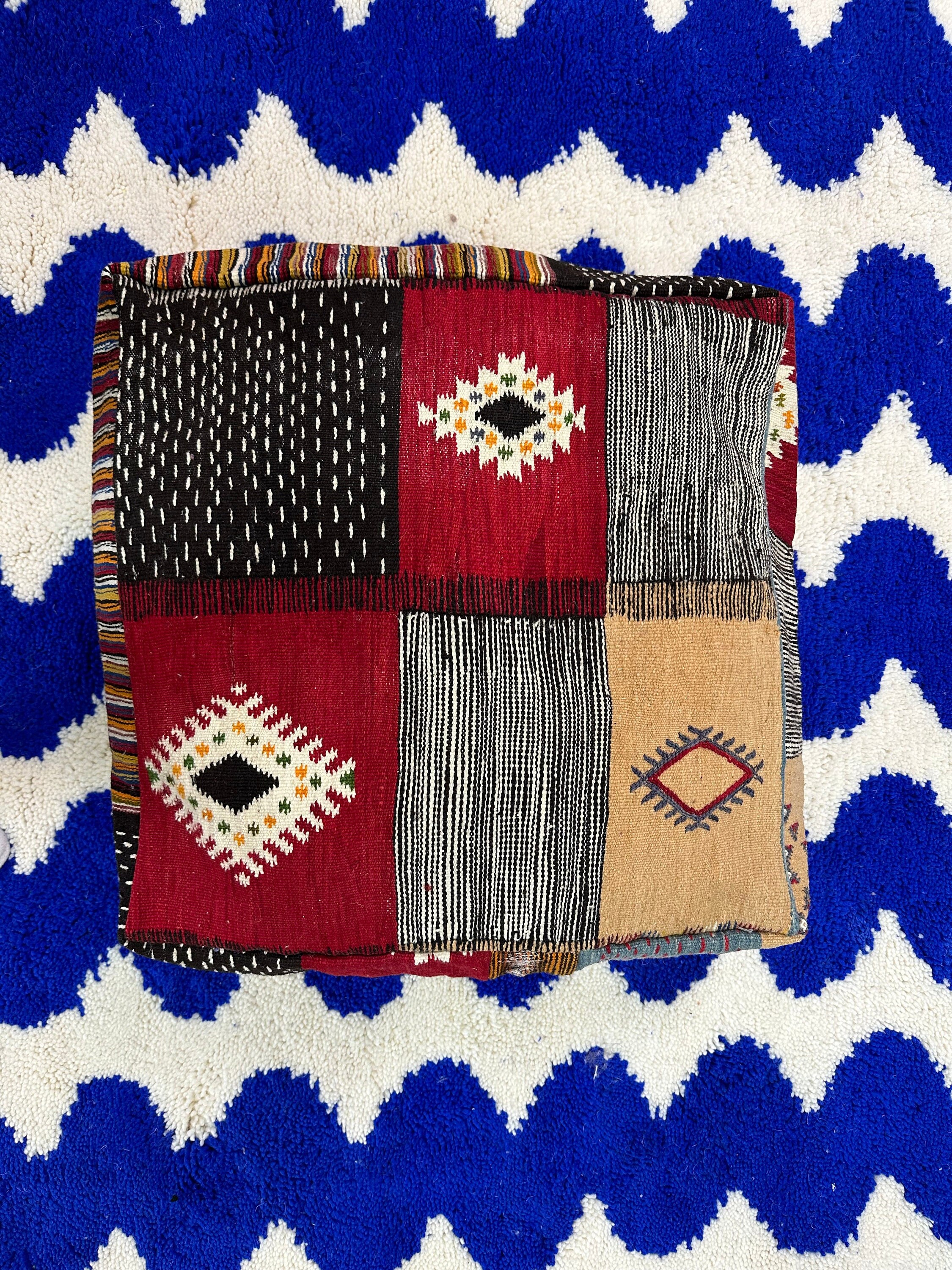 .Moroccan Kilim Pouf, Floor Pouf, Vintage Moroccan Ottoman, Beni Ourain Square Pouf, Yoga Meditation Cushion, Outdoor Red Kilim Pillows