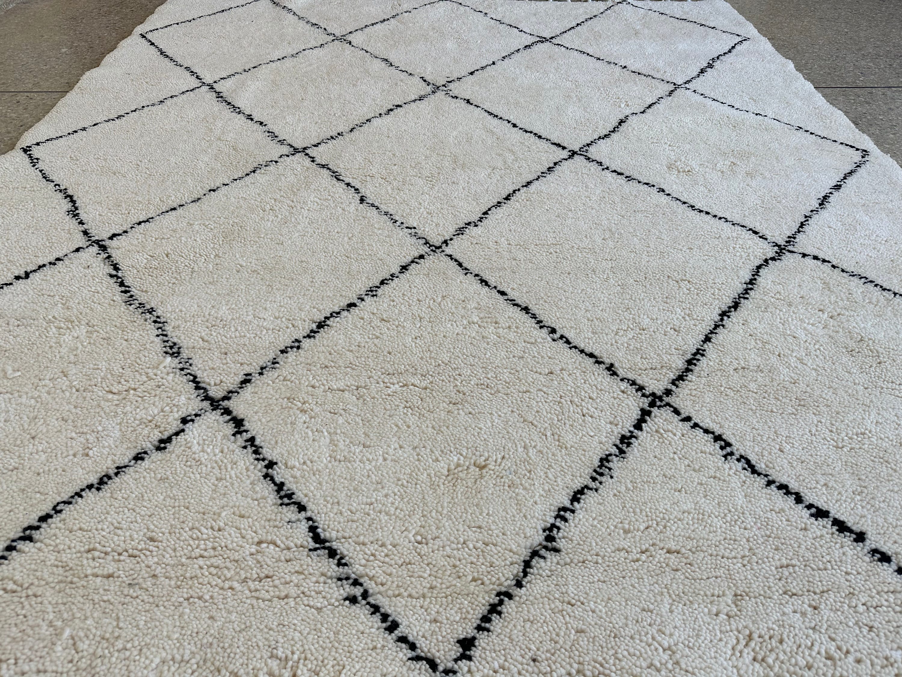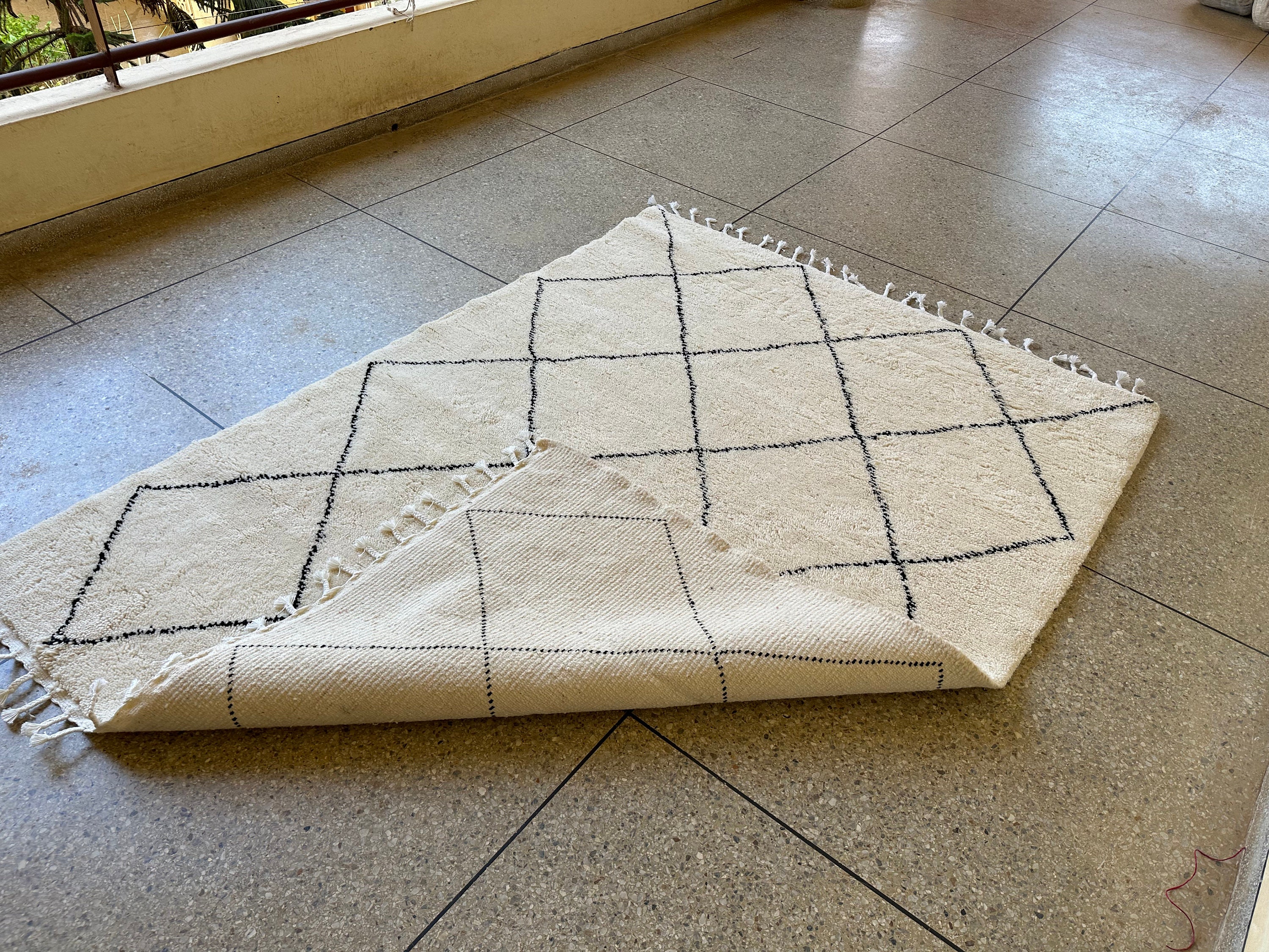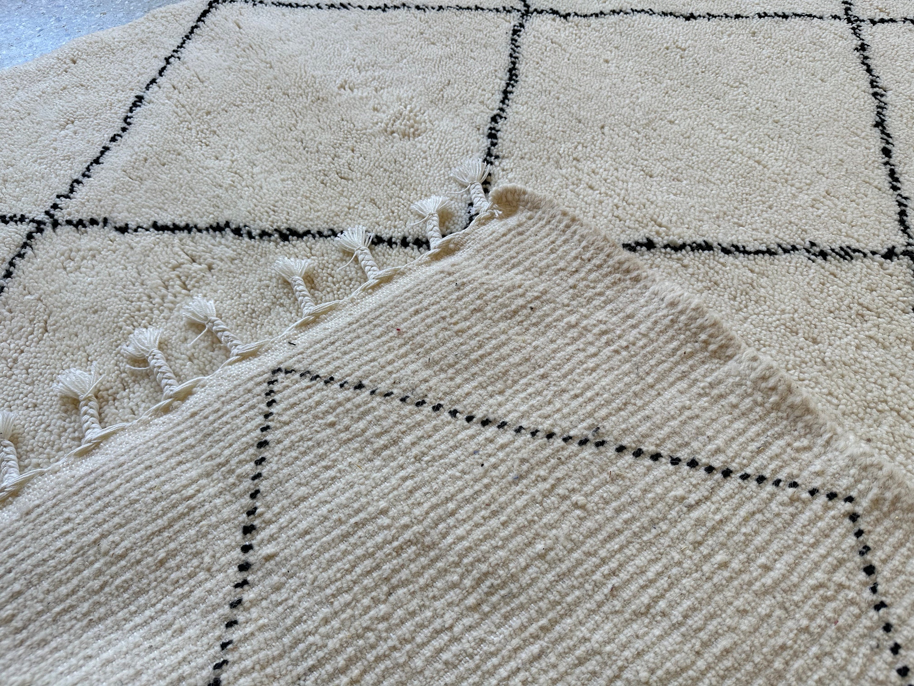 This fabulous Moroccan Rug that will give your room both a cozy feeling and stylish is made from 100% Natural sheep wool, It's Very plush and comfy to walk on, actually It's Heaven for your feet.