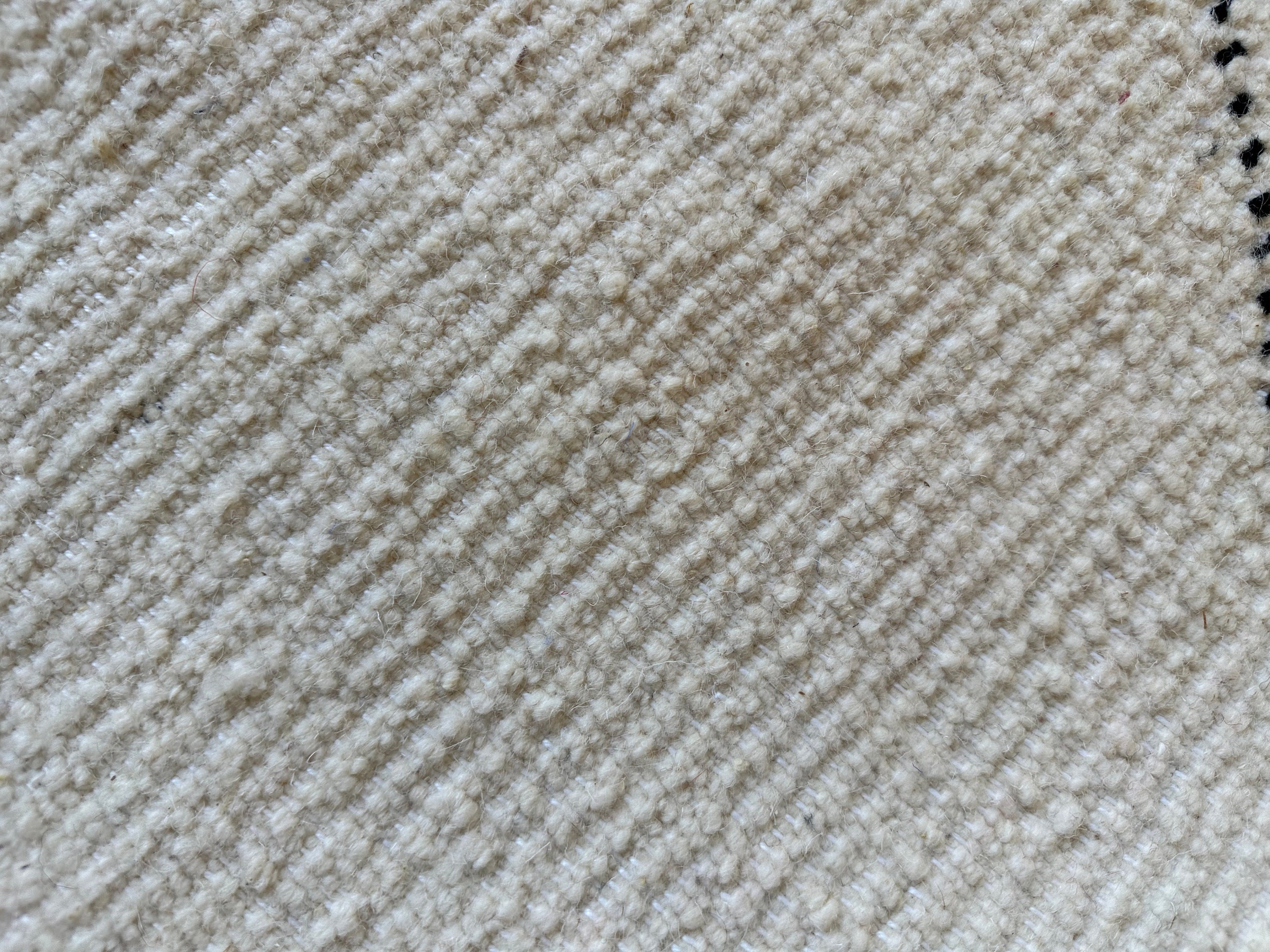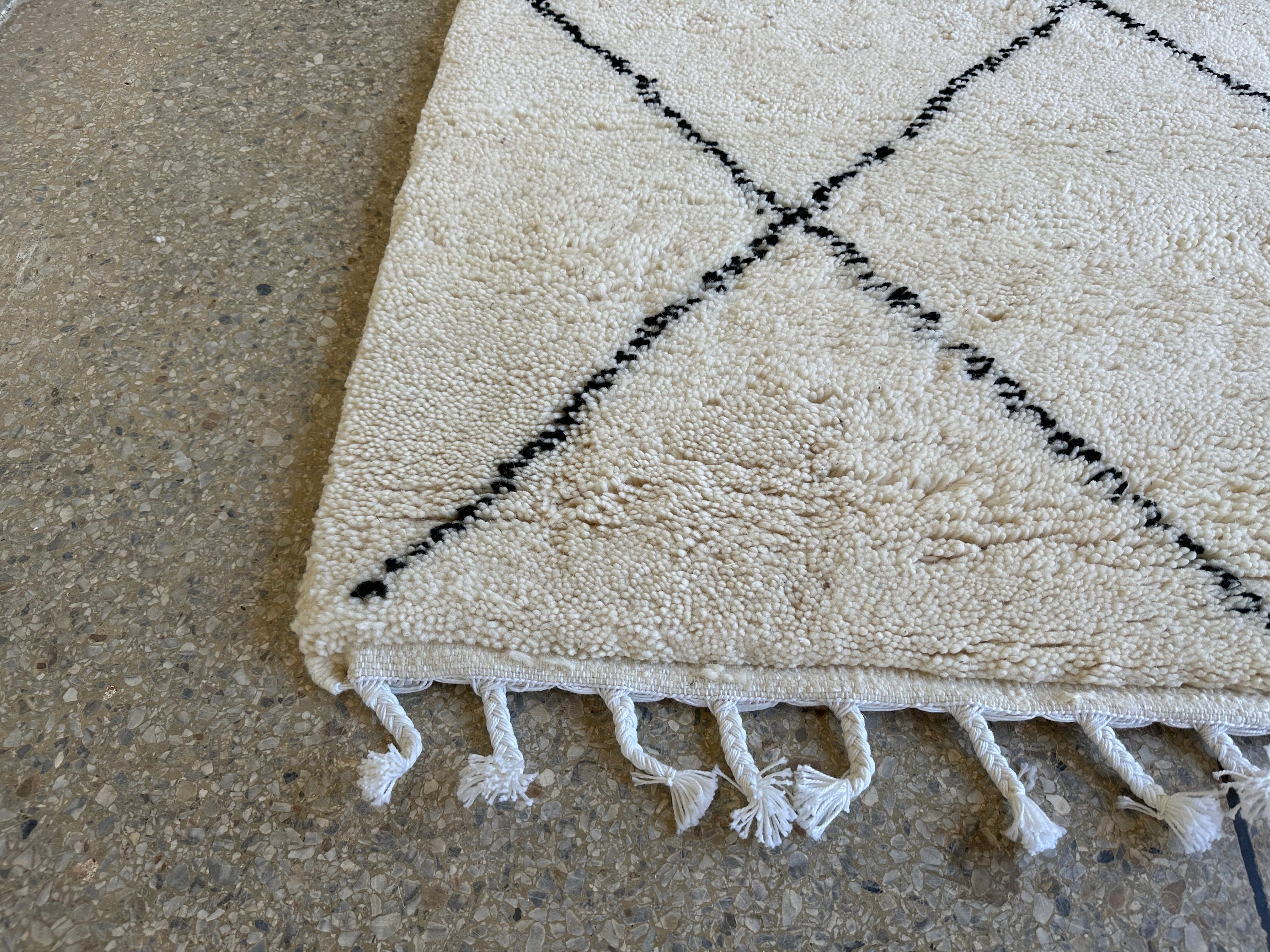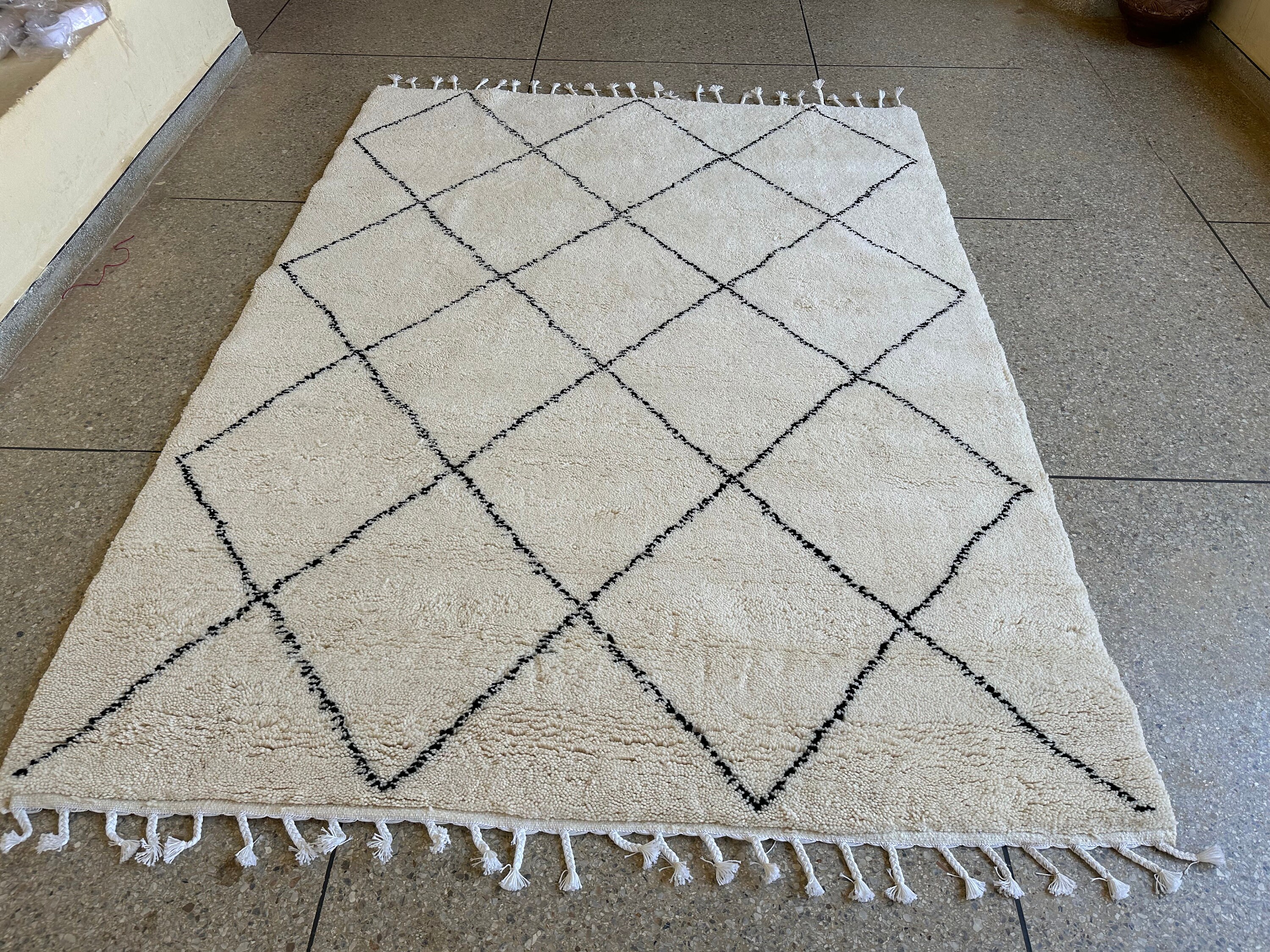 This fabulous Moroccan Rug that will give your room both a cozy feeling and stylish is made from 100% Natural sheep wool, It's Very plush and comfy to walk on, actually It's Heaven for your feet.
